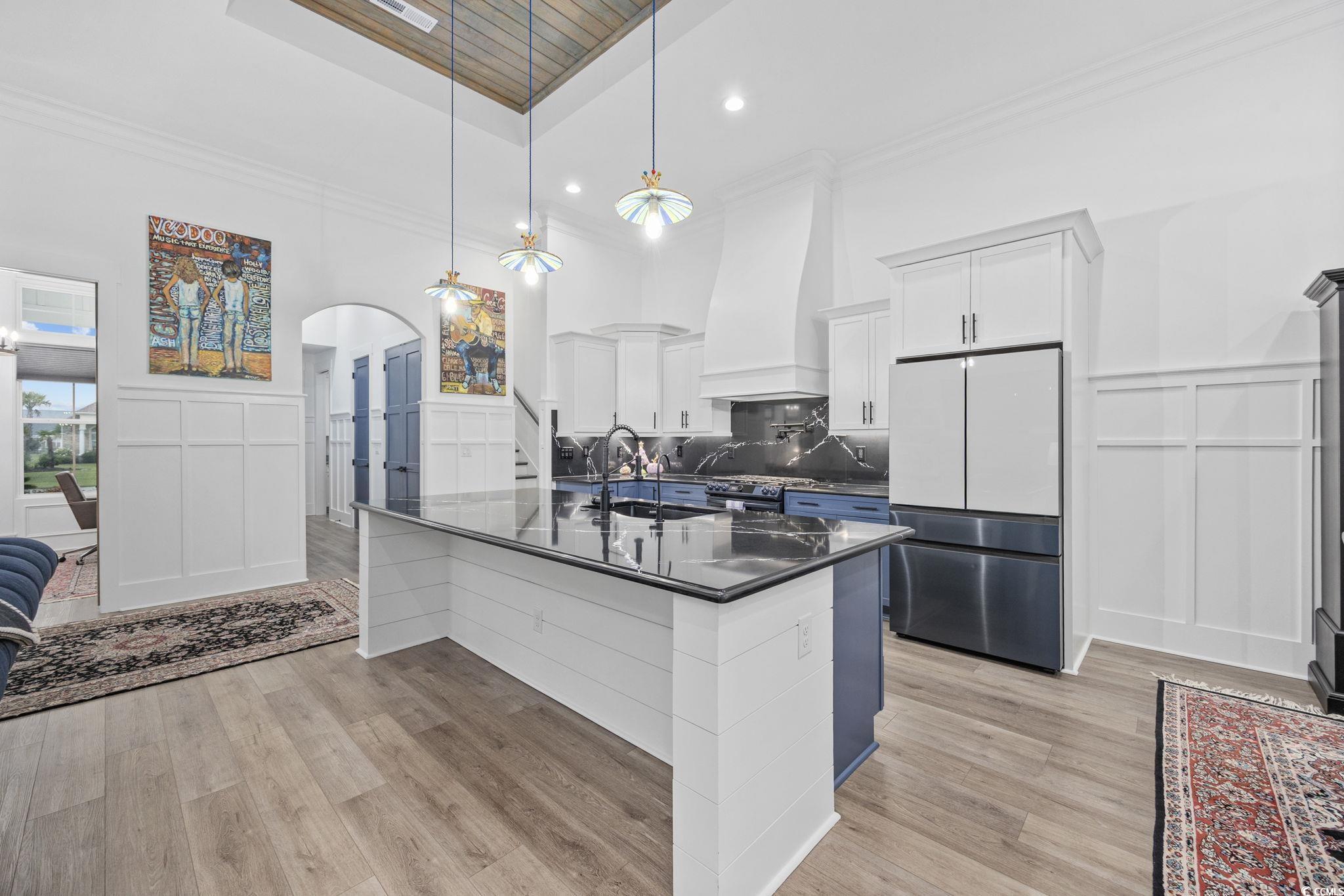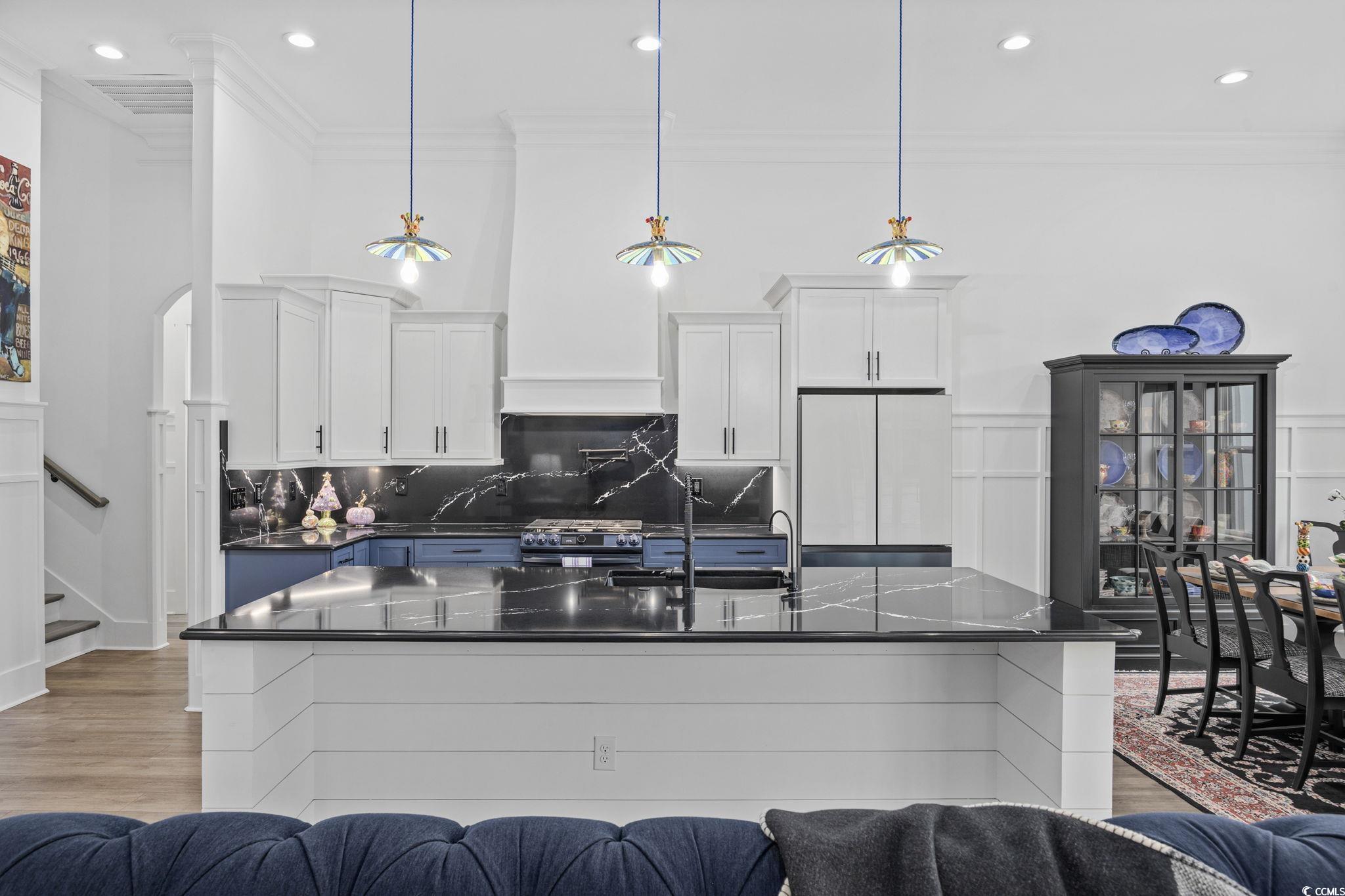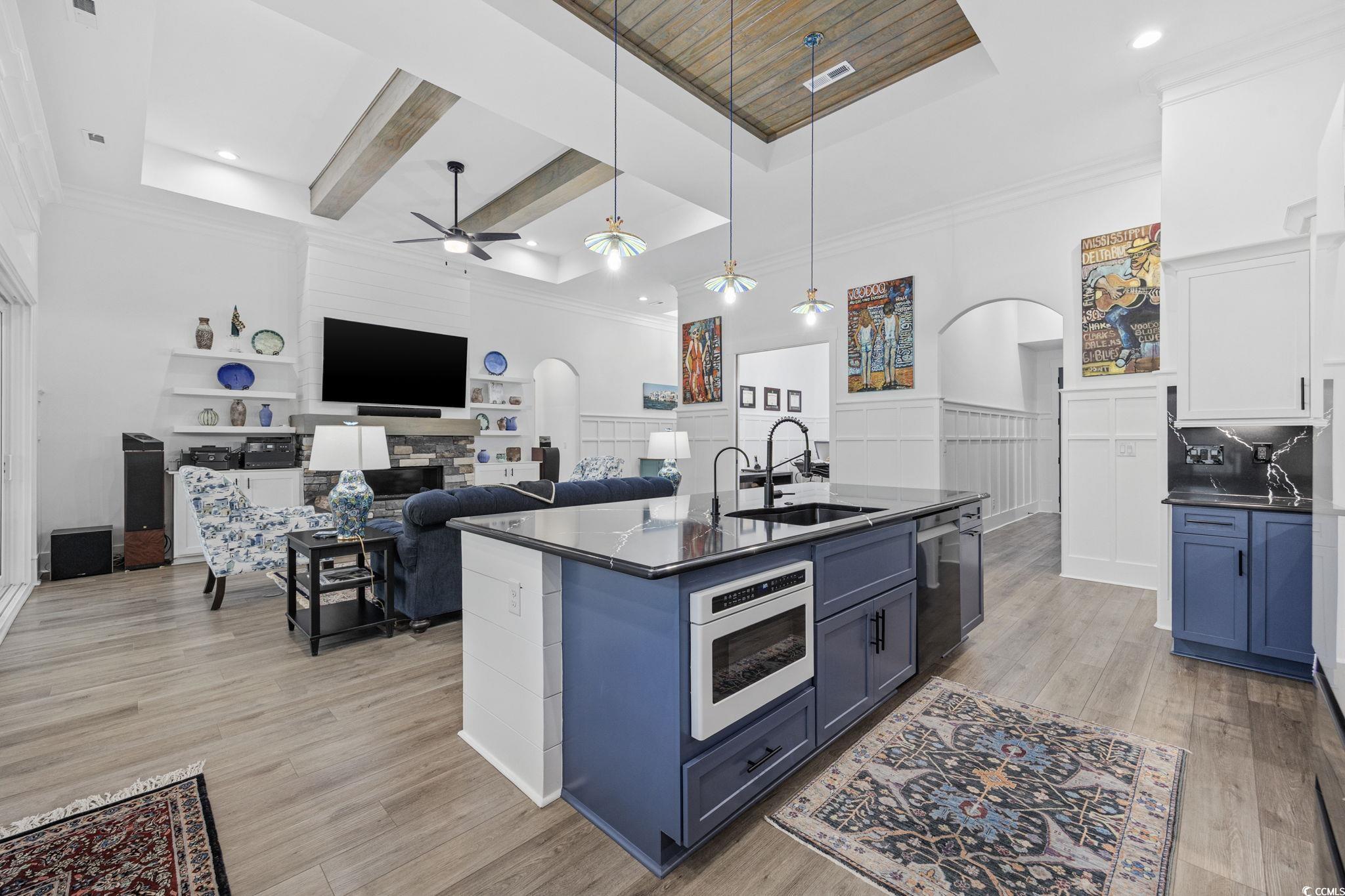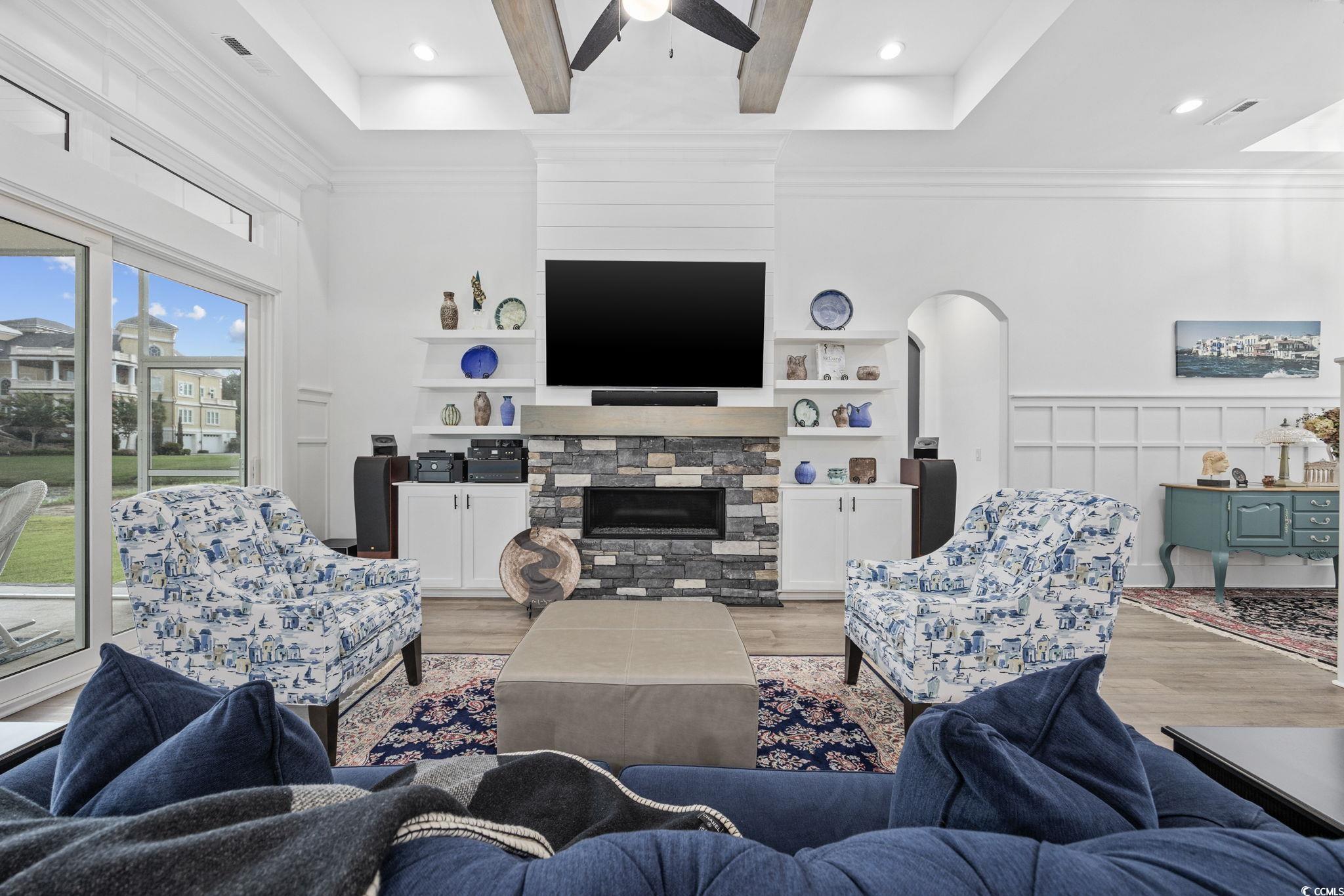 Welcome home to this one-of-a-kind Craftsman style home where artisan craftsmanship, refined luxury, and serene pond views come together in the heart of the prestigious Brunswick Plantation. Perfectly positioned on a serene pond front lot, this custom-built home offers four generously sized bedrooms, four bathrooms three of which are ensuites, and a true three-car garage, combining elegant design with thoughtful upgrades and premium finishes throughout. Built by local custom builder Fox Homes, this property stands apart with quality, function, and style that go well beyond builder grade. The exterior makes a lasting first impression with brick accents, James Hardie board and batten siding, metal accent roofing, and architectural shingles, blending durability with timeless curb appeal. Inside, the open floor plan showcases luxury vinyl plank flooring throughout and soaring 10-foot-plus ceilings on the main level. Architectural details include wood beam and tray ceilings, double-tray ceilings in the dining room, foyer, and primary suite, a stacked-stone gas fireplace with a custom mantel, and extensive crown molding and trim work. The chefs kitchen is a showstopper, blending artisan charm with high-end functionality. Cambria quartz countertops extend into a full-height backsplash, complemented by an Elkay undermount stainless steel sink and a Bespoke Samsung appliance package with refrigerator, dishwasher, gas stove, and washer/dryer with stands. A caf-style white drawer microwave adds convenience, while three handcrafted pendant lights over the islanddesigned by UK ceramic artist Mary Rose Young add a one-of-a-kind artistic touch. For peace of mind and a healthier lifestyle, this home is equipped with a whole-house Kinetico water filtration system, UV light purification, a water softener, reverse osmosis filtration at the kitchen sink, and a PFAS filter for the refrigerator water line. Natural light pours into the living spaces, softened by Hunter Douglas cordless Duette honeycomb blinds that are as beautiful as they are energy-efficient. The primary suite is generously sized with dual custom walk-in closets, granite dual vanities, a soaking tub, and a custom-tiled walk-in shower. Additional features include a three-car garage, a spacious screened rear porch and patio for outdoor entertaining, abundant walk-in attic storage for easy and convenient access. LP Gas supplies the tankless water heater, fireplace, and kitchen range for even more of a bonus. Brunswick Plantation is one of Calabash, North Carolinas premier gated communities, offering world-class amenities, lush landscaping, and resort-style living just minutes from the coast. There is a brand new clubhouse, pool and pickleball courts in the Hamptons section of Brunswick Plantation. You also have access to the other pools and amenities within Brunswick Plantation as well as the peace of mind of being in a gated community. When only the best will do, this home delivers. Schedule your showing today and come and see it for yourself!