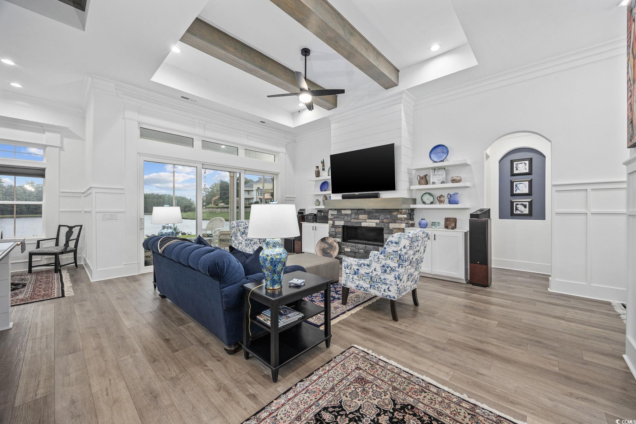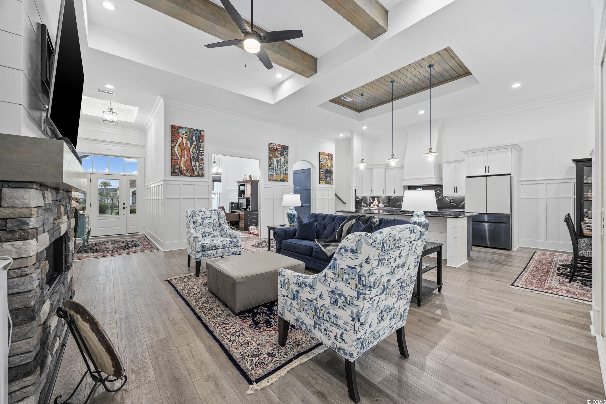 FamilyRoom: TrayCeilings, CeilingFans, Fireplace