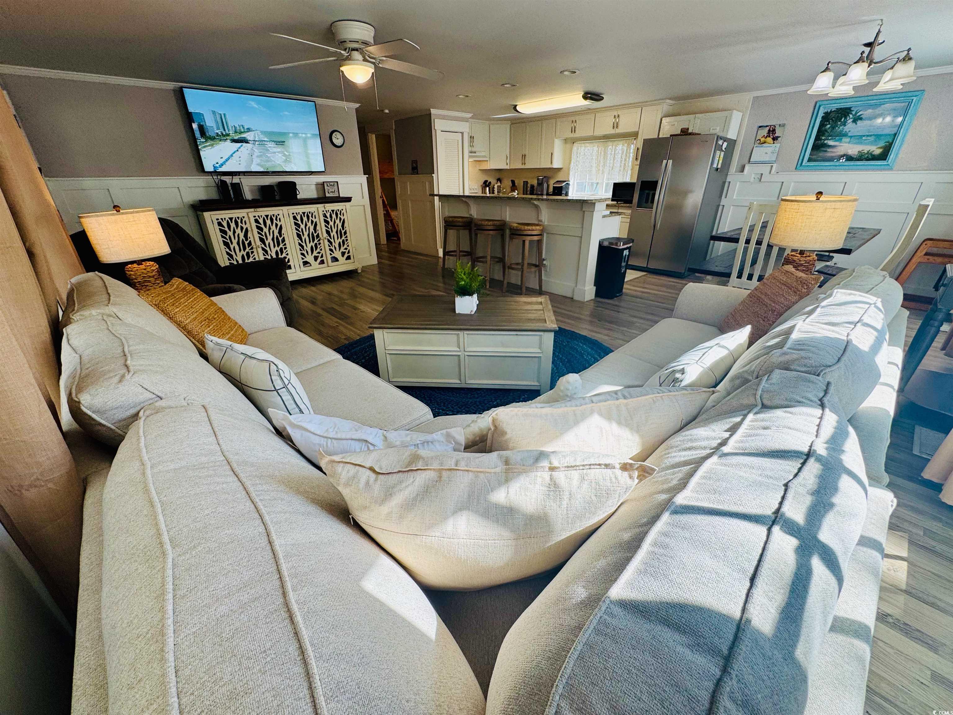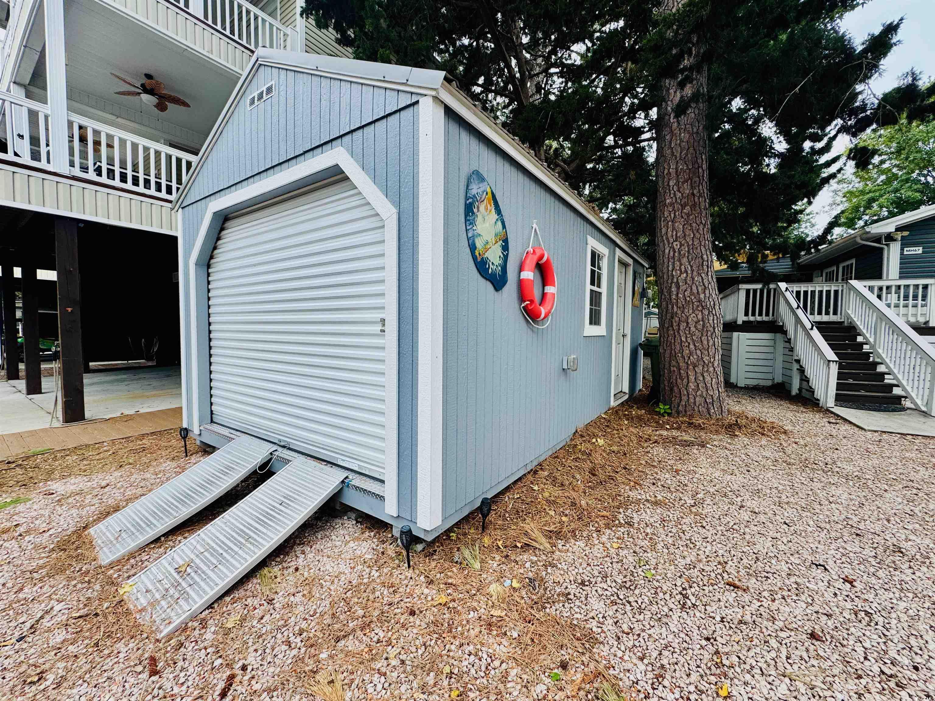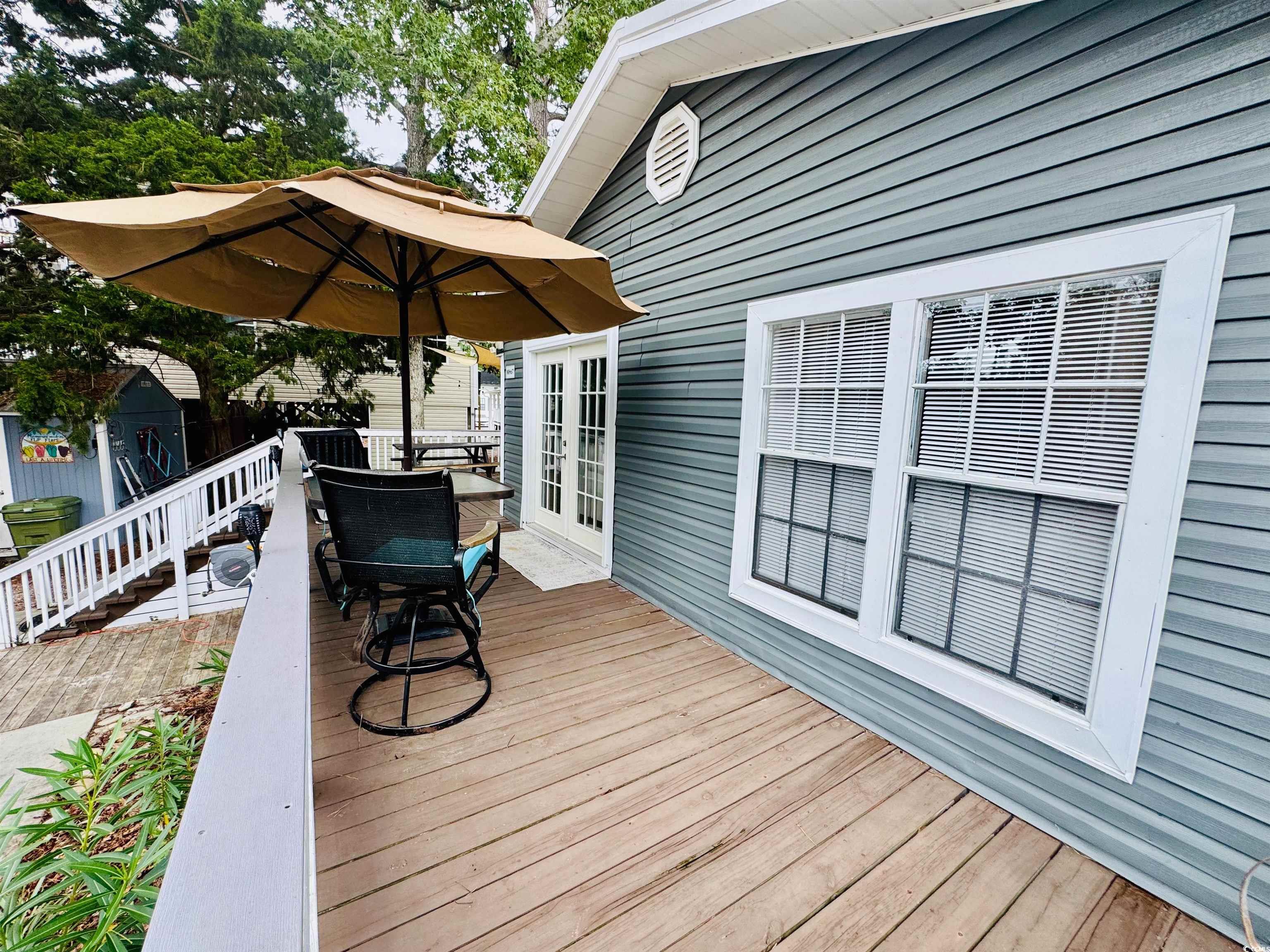 LARGE DOUBLE WIDE BEACH HOUSE ON ONE OF THE LARGEST LOTS IN OCEAN LAKES! Looking for some breathing room in Ocean Lakes? You have found it! This property offers tons of outdoor space, boat/RV parking, huge wraparound deck with covered porch, grilling area, handicap accessible deck ramp, fire pit, two detached storage buildings and an oversized paved driveway. Inside you will find a welcoming open concept floor plan with large family room, breakfast bar/work island, spacious dining area, well equipped kitchen with pantry, granite countertops, new cabinets providing lots of storage space, laundry/mud room with separate entrance, a big primary bedroom with beautiful ensuite that includes double vanities and a walk-in shower, three guest's bedrooms and a full bathroom. This home promises to be someone's new oasis at the beach. Sold fully furnished including Club Car golf cart! Now Showing! There is no HOA in Ocean Lakes however, the house is located on leased land, which is payed in two semiannual payments due in January and July. If you've never visited Ocean Lakes you must check this park out. Amenities abound in this gated, oceanfront community and include one mile of privately accessed pristine white sand beach, 24 hour security, free trash pick-up, free cable TV, indoor/outdoor swimming pools, large water park/slides, lazy river, kid's splash zone, new dog park, new beachside coffee house and ice cream bar, playgrounds, full size basketball courts, miniature golf, fire pit, corn hole, shuffle board, horseshoes, ping-pong, Sandy's Down-under skatepark, recreation building, arcade, general store, golf cart rentals, Sandy's Meet & Eat restaurant and more!