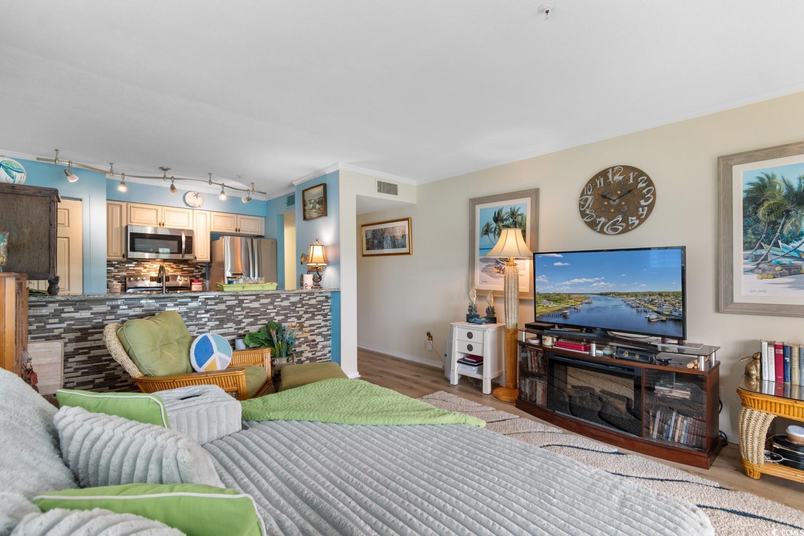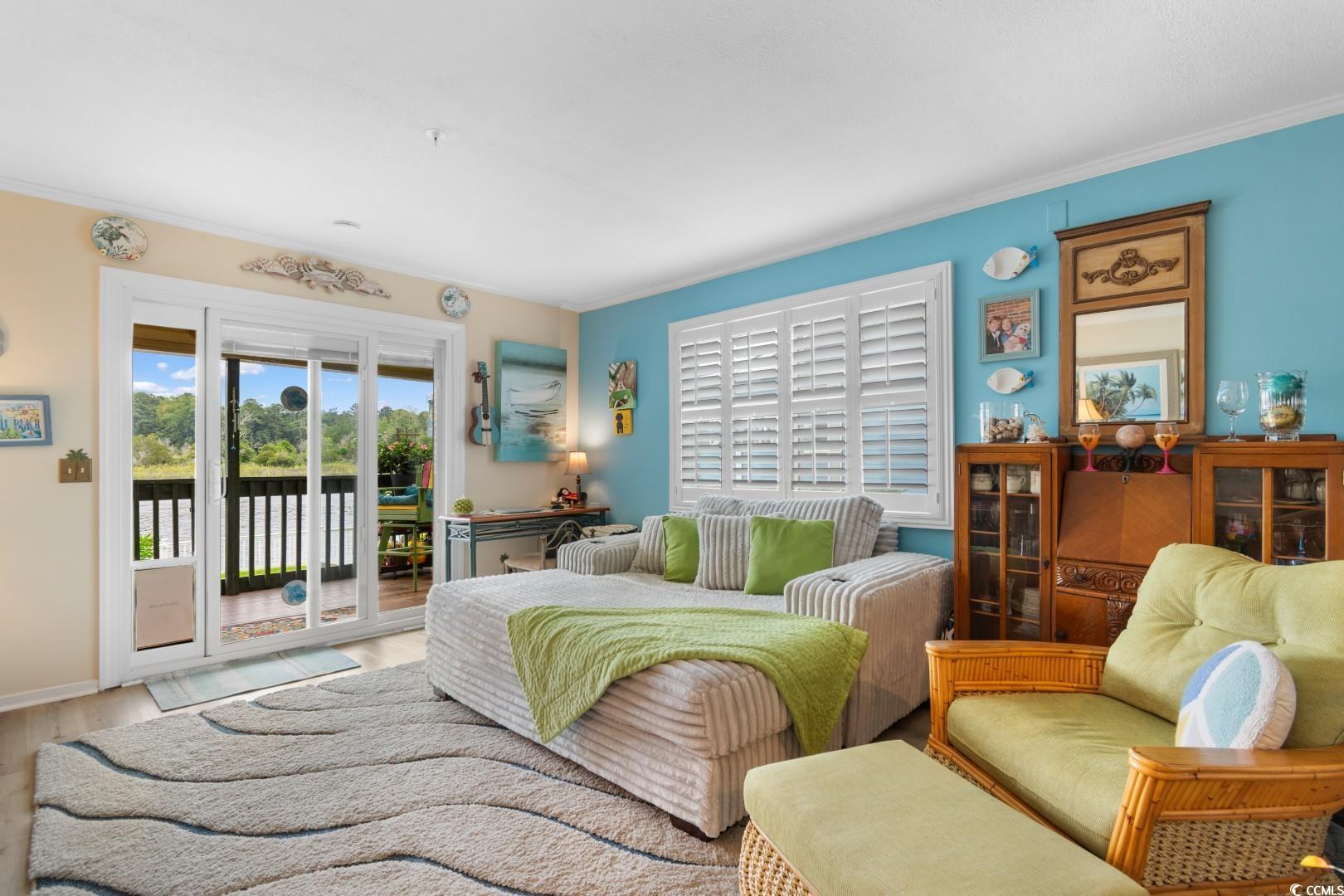 Welcome to your waterfront coastal hideaway in the quaint Kingsport gated community of Little River, (adjacent to North Myrtle Beach). Start your day with coffee on the front porch or on the back deck while watching the boats pass your backyard on the Intracoastal Waterway, enjoying the breeze from your LVP-floored corner deck and, not to forget, your own upfront seats during the beautiful and exciting annual Christmas Regatta! Step inside to your updated 1-bedroom, 2-bathroom first floor end unit, partially furnished with stylish rattan pieces. Large windows fill the space with natural light and frame the stunning water views. Upgrades include Cumberland Pearl kitchen cabinets, stainless appliances, and beautiful granite countertops. Both full bathrooms are upgraded, including a walk-in shower. Outside, enjoy the pool just a few steps from your door. There is a huge deck, perfect for fishing, set with lounge chairs, picnic tables, grills and a covered gazebo, all overlooking the Waterway. This unit offers the ideal blend of relaxation and convenience, as it's just a short drive to Cherry Grove and North Myrtle Beaches and the famous Calabash restaurants. Whether you are looking for a permanent residence, a vacation escape, or an investment property, this waterfront gem is the perfect fit. Don't miss the opportunity to make it yours!