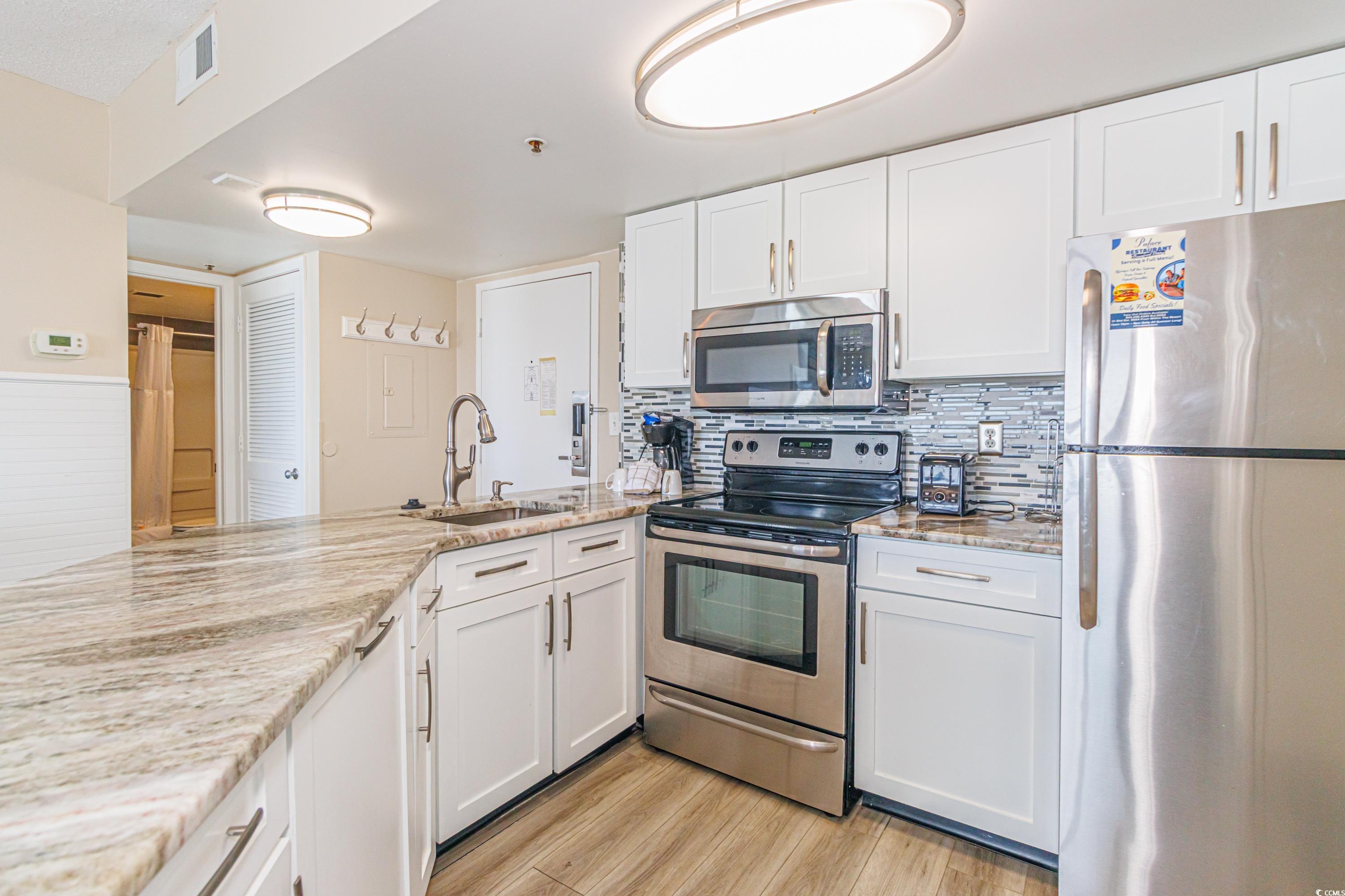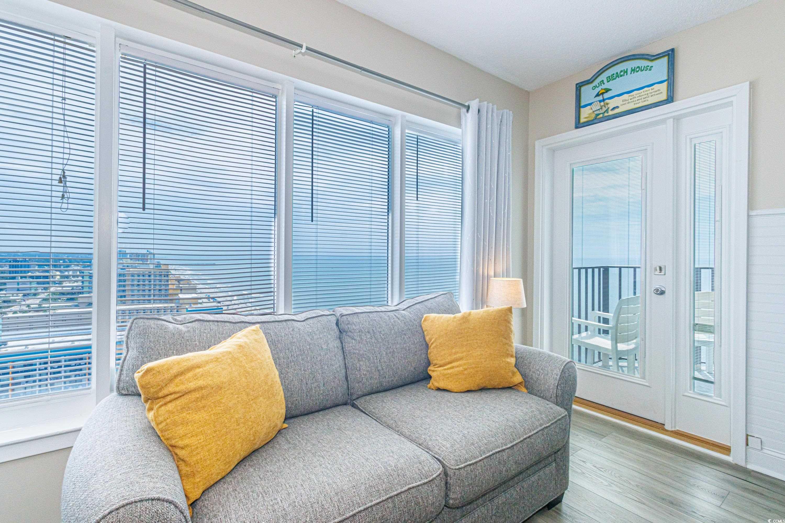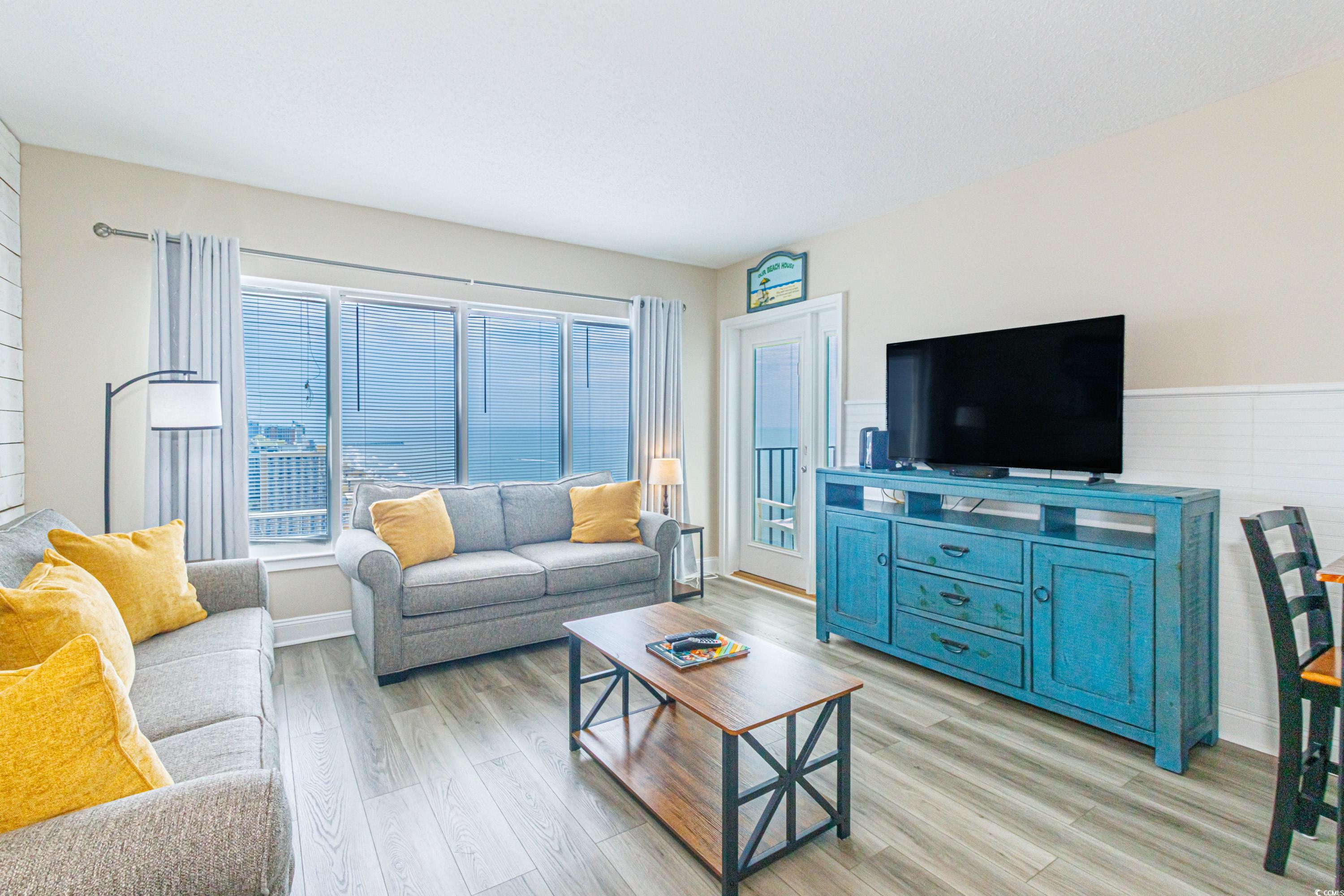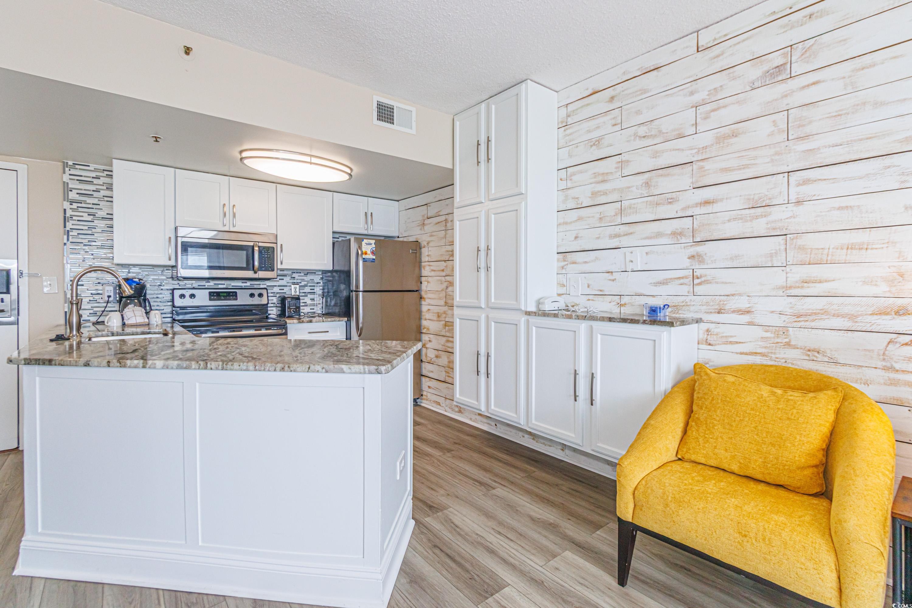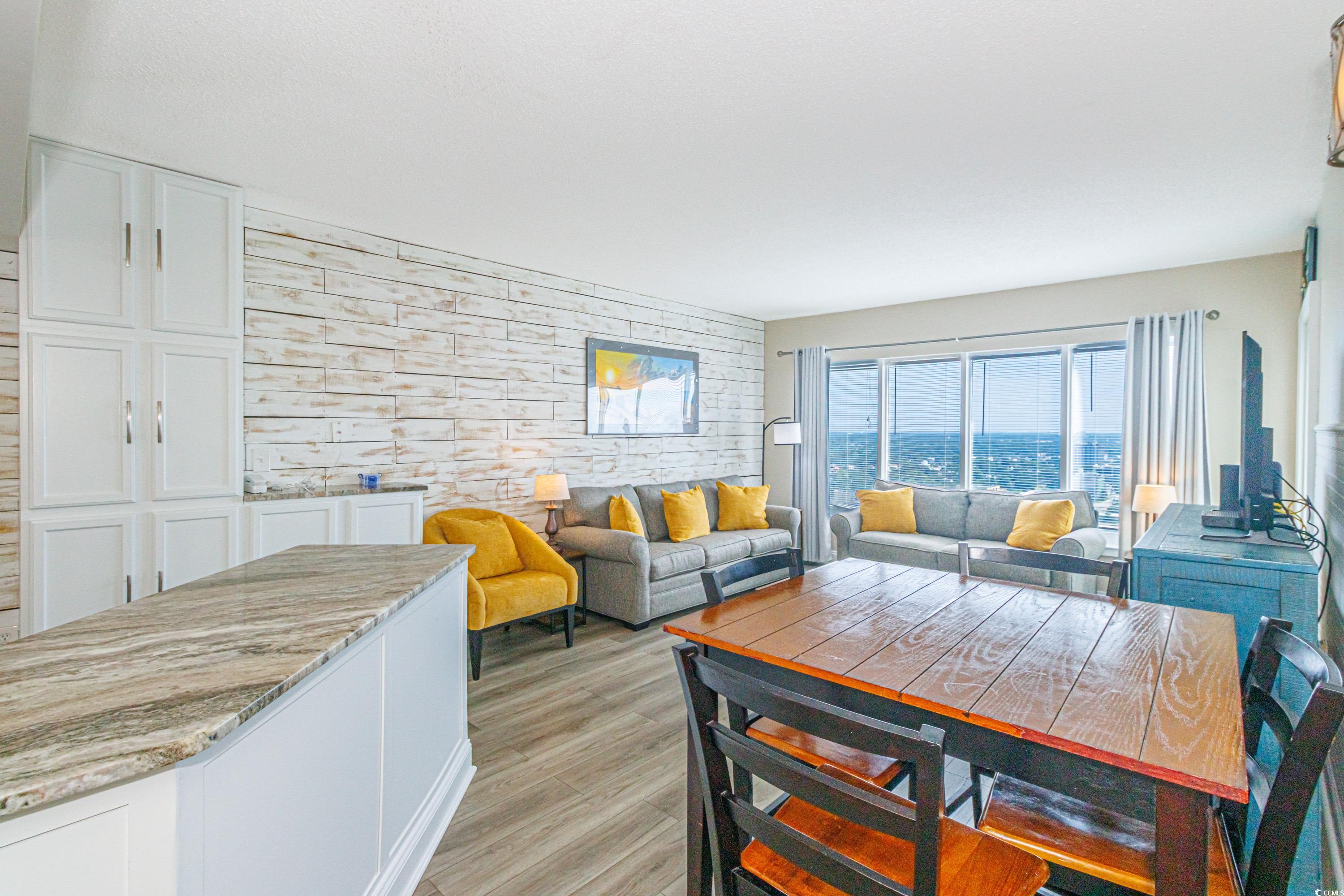 Experience breathtaking ocean and northern coastline views from this meticulously maintained 1-bedroom, 1-bathroom condo at the Palace Resort. Updates enhance the space with durable LVP flooring, granite countertops, stainless steel appliances, kitchen backsplash, wood accent walls, and a beautiful bathroom with floor-to-ceiling tile. Enjoy a generous balcony accessible from both the living room and bedroom, perfect for taking in endless views including the best sunrises. New door to the balcony with built-in blinds. Offered fully furnished and turnkey, this condo is ready for immediate enjoyment or to start generating rental income. The Palace Resort features a host of amenities: indoor and outdoor pools, a fitness center, a tranquil sauna, interior corridors, and convenient attached parking. Located on 16th Ave S, the resort is minutes from Myrtle Beach International Airport, Market Common, and the areas best attractions. Dont miss this exceptional opportunityschedule your showing today!