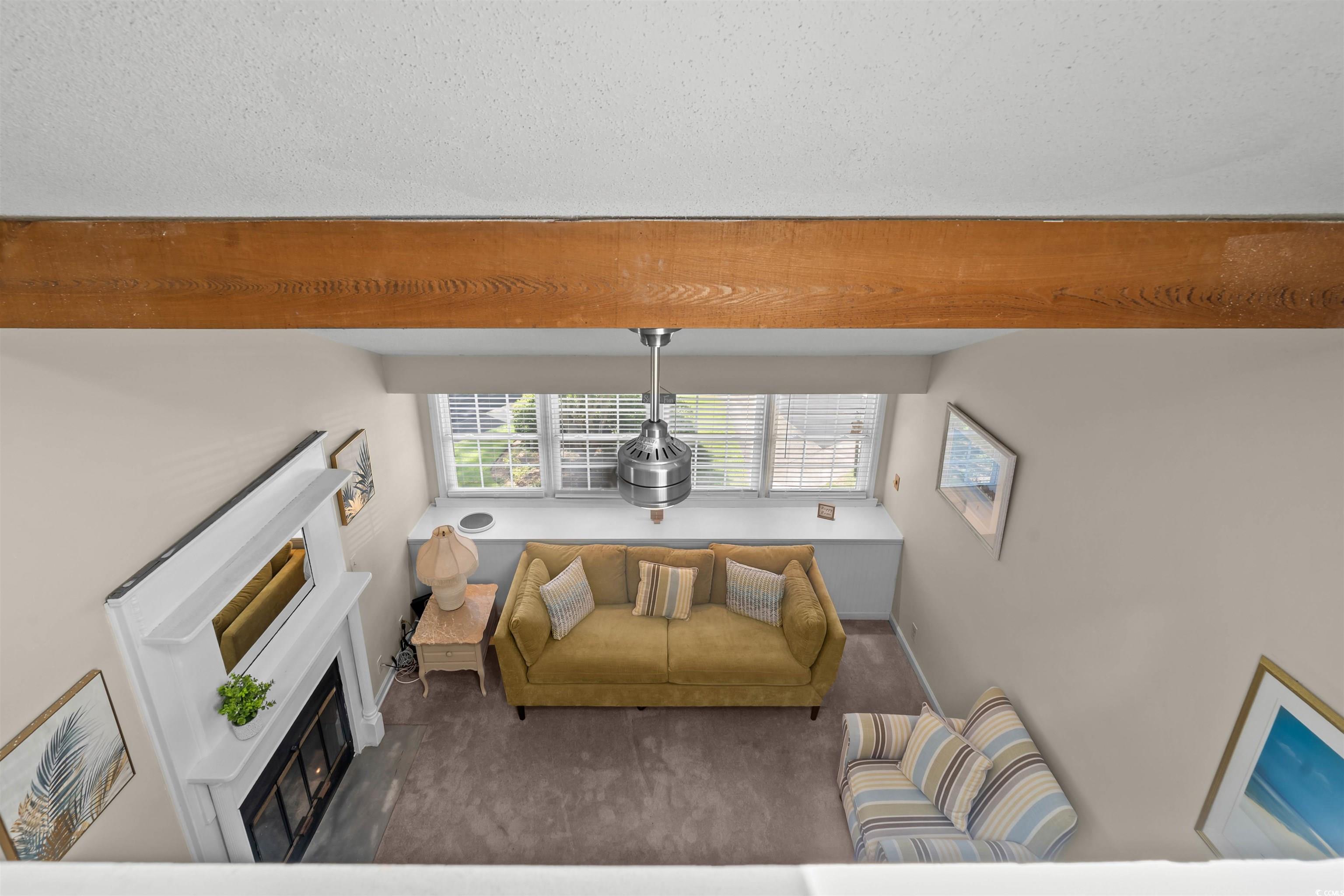 LivingRoom: BeamedCeilings, CeilingFans, Fireplace, VaultedCeilings