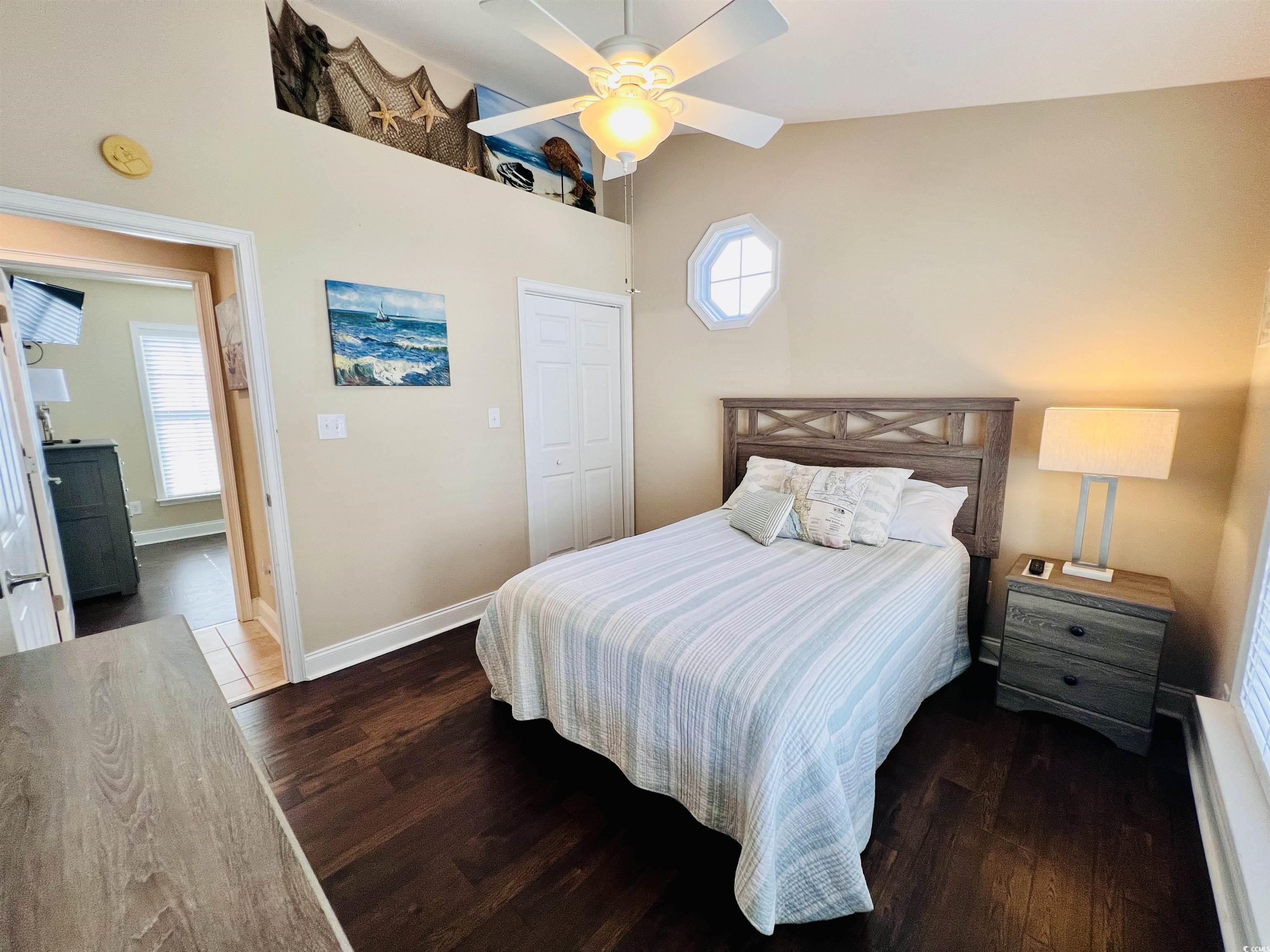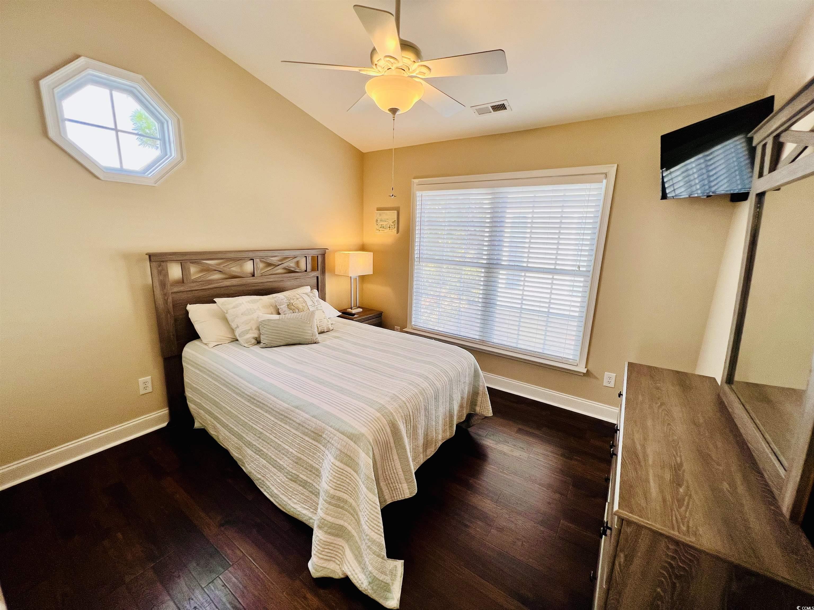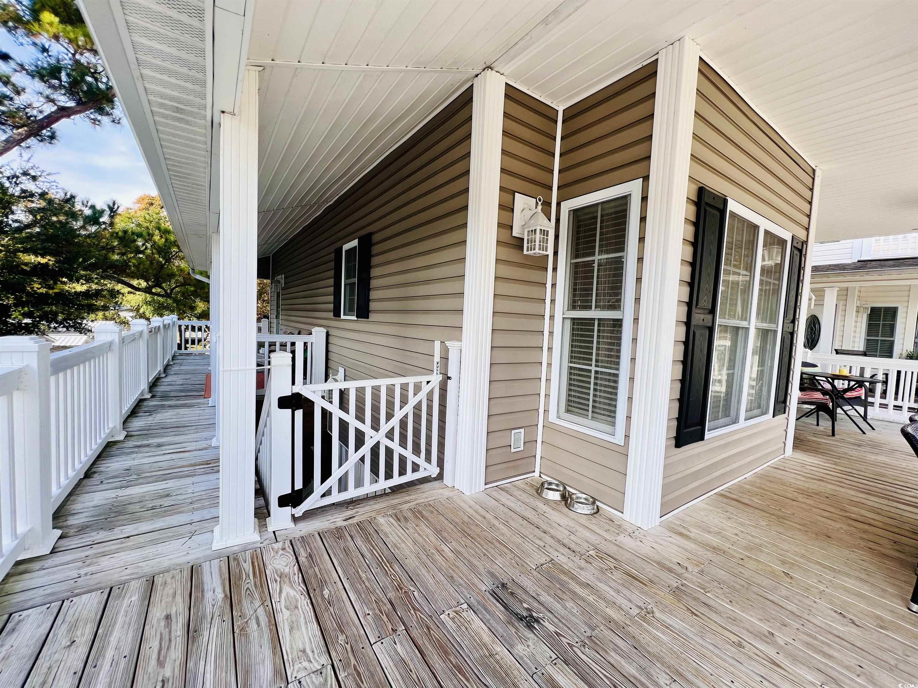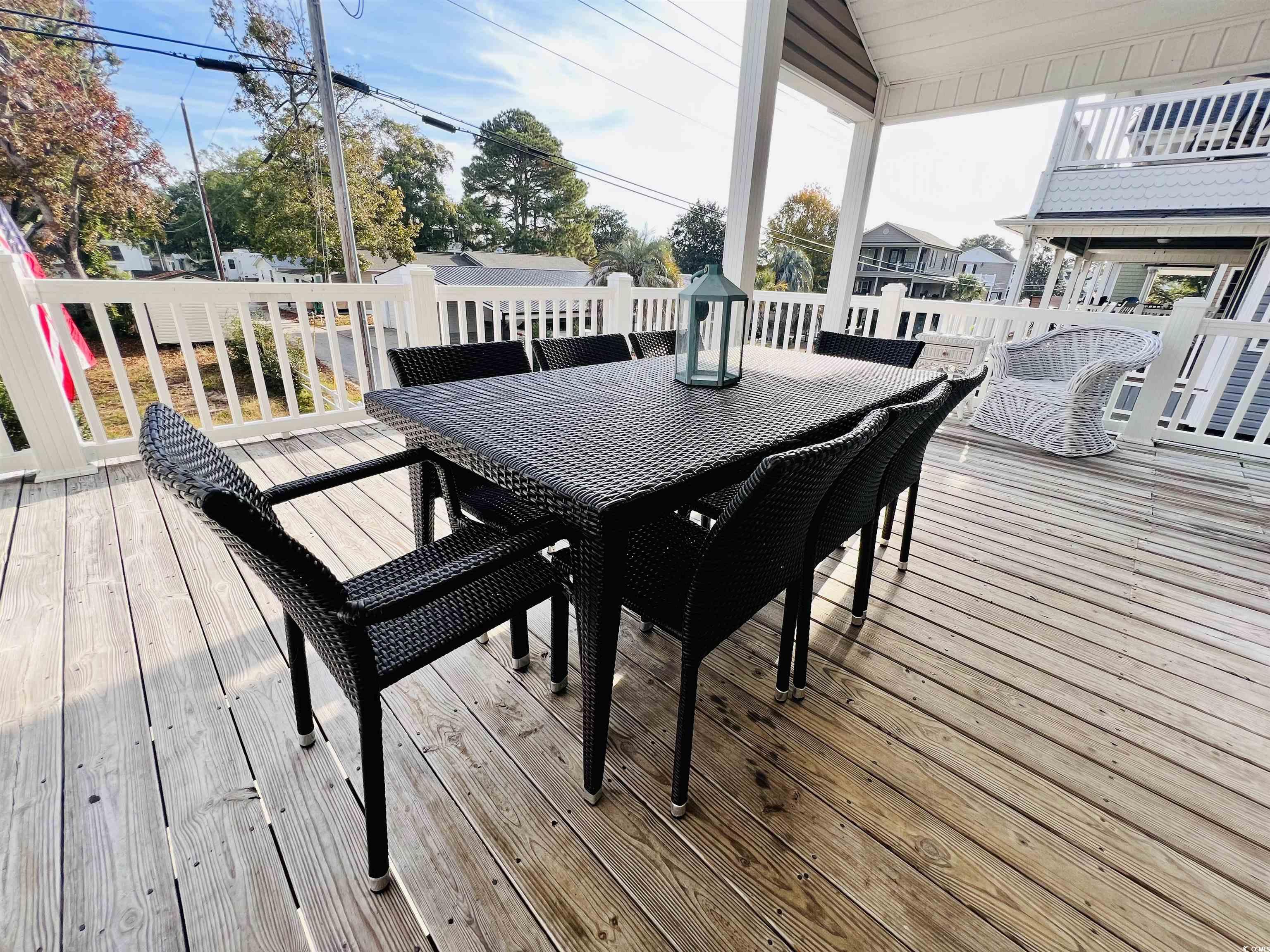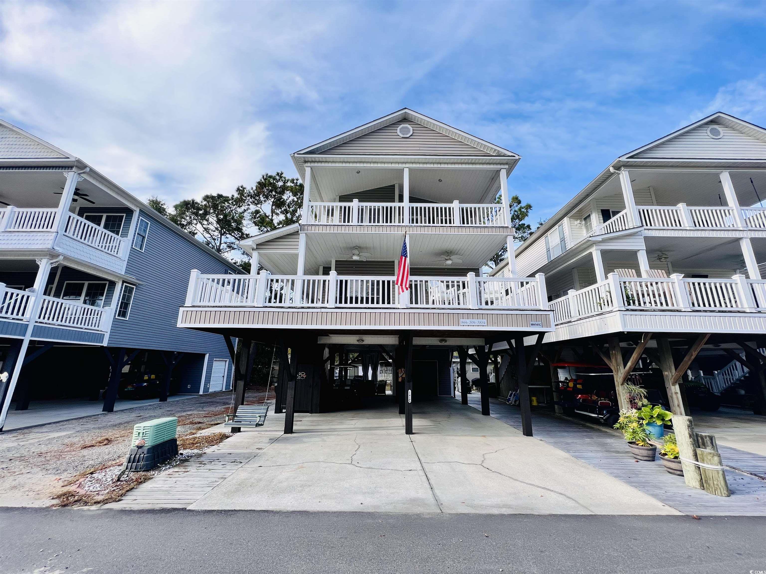 WELL BUILT 4 BED/3 BATH RAISED BEACH HOUSE IN OCEAN LAKES ON LARGE CORNER LOT WITH TONS OF OUTDOOR SPACE. This home is an entertainer's dream with lots of shaded ground level space, COVERED STAIRS, A HUGE WRAPAROUND MAIN LEVEL DECK AND A PRIVATE TOP DECK OFF ONE OF TWO LARGE OWNER'S SUITES. Entering the home you are welcomed by an open floor plan with a spacious living area, well equipped kitchen with a large island/breakfast bar and a stunning hardwood staircase. Beautiful new LVP flooring in 2nd level bedrooms. Excellent investment with solid rental history. Sold fully furnished! Must honor remaining 2025 rentals. Now Showing! Measurements are not guaranteed and are the responsibility of buyers and their agent. There is no HOA in Ocean Lakes however, the house is located on leased land, which is payed in two semiannual payments due in January and July. If you've never visited Ocean Lakes you must check this park out. Amenities abound in this gated, oceanfront community and include one mile of privately accessed pristine white sand beach, 24 hour security, free trash pick-up, free cable TV, indoor/outdoor swimming pools, large water park/slides, lazy river, kid's splash zone, new dog park, new beachside coffee house and ice cream bar, playgrounds, full size basketball courts, miniature golf, fire pit, corn hole, shuffle board, horseshoes, ping-pong, Sandy's Down-under skatepark, recreation building, arcade, general store, golf cart rentals, Sandys Meet & Eat restaurant and more!