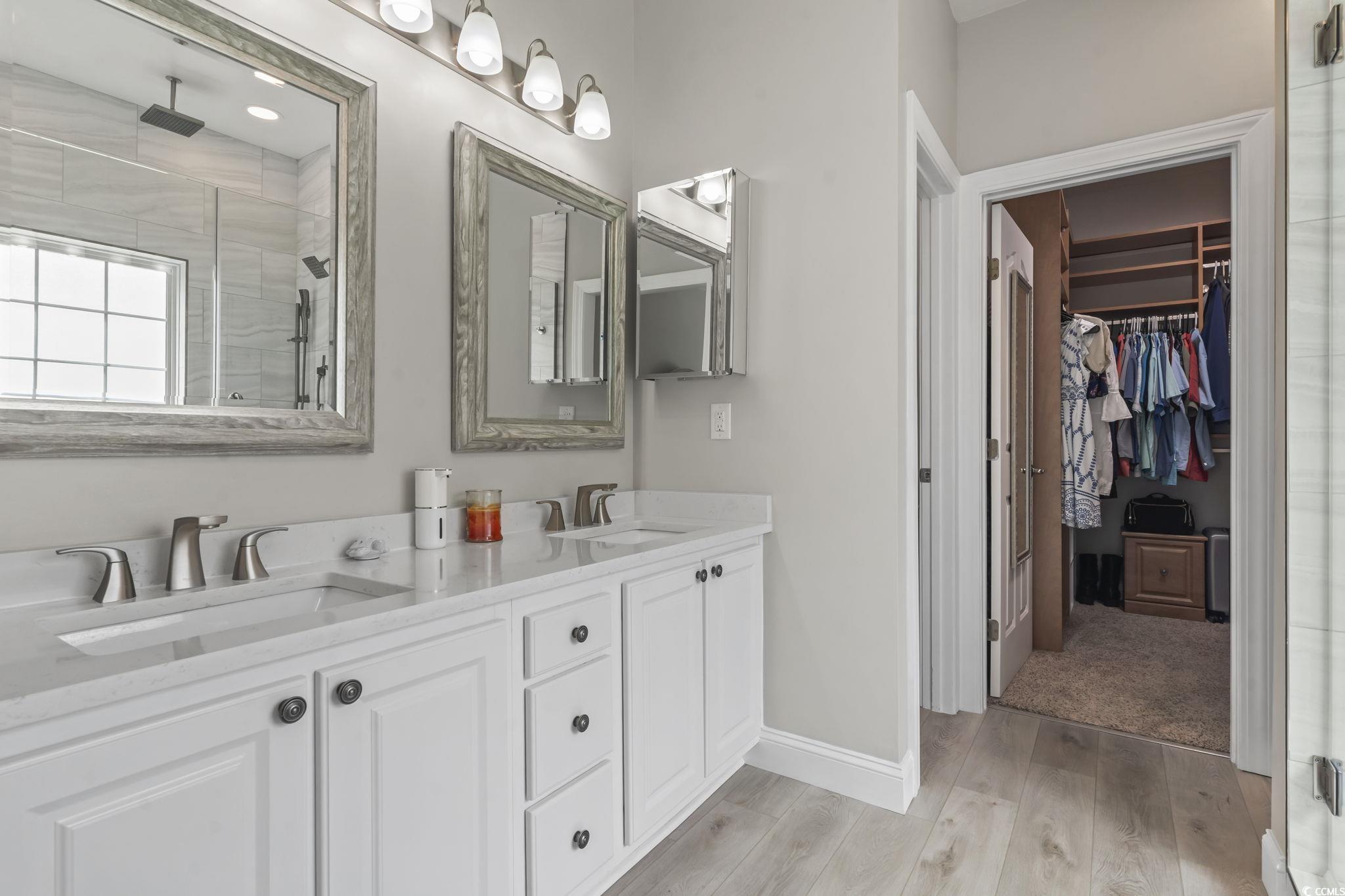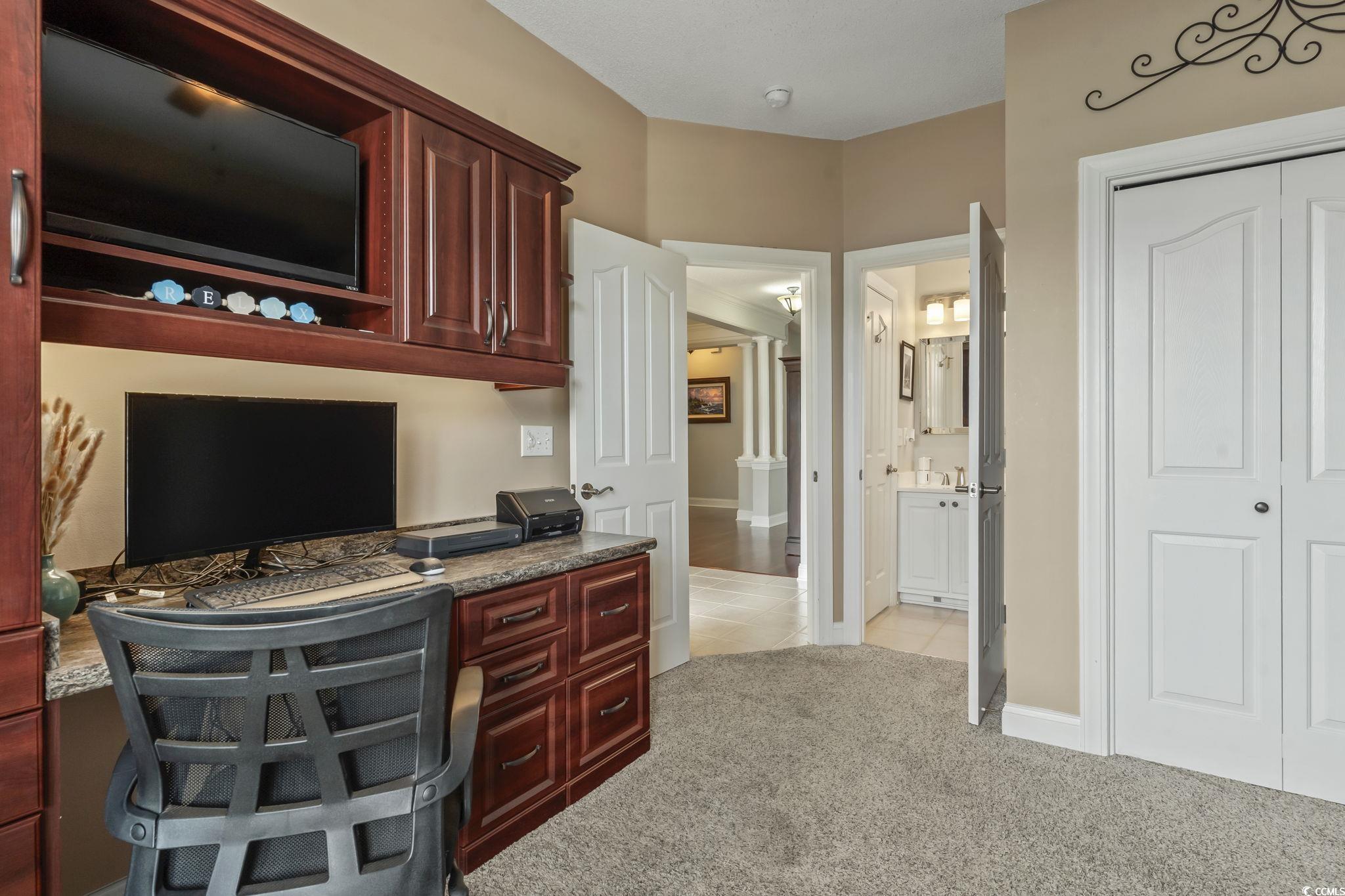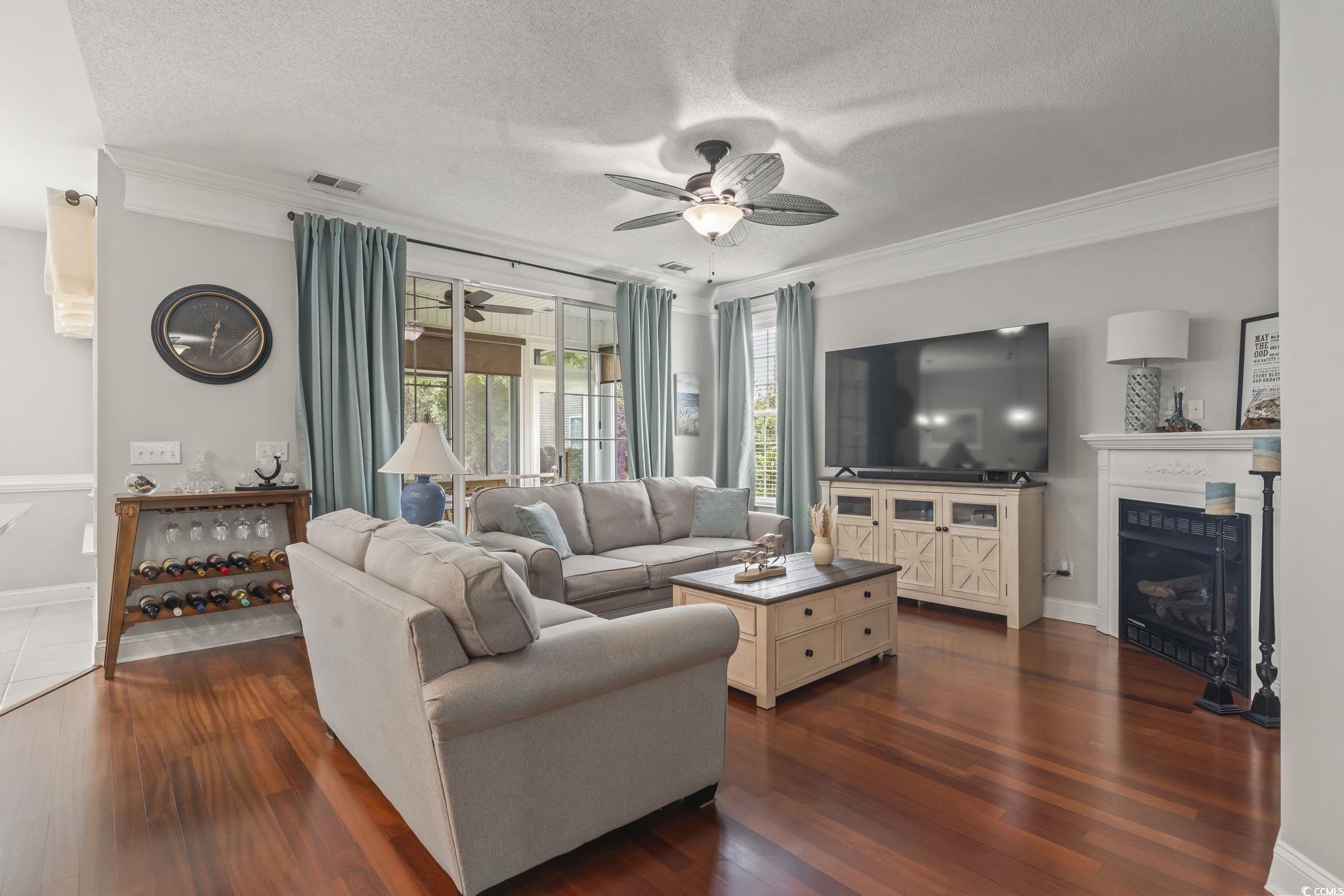 Discover coastal living in the heart of Barefoot Resort's Coquina Pointe! This beautifully updated 3BR/2BA home features rich cherry wood floors, an open split-bedroom layout, and a stunning kitchen with quartz countertops, stainless steel appliances, apron sink, and soft-close cabinetry. The formal dining room boasts tray ceilings and crown molding, while the spacious primary suite offers a custom walk-in closet and tiled shower. Enjoy year-round relaxation in the all-seasons sunroom or unwind on the screened porch overlooking the private backyard and tranquil fountain. Both guest rooms include custom Murphy beds and built-ins. Additional upgrades: custom storage in garage and laundry, smart fixtures, ceiling fans, and more. HOA covers cable, internet, phone, lawn care, trash/recycling, and use of resort amenitiesincluding pools, clubhouse, fitness center, tennis/pickleball courts, and seasonal beach shuttle. Optional golf memberships available. Just minutes to beach, shopping, dining & entertainment!