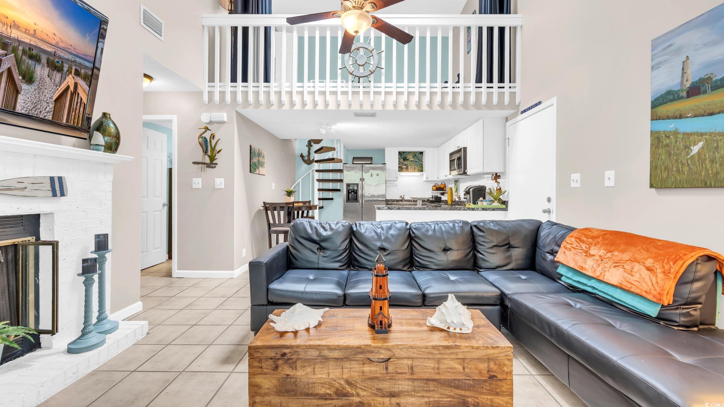 YOUR PERFECT BEACH RETREAT AWAITS! Super cute 2 bedroom/ 2 bath condo in the heart of Myrtle Beach! If you are looking for a great condo just blocks from the beach, this is it! This end unit condo is being sold FULLY FURNISHED. It features vaulted ceilings, a fireplace in the living room, tile backsplash and stainless steel appliances in the kitchen, ceiling fans throughout, an oversized closet in the primary bedroom, and washer and dryer. There is even a private deck off the primary bedroom, perfect for morning coffee or relaxing in the evenings. Take the spiral staircase upstairs to find a loft and another full bathroom. Located in the popular community of Sterling Village III. The HOA has approved and will begin construction soon on a new community pool and have plans to install a gate to make Sterling Village III a gated community. Sterling Village III is just a few blocks to the beach and close to restaurants, shopping, and entertainment. This one will not last long! Schedule your showing today! All measurements are approximate. Buyer and buyers agent responsible for verification of all information.
