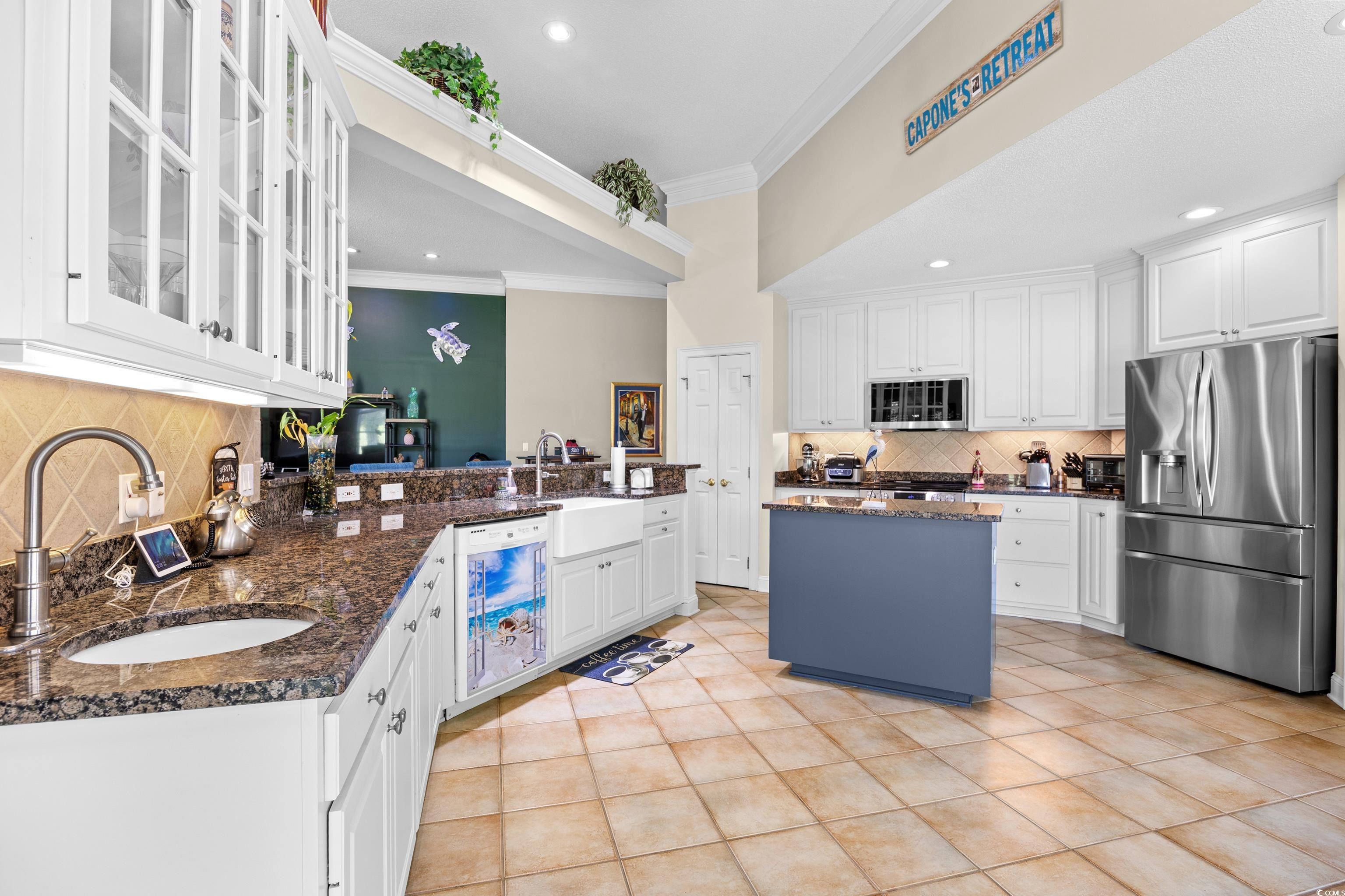 Nestled on a .45 acre cul-de-sac lot w/golf course views, this 2909 htd. sq. ft. brick home blends functional design w/high-quality upgrades. The open-concept floor plan connects the living room, kitchen and dining area. A double-door Carolina room & a screened porch w/new screens, provide versatile spaces for relaxation & entertaining while overlooking a beautiful backyard. This 4 bedroom, 3.5 bath home includes a three-car side-load garage and features two private master suites. Throughout the home, luxury plank flooring adds warmth and durability. The kitchen has been refreshed with a soft color palette, stainless steel appliances, & a thoughtful layout, with the main level laundry conveniently positioned between the garage & kitchen. Meticulously renovated over 16 months by its owner, an architecture professional of 43 years, the property boasts a new roof, fresh interior paint, & upgraded electrical and plumbing systems. Additional upgrades include underground gutters, new landscaping an 80 gallon water heater, updated lighting, fixtures, upgraded irrigation pump & sprinkler system, & a 12-ft, four panel rear door opening to the screen lanai. Security & convenience are top priorities with exterior cameras & lighting, a whole home security alarm, a backup generator bypass switch, a garage workbench w/ sink, & off-street parking for up to 10 cars. The private yard features a 1200 gallon concrete & slate waterfall fish pond and the location on the 13th green of the Willbrook Plantation Golf course. House can be sold furnished. Included with this home is access to Litchfield-by-the-Sea private beach available for you.
