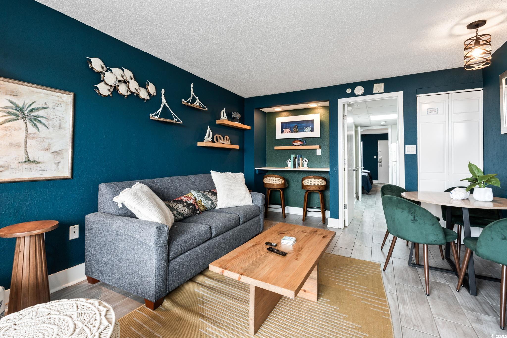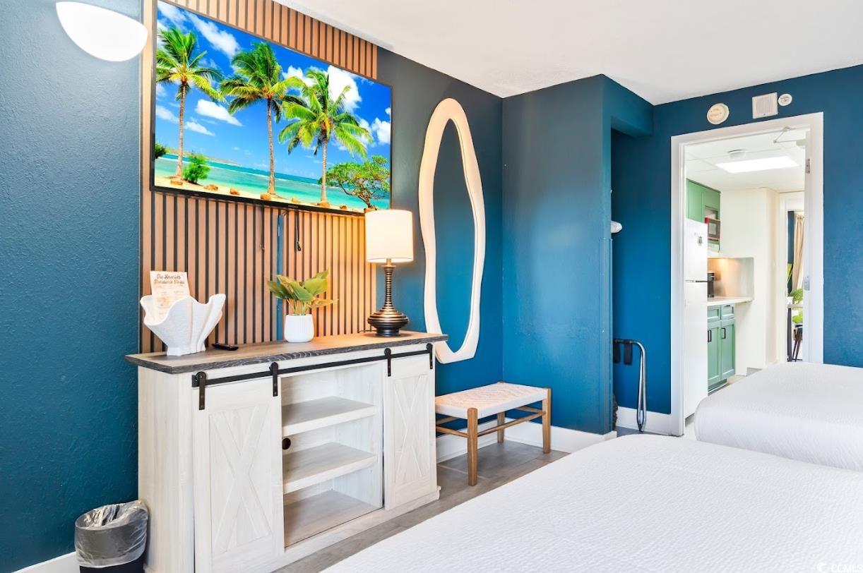 OCEANFRONT INVESTMENT OPPORTUNITY AWAITS! Dont miss your chance to own this beautifully remodeled and designer decorated direct oceanfront one bedroom condo with a private balcony and ocean views in the heart of Myrtle Beach. From the moment you walk in, youll appreciate the attention to detail, every surface has been refreshed with new paint, custom woodwork and thoughtful touches. The open living area flows seamlessly to your private balcony, where you can take in panoramic views of the sparkling pool, lush palm trees, and the endless Atlantic Ocean beyond. This condo is fully furnished with beautiful dcor, new tile floors, updated appliances, smart TVs, and furniture that sleeps six. Located in a resort packed with amenities like a 250 foot lazy river, tanning lawn, pools, hot tubs and just steps from the sand. The HOA fee covers your utilities and the beautiful amenities onsite as well. Youll also be minutes from Myrtle Beachs best dining, entertainment, golf, the airport, and attractions. Whether youre seeking a personal getaway, a second home, or a high-demand vacation rental, this property is a true gem.