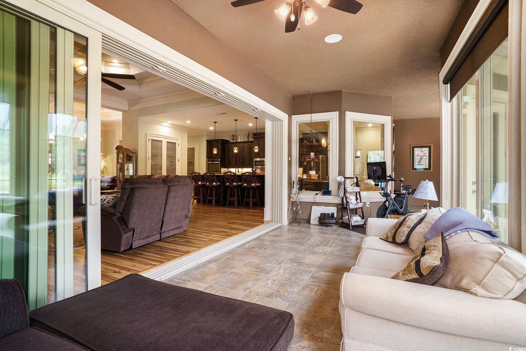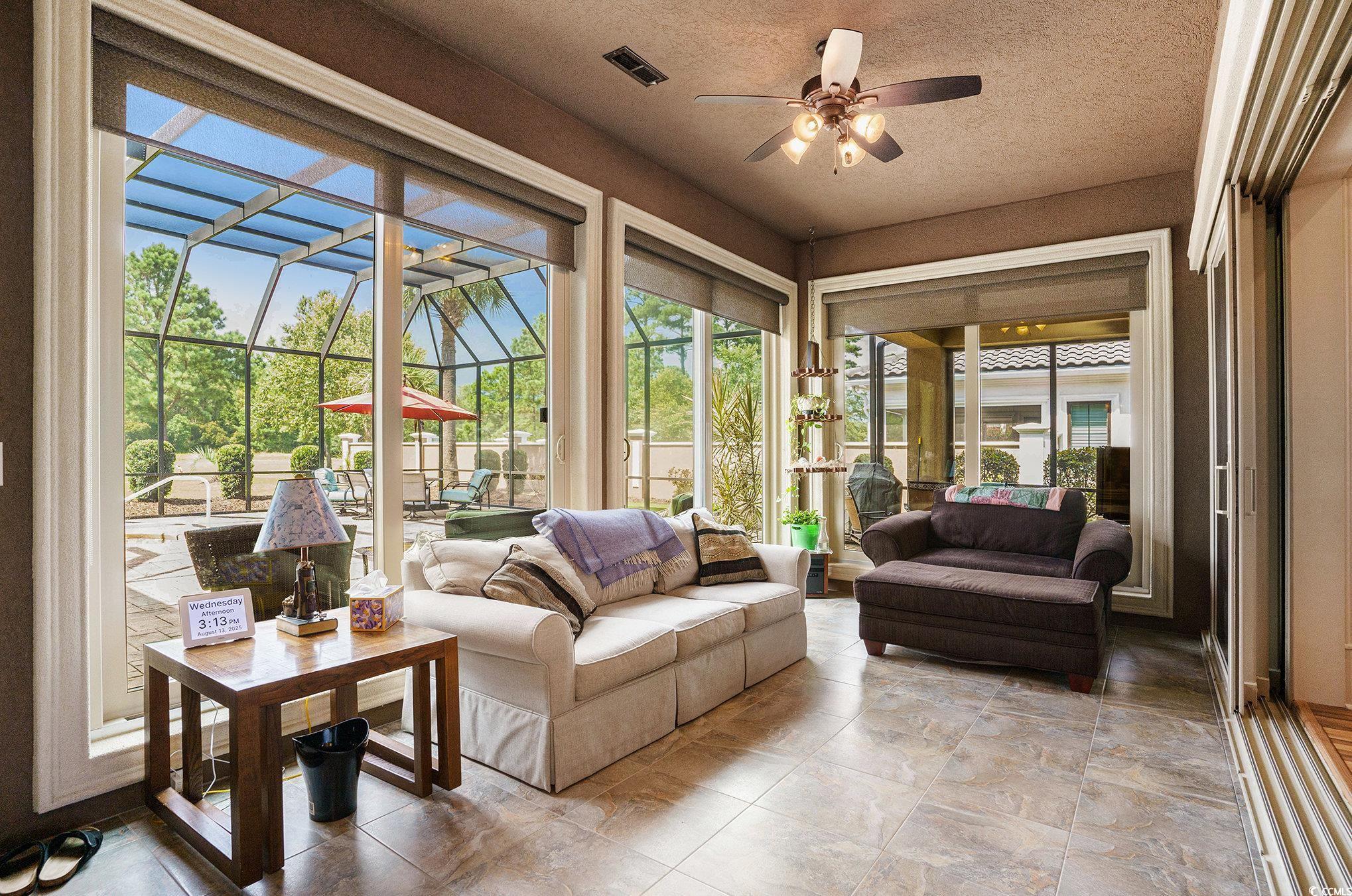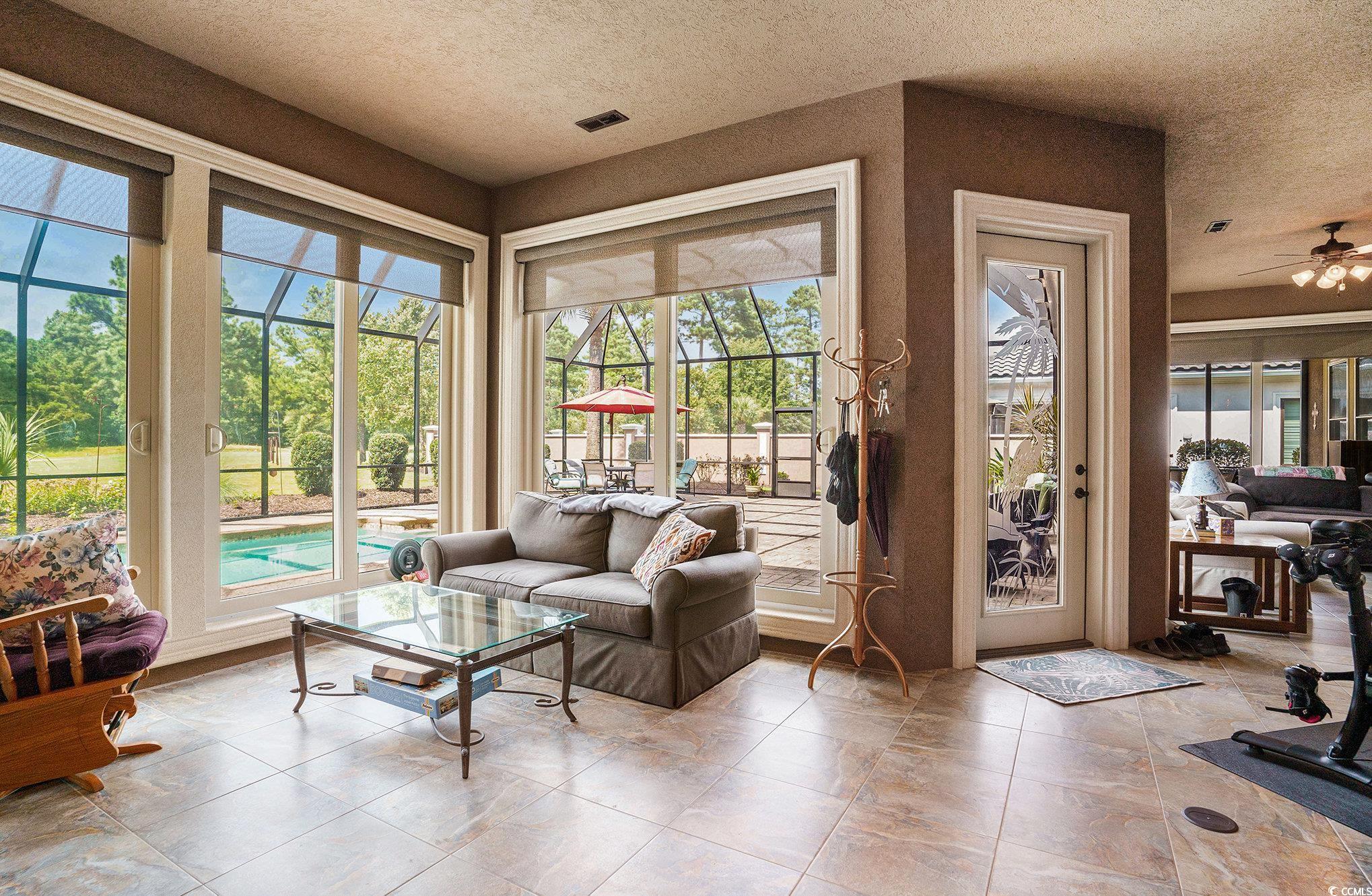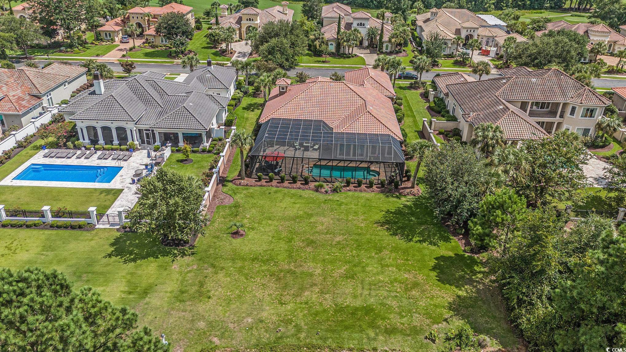 Driving through the private, gated community of Grande Dunes, you arrive at Bellasera Circle, a sought-after enclave known for its luxury homes and lush landscapes. The homes Mediterranean-inspired architecture, with its barrel tile roof, stone-accented entry, and lush palm-lined landscaping, immediately sets the tone for elegance. The paver driveway leads you to an arched stone entrance with a wood-stained door entry door that speaks elegance, creating a grand first impression along with the 3 car garage. Stepping inside, youre greeted by soaring tray ceilings, detailed crown molding, and warm hardwood floors that flow seamlessly throughout the main living areas. The formal living room welcomes you with abundant natural light and a stylish chandelier, perfect for entertaining guests. Moving forward, the spacious great room becomes the heart of the home. A stacked-stone fireplace flanked by custom built-ins anchors the space, while a triple tray ceiling with soft accent lighting adds depth and character. Expansive sliding glass doors open to a sprawling screened lanai, seamlessly blending indoor and outdoor living. The gourmet kitchen offers rich wood cabinetry, beautiful countertops, and an oversized center island with seating which is perfect for those quick meals. Pendant lighting highlights the island, and a double oven and stainless-steel appliances make it a chefs dream. An adjoining breakfast nook enjoys views of the lanai and pool. On one side of the home, the owners suite provides a private retreat with tray ceilings, cool coastal colors creating the perfect relaxing atmosphere. The ensuite bathroom features dual vanities, a whirlpool tub, and a walk-through tiled shower with dual showerheads and a rain showerhead as well. The expansive walk-in closet is what dreams are made of, with a ladder to even reach the very top! Three additional guest bedrooms each offer generous space, and access to beautifully finished full bathrooms. A well-appointed large laundry room with built-in storage and a utility sink add to the homes functionality. Upstairs above the garage is a spacious 289 sq. ft. room offers endless possibilitiesperfect for a home office, media room, gym, or hobby space. With the simple addition of one duct, it can be fully heated and cooled to suit your needs year-round. Step outside to the show-stopping screened lanai, where a sparkling pool takes center stage. With multiple sitting areas, a dining space, and panoramic views of the golf course, its the perfect backdrop for both quiet mornings and lively gatherings. This home also includes a spacious three-car garage and the exceptional lifestyle amenities of Grande Dunesprivate beach access at Ocean club and oceanfront pools. Cruise your way to the Members Club or the Ocean Club on the included 6 passenger 2025 Bintelli Golf Cart! This prime location in Grande Dunes offers the perfect blend of privacy and convenience, just minutes from Myrtle Beachs pristine beaches, world-class golf courses, shopping, dining, entertainment, and popular attractions along the Grand Strand. Whether youre seeking a day on the sand, a night out, or a round of golf, everything is right at your doorstep. Buyer is responsible for verification.