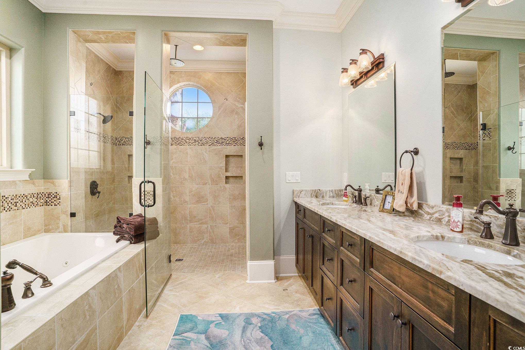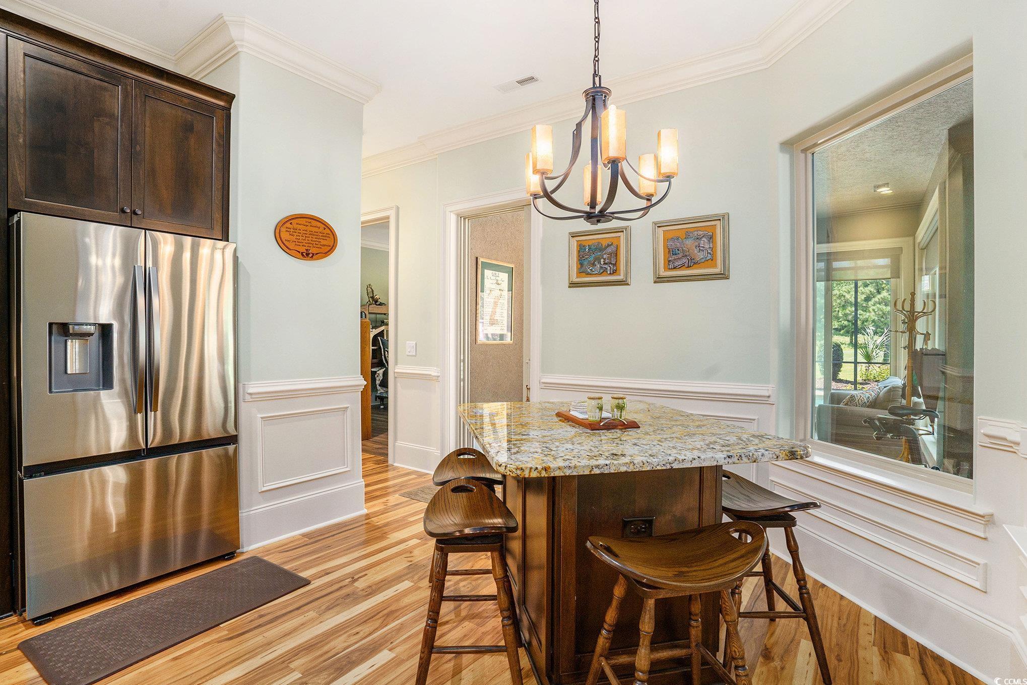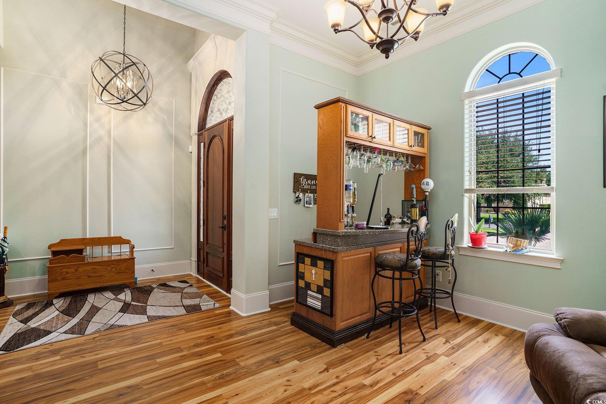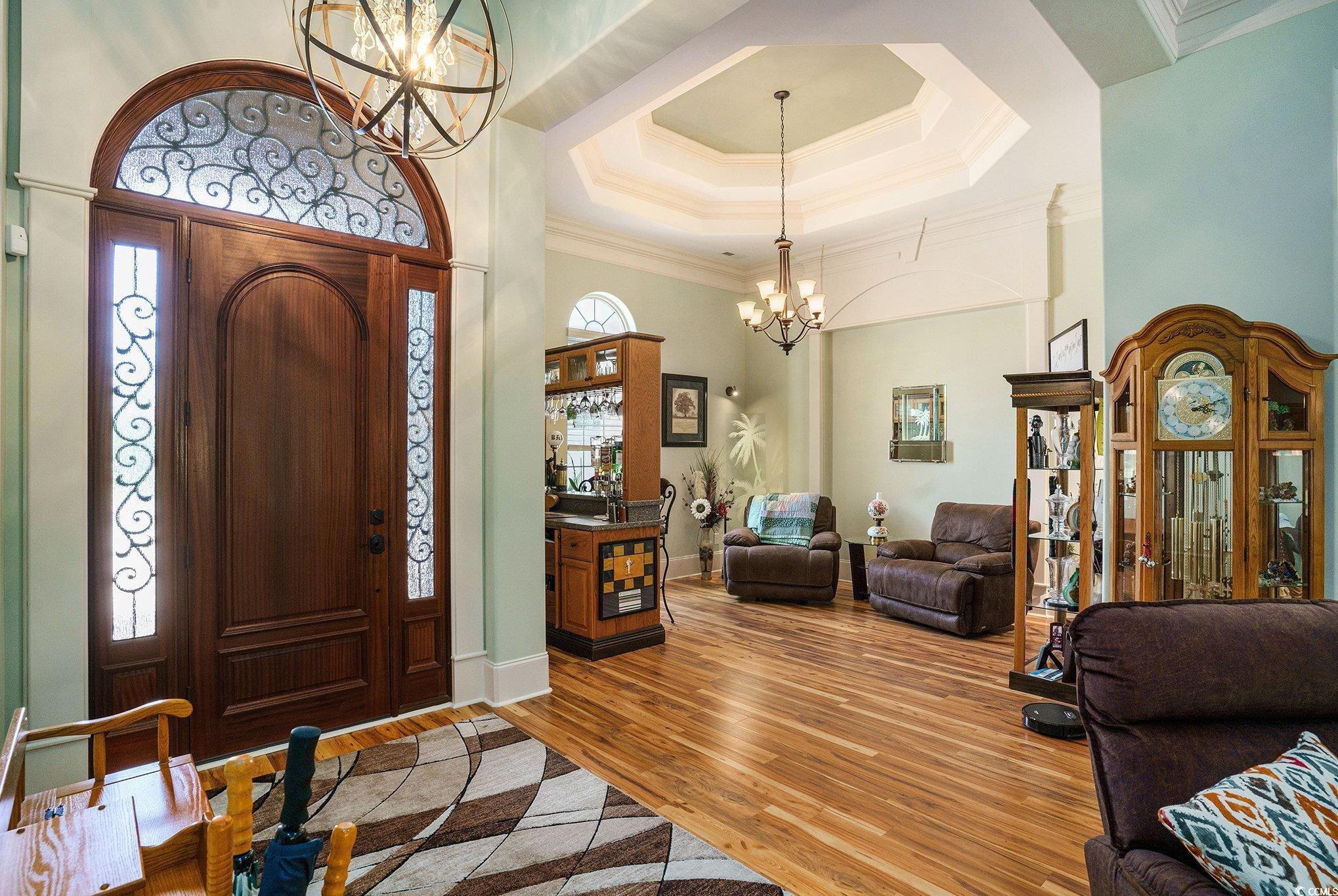 Driving through the private, gated community of Grande Dunes, you arrive at Bellasera Circle, a sought-after enclave known for its luxury homes and lush landscapes. The homes Mediterranean-inspired architecture, with its barrel tile roof, stone-accented entry, and lush palm-lined landscaping, immediately sets the tone for elegance. The paver driveway leads you to an arched stone entrance with a wood-stained door entry door that speaks elegance, creating a grand first impression along with the 3 car garage. Stepping inside, youre greeted by soaring tray ceilings, detailed crown molding, and warm hardwood floors that flow seamlessly throughout the main living areas. The formal living room welcomes you with abundant natural light and a stylish chandelier, perfect for entertaining guests. Moving forward, the spacious great room becomes the heart of the home. A stacked-stone fireplace flanked by custom built-ins anchors the space, while a triple tray ceiling with soft accent lighting adds depth and character. Expansive sliding glass doors open to a sprawling screened lanai, seamlessly blending indoor and outdoor living. The gourmet kitchen offers rich wood cabinetry, beautiful countertops, and an oversized center island with seating which is perfect for those quick meals. Pendant lighting highlights the island, and a double oven and stainless-steel appliances make it a chefs dream. An adjoining breakfast nook enjoys views of the lanai and pool. On one side of the home, the owners suite provides a private retreat with tray ceilings, cool coastal colors creating the perfect relaxing atmosphere. The ensuite bathroom features dual vanities, a whirlpool tub, and a walk-through tiled shower with dual showerheads and a rain showerhead as well. The expansive walk-in closet is what dreams are made of, with a ladder to even reach the very top! Three additional guest bedrooms each offer generous space, and access to beautifully finished full bathrooms. A well-appointed large laundry room with built-in storage and a utility sink add to the homes functionality. Upstairs above the garage is a spacious 289 sq. ft. room offers endless possibilitiesperfect for a home office, media room, gym, or hobby space. With the simple addition of one duct, it can be fully heated and cooled to suit your needs year-round. Step outside to the show-stopping screened lanai, where a sparkling pool takes center stage. With multiple sitting areas, a dining space, and panoramic views of the golf course, its the perfect backdrop for both quiet mornings and lively gatherings. This home also includes a spacious three-car garage and the exceptional lifestyle amenities of Grande Dunesprivate beach access at Ocean club and oceanfront pools. Cruise your way to the Members Club or the Ocean Club on the included 6 passenger 2025 Bintelli Golf Cart! This prime location in Grande Dunes offers the perfect blend of privacy and convenience, just minutes from Myrtle Beachs pristine beaches, world-class golf courses, shopping, dining, entertainment, and popular attractions along the Grand Strand. Whether youre seeking a day on the sand, a night out, or a round of golf, everything is right at your doorstep. Buyer is responsible for verification.