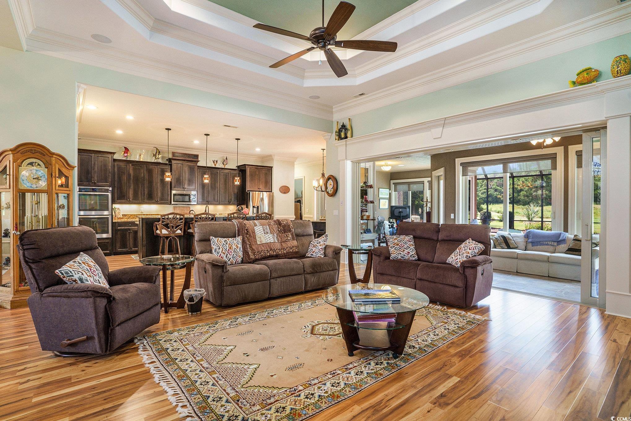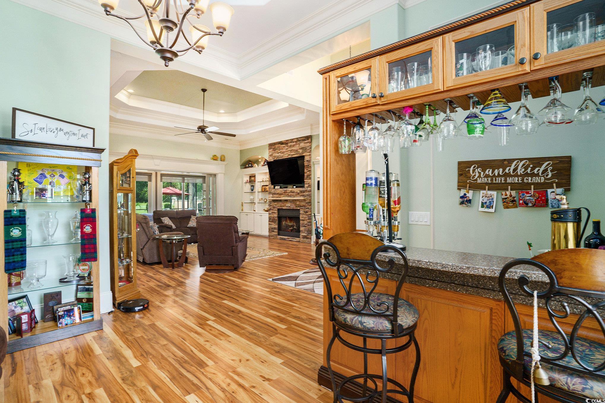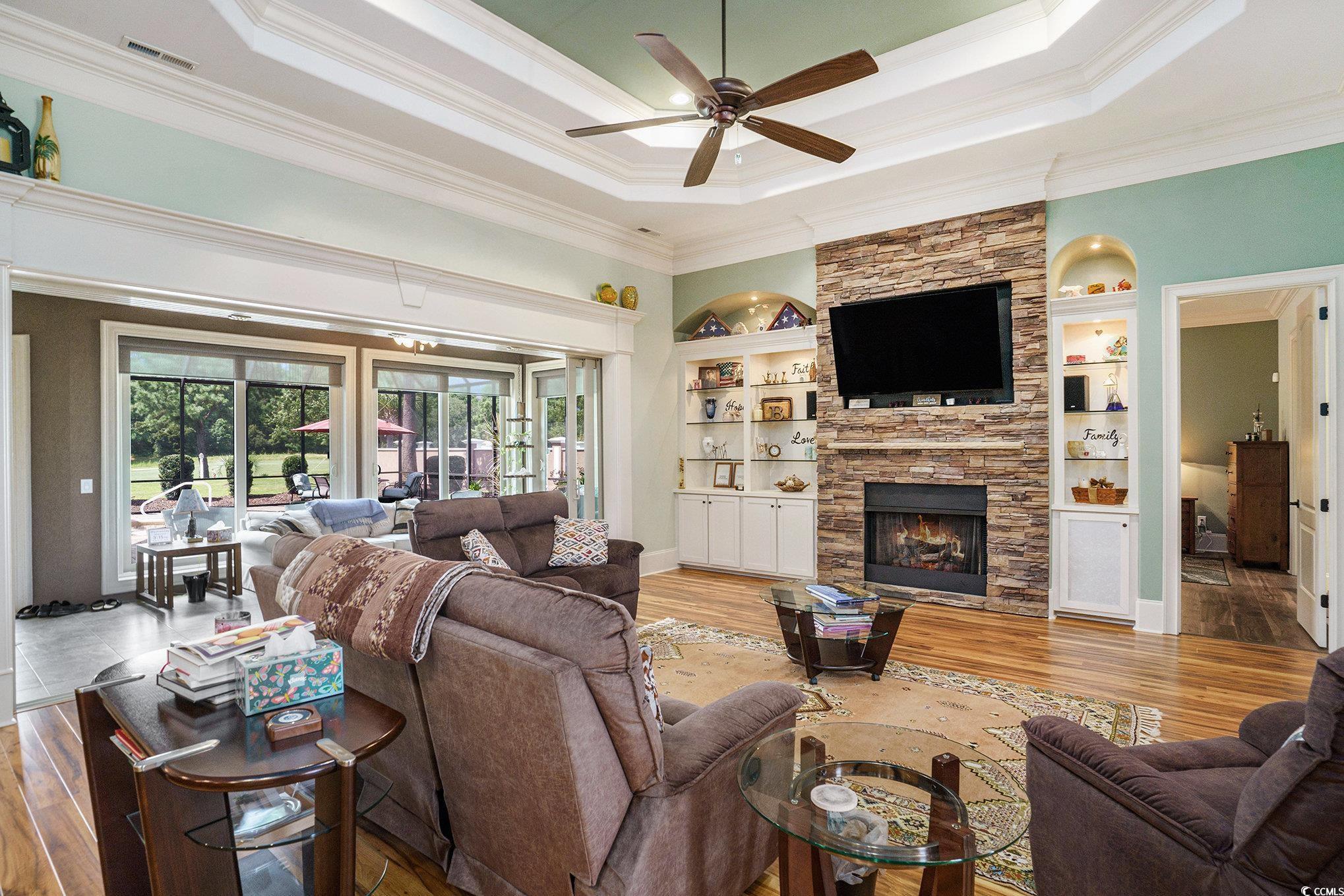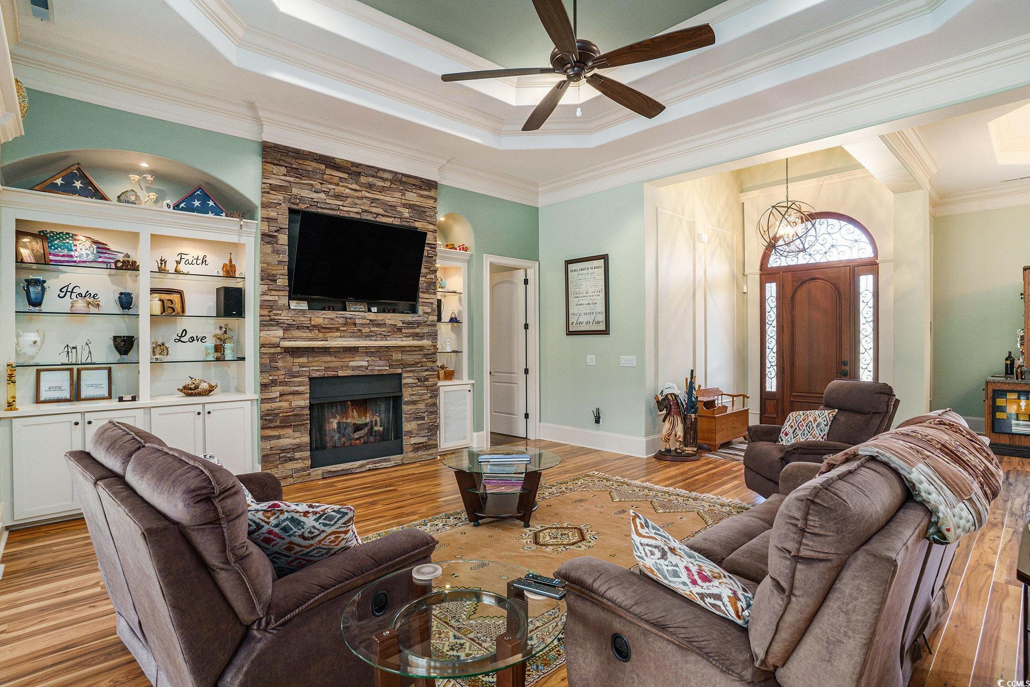 LivingRoom: TrayCeilings, CeilingFans, Fireplace