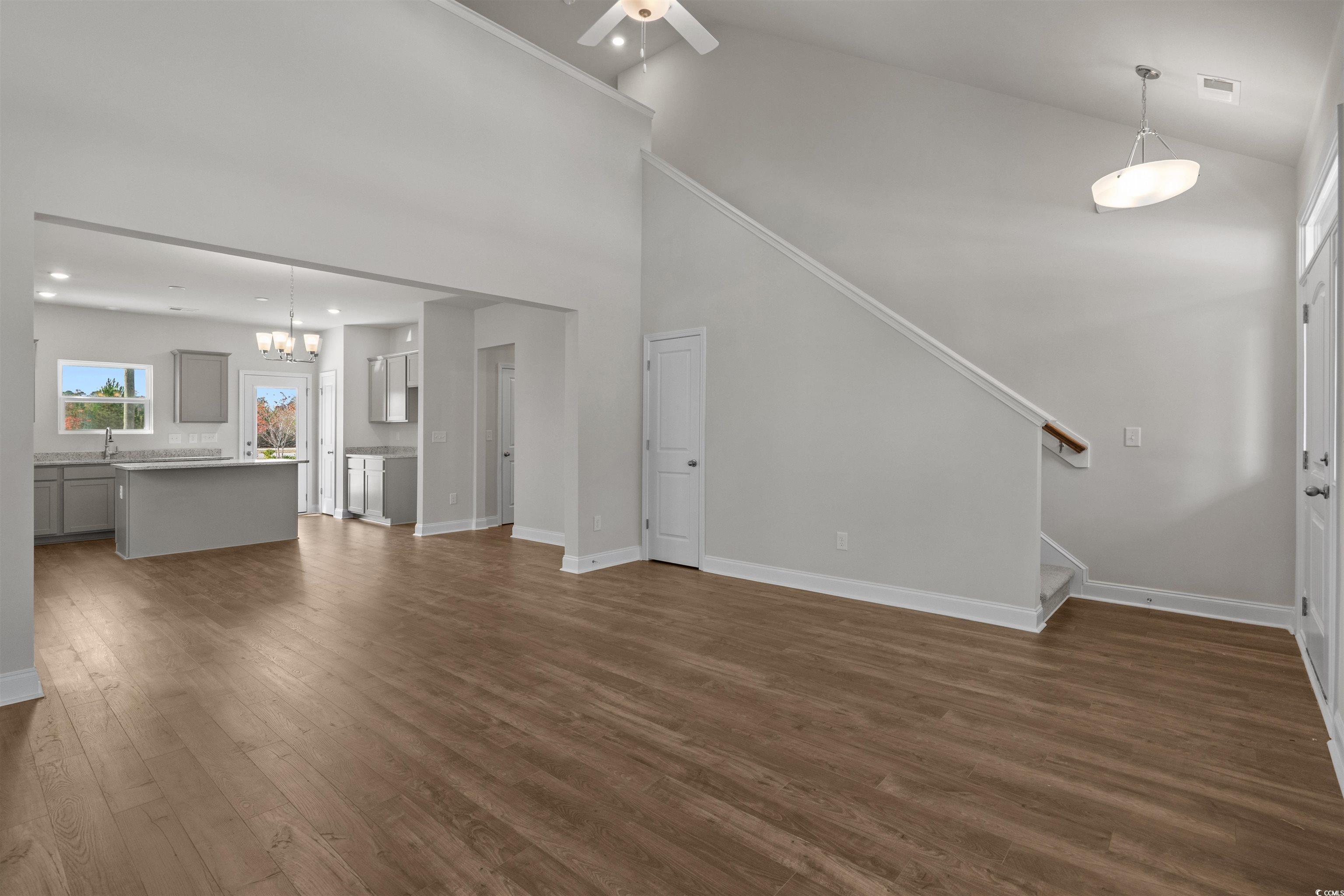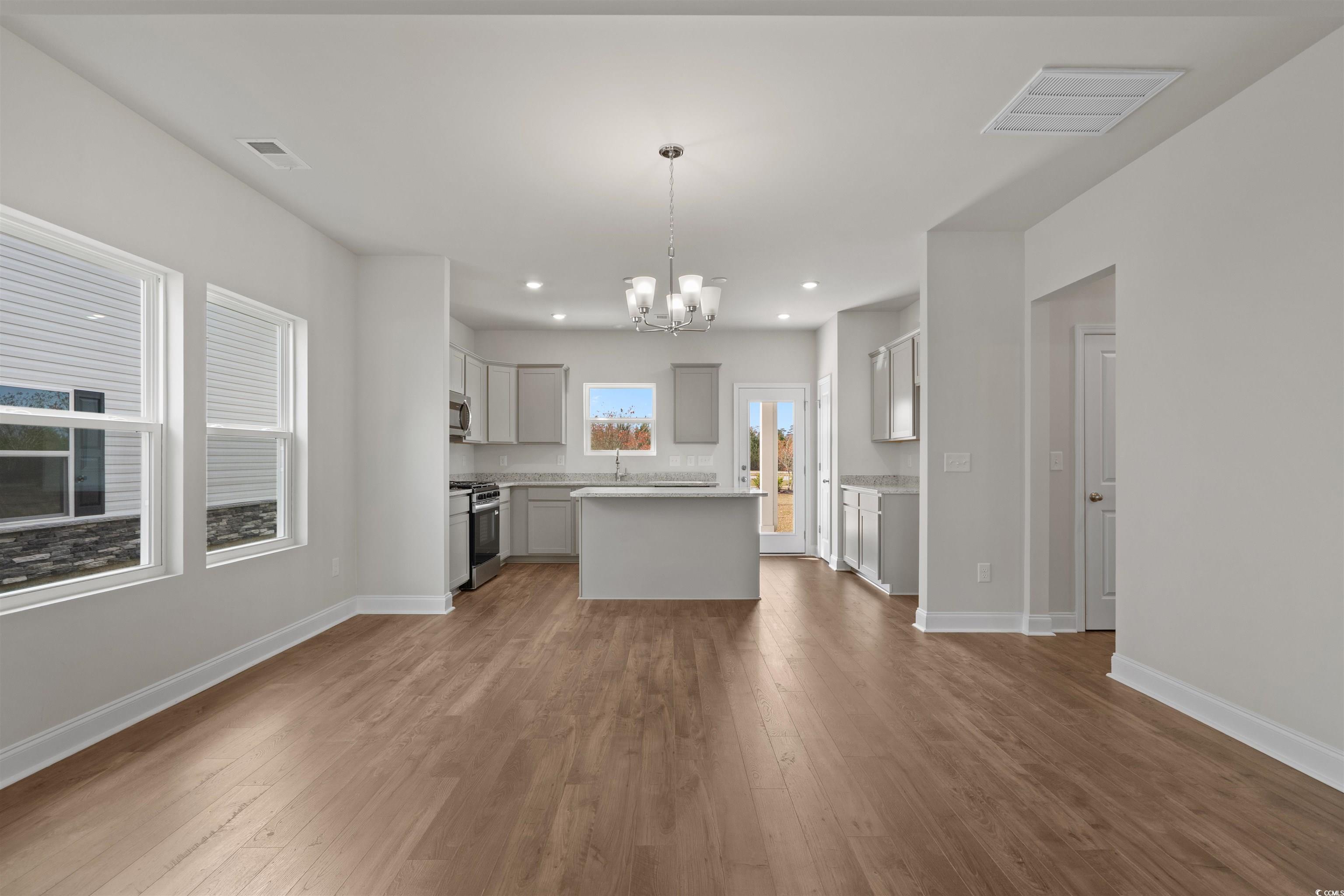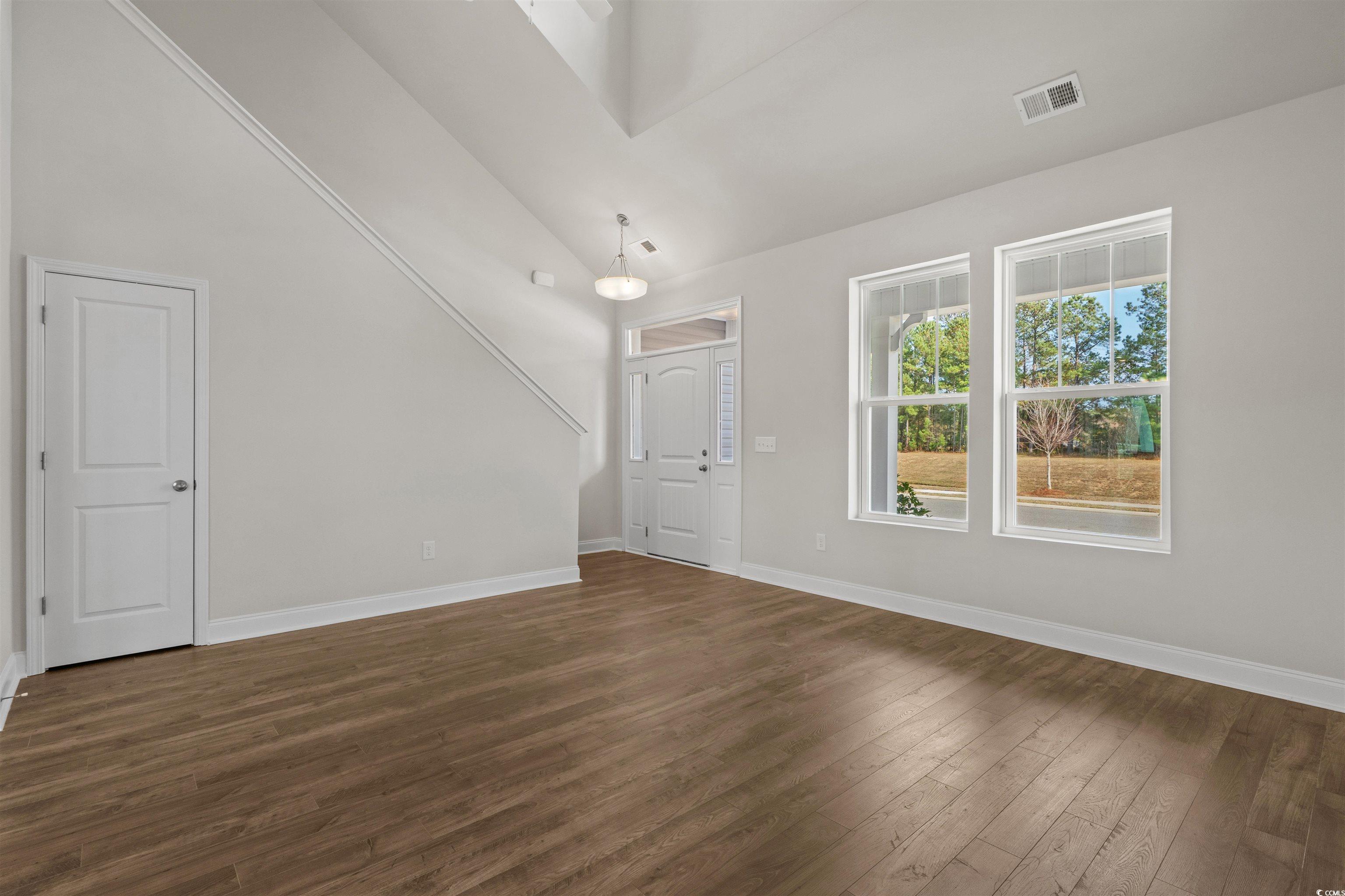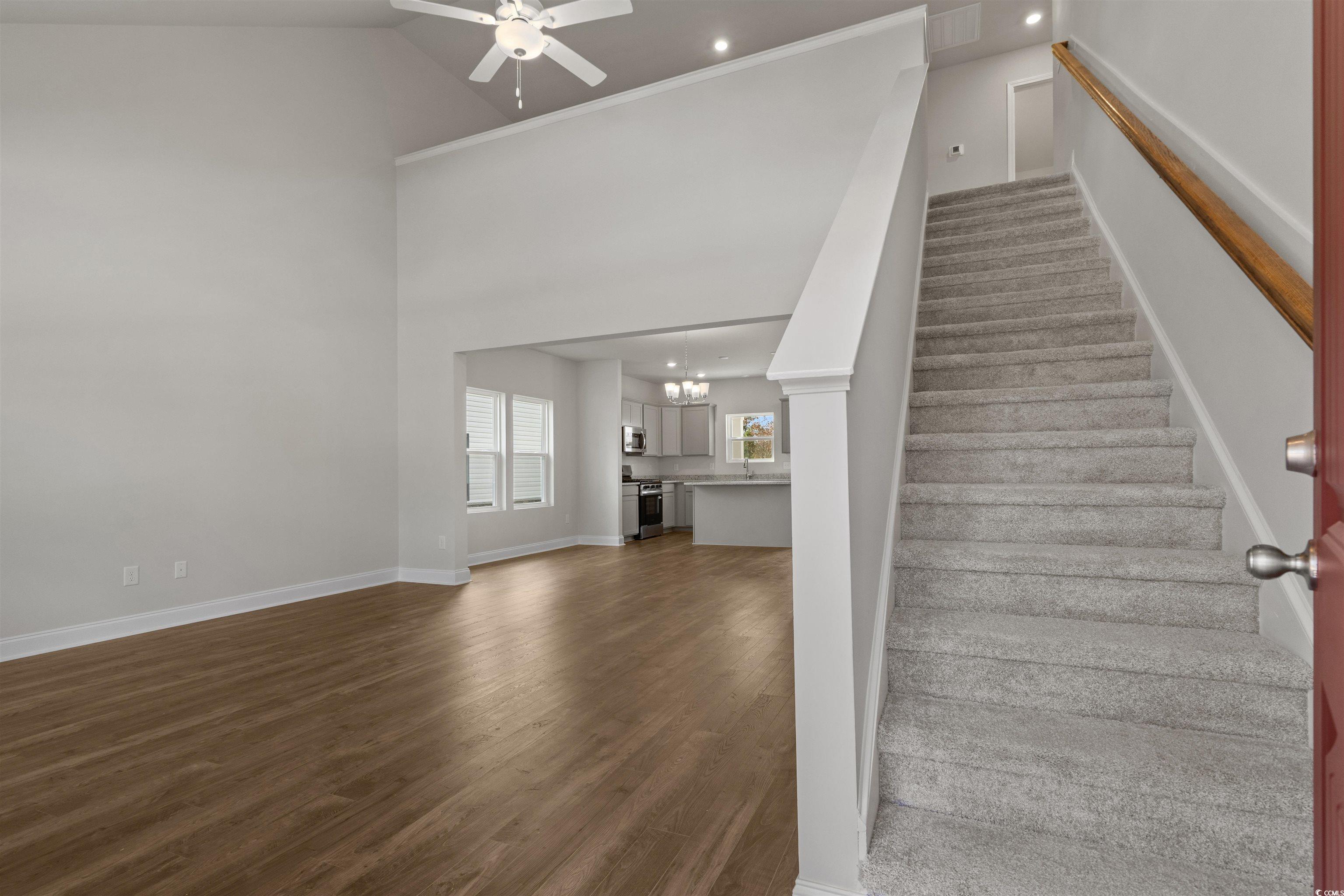 Introducing The Kent, a stunning two-level home that combines spacious living with elegant design. Upon entering, you are immediately welcomed by soaring 16+ foot cathedral ceilings in the living room, creating an open and airy atmosphere. The open-concept layout seamlessly flows into the dining and kitchen areas, making it perfect for entertaining or everyday family life. The main level also features the primary bedroom, which is thoughtfully designed with a beautiful bay window, offering a serene and bright retreat. The home boasts upgraded tile flooring and comfort height toilets in the bathrooms and upgraded Mohawk laminate flooring in the common areas. Upstairs, you'll find three additional bedrooms, a full bathroom, and an open loft area that overlooks the living room. The loft space is perfect for a play area, home office, or additional lounge space. The upstairs also includes a walk-in attic/storage space, offering ample room for all your storage needs or the potential for future expansion. Outside, the home features an irrigation/sprinkler system. Spring Oaks is a beautiful new home community offering natural gas homes, blending comfort with sustainability. Ideally located near Historic Downtown Conway, residents enjoy easy access to the Riverwalk, local restaurants, shops, and the stunning coastal beaches. Its the perfect spot for modern living with the convenience of nearby attractions.