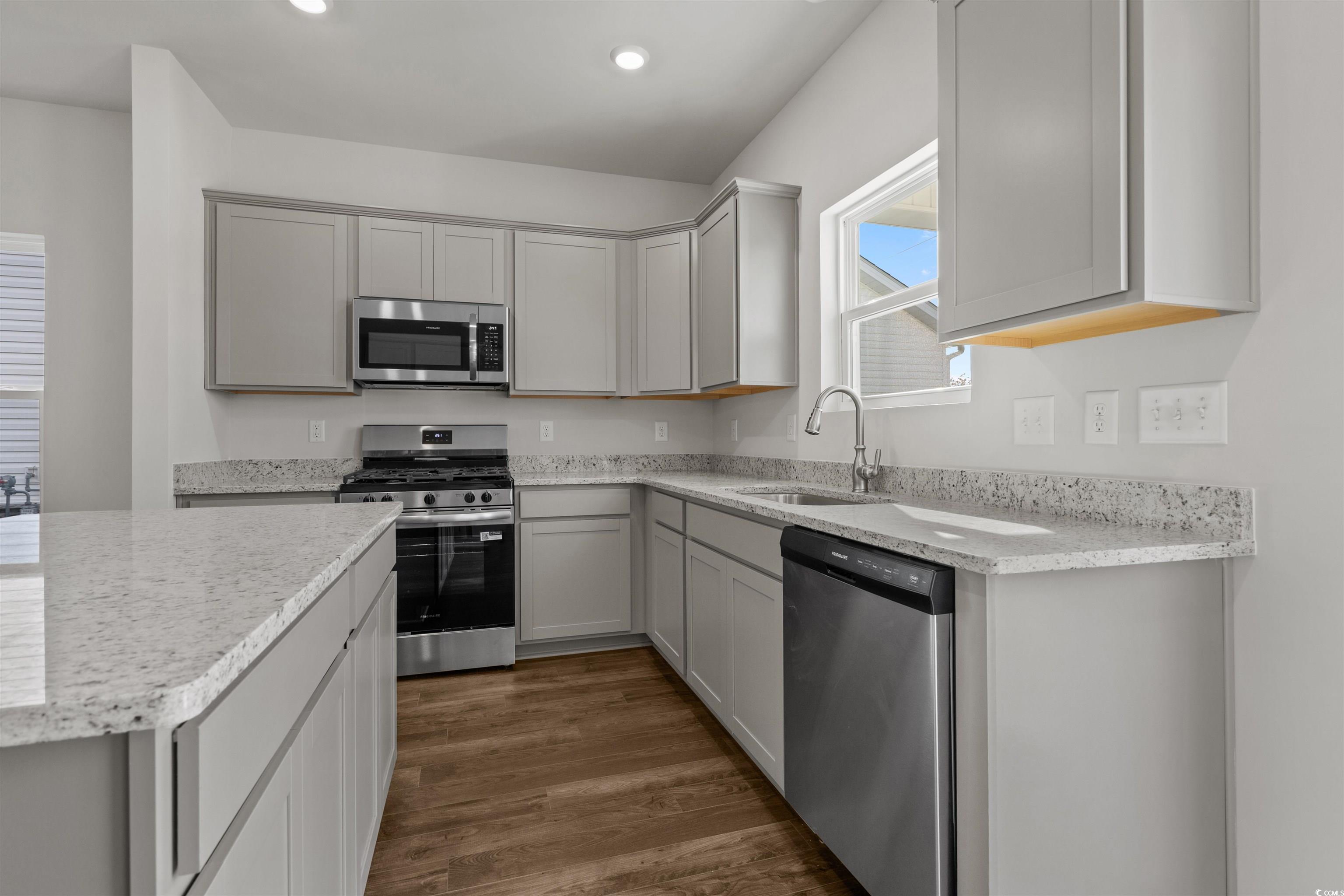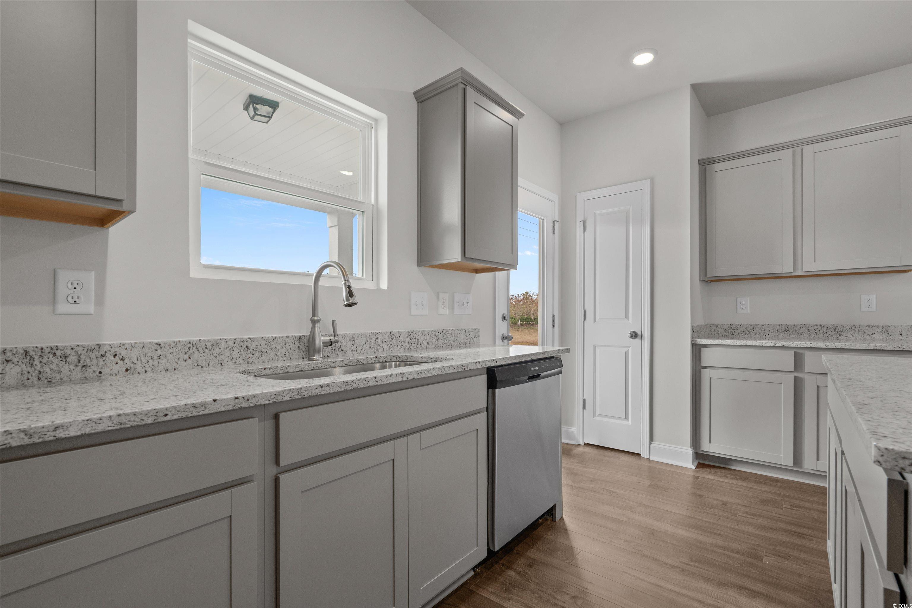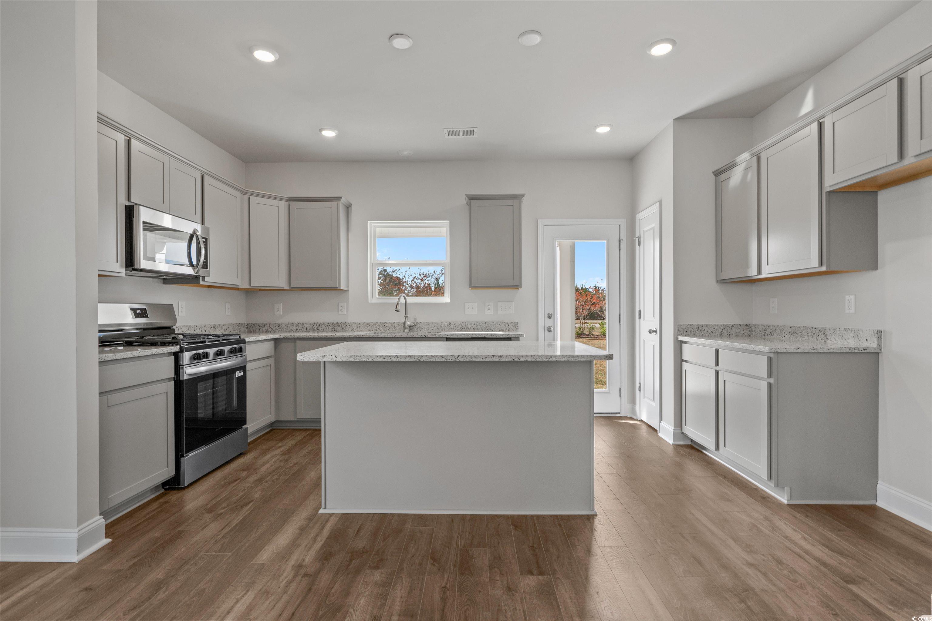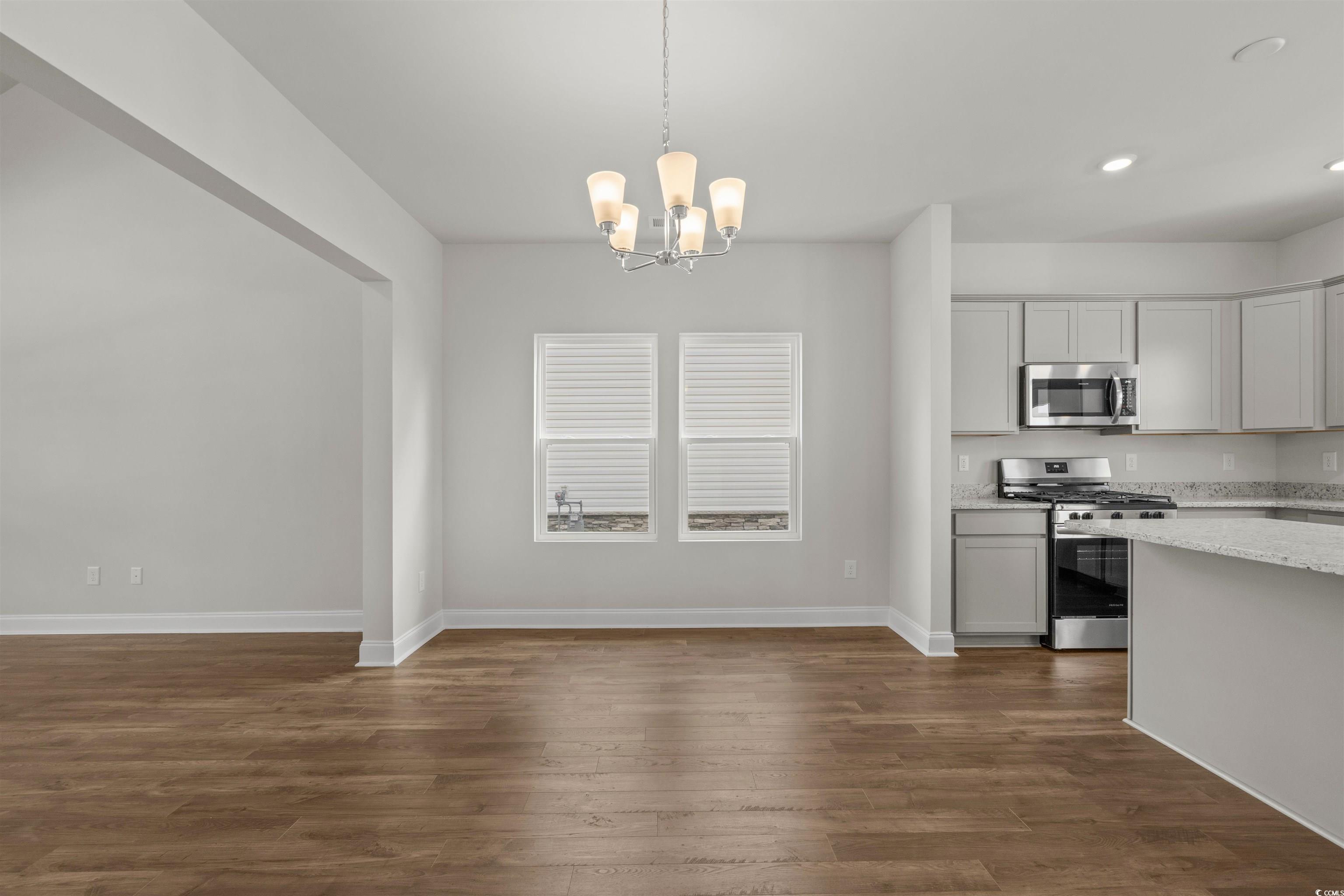 Introducing The Kent, a stunning two-level home that combines spacious living with elegant design. Upon entering, you are immediately welcomed by soaring 16+ foot cathedral ceilings in the living room, creating an open and airy atmosphere. The open-concept layout seamlessly flows into the dining and kitchen areas, making it perfect for entertaining or everyday family life. The main level also features the primary bedroom, which is thoughtfully designed with a beautiful bay window, offering a serene and bright retreat. The home boasts upgraded tile flooring and comfort height toilets in the bathrooms and upgraded Mohawk laminate flooring in the common areas. Upstairs, you'll find three additional bedrooms, a full bathroom, and an open loft area that overlooks the living room. The loft space is perfect for a play area, home office, or additional lounge space. The upstairs also includes a walk-in attic/storage space, offering ample room for all your storage needs or the potential for future expansion. Outside, the home features an irrigation/sprinkler system. Spring Oaks is a beautiful new home community offering natural gas homes, blending comfort with sustainability. Ideally located near Historic Downtown Conway, residents enjoy easy access to the Riverwalk, local restaurants, shops, and the stunning coastal beaches. Its the perfect spot for modern living with the convenience of nearby attractions.