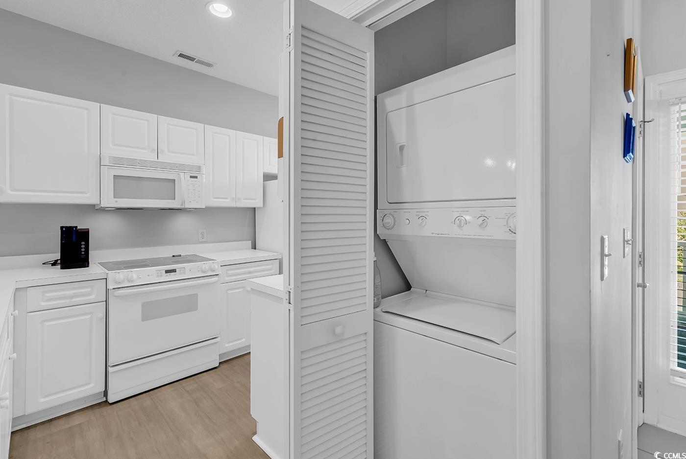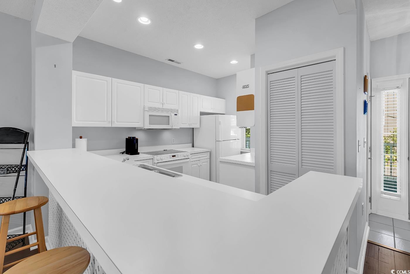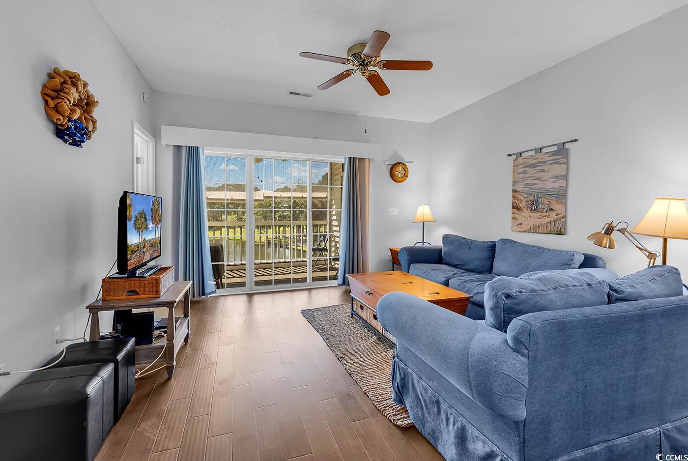 Top-floor living at The Moorings inside the sought-after Eastport community in Little River! This spacious 2-bedroom, 2-bath condo offers privacy and comfort with no units above. Enjoy a full-size kitchen perfect for everyday cooking, solid flooring throughout for easy maintenance, and a bright open layout. Step outside to your private oversized screened-in balcony featuring serene golf course and pond views, ideal for morning coffee or evening relaxation. An extra storage closet on the balcony provides convenient space for seasonal items, while the in-unit washer and dryer add everyday ease. Located in a peaceful waterfront community near marinas, dining, and just minutes from the beach, this condo blends quiet retreat with coastal convenience. Schedule your appointment today!