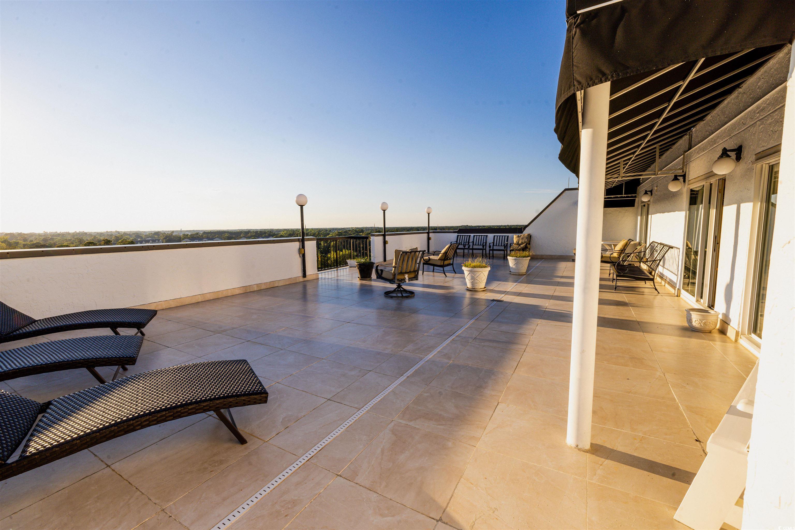 Enjoy amazing, unobstructed views of the beach from this stunning Myrtle Beach condo, featuring a 50-foot by 22-foot private rooftop terrace with sweeping panoramic vistas. Just a few minutes walk to the beach, as well as top dining and entertainment, this home blends comfort, style, and location. The open concept floor plan is filled with natural light, while the gourmet kitchen offers granite countertops, stainless steel appliances, and a large island perfect for hosting. Bedrooms are spacious and inviting, and the spa-inspired bathrooms include walk-in showers and a luxurious soaking tub in the primary suite. Outdoor living is unmatched with a shaded balcony off the main living area and another private balcony from the primary bedroom. Additional features include high-speed internet and keyless entry. Located in a quiet, walkable neighborhood, this residence is ideal as a full-time home, vacation getaway, or investment property.