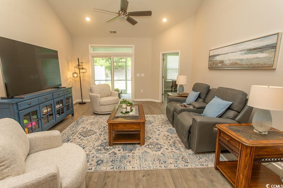 Are you looking for a low maintenance lifestyle? WELCOME to Bella Vita Garden Homes! This Jasmine model home features a Coastal exterior design, featuring 3 bedrooms 2 bathrooms located just 5+- miles from the Beach and Myrtle Beach International airport. This end unit offers a 2 car garage, covered front porch, laundry room and a spacious layout with vaulted ceilings in the main living area. The home features 9 ceilings & LVP flooring. The Primary Bedroom offers an upgraded tray ceiling & bay window. The Primary Bathroom has a beautiful 5' tile shower with glass doors, double vanity sinks and tile flooring. There's a huge linen closet & walk-in closet. The Guest bathroom has a tub/shower enclosure, tile flooring and the 2 additional bedrooms have carpet. The gorgeous Kitchen features 42 upgraded cabinets, subway tile backsplash & quartz counters. Lots of workspace with the center island & raised peninsula breakfast bar for more seating. All stainless appliances in Kitchen are included-built-in microwave, dishwasher, gas stove plus a Samsung Bespoke refrigerator. Sellers have installed ceiling fans & an Anderson storm door. The covered back porch is screened and theres a natural gas BBQ grill hook up along with front & back faucets. Seller is providing the Buyer with a 12 Month Home Warranty at closing! This Home is Energy star Certified, Low E windows, LEDs, High-efficiency Gas Rinnai tankless water heater and much more! HOA fees include exterior insurance, water/sewer, trash, basic cable, exterior pest & termite control, irrigation & lawn maintenance plus access to the Amenities Center which includes the Clubhouse, Fitness room & huge outdoor Pool & playground. Close proximity to RT501 & RT31 and just a short drive the beach!