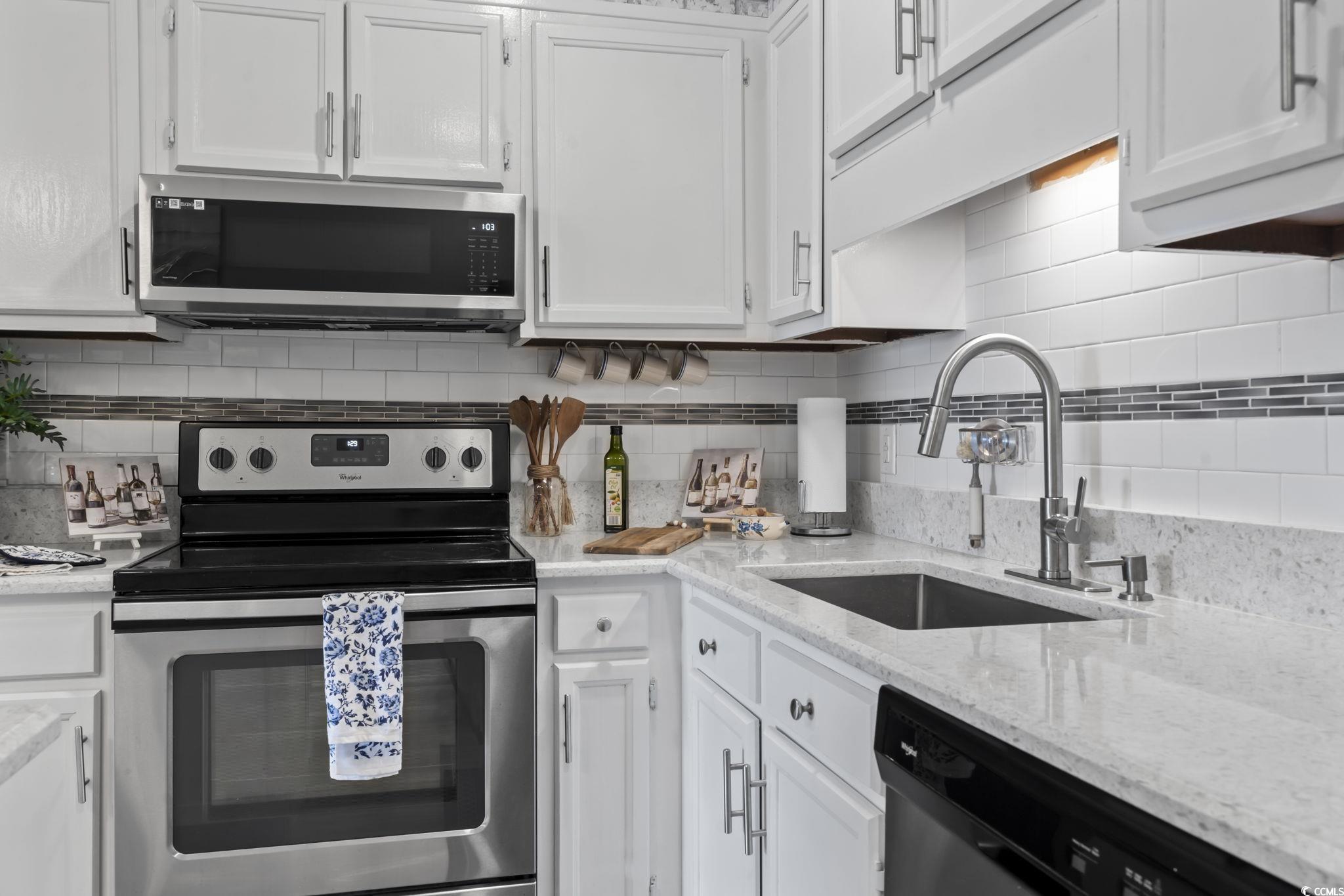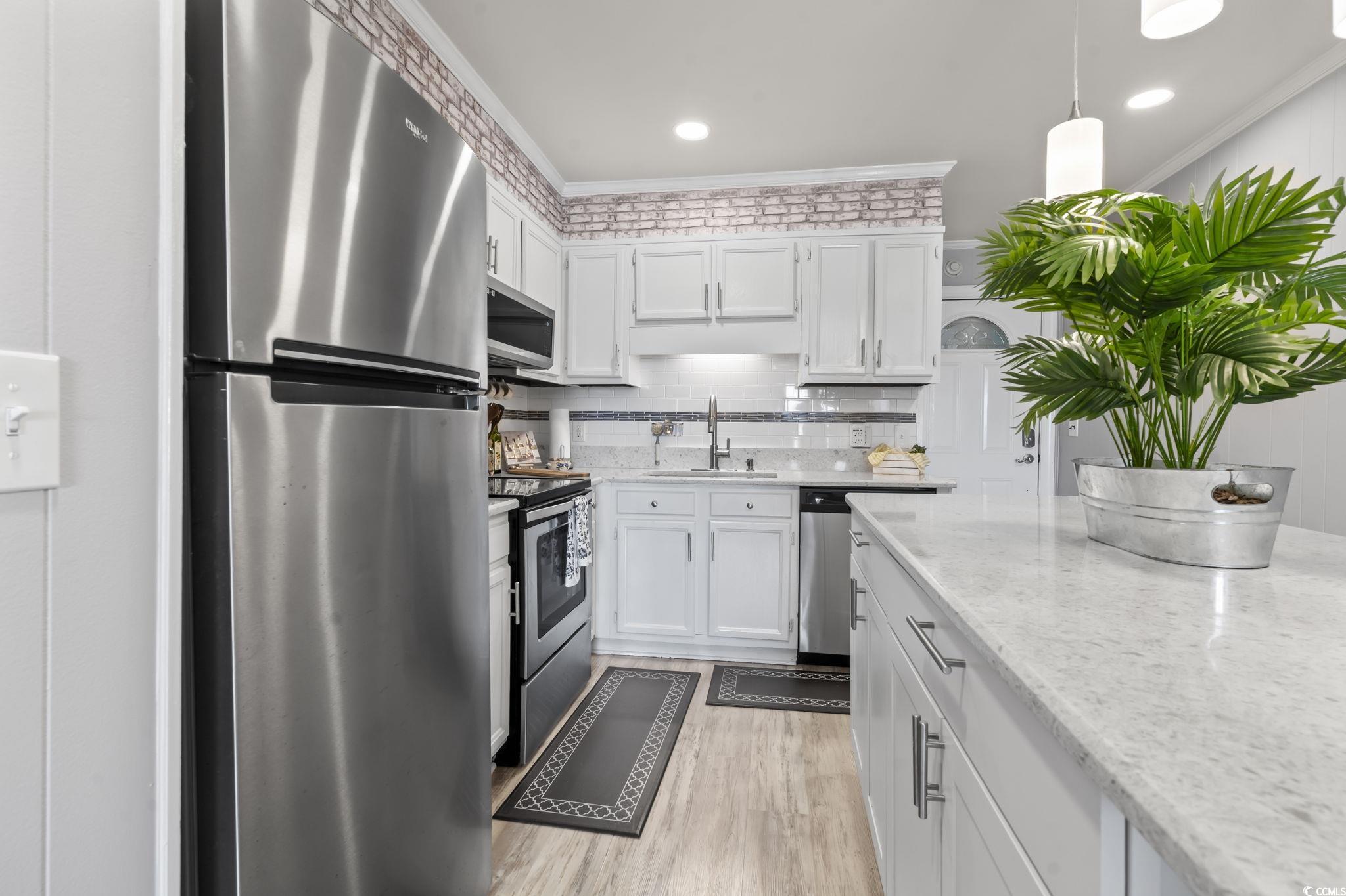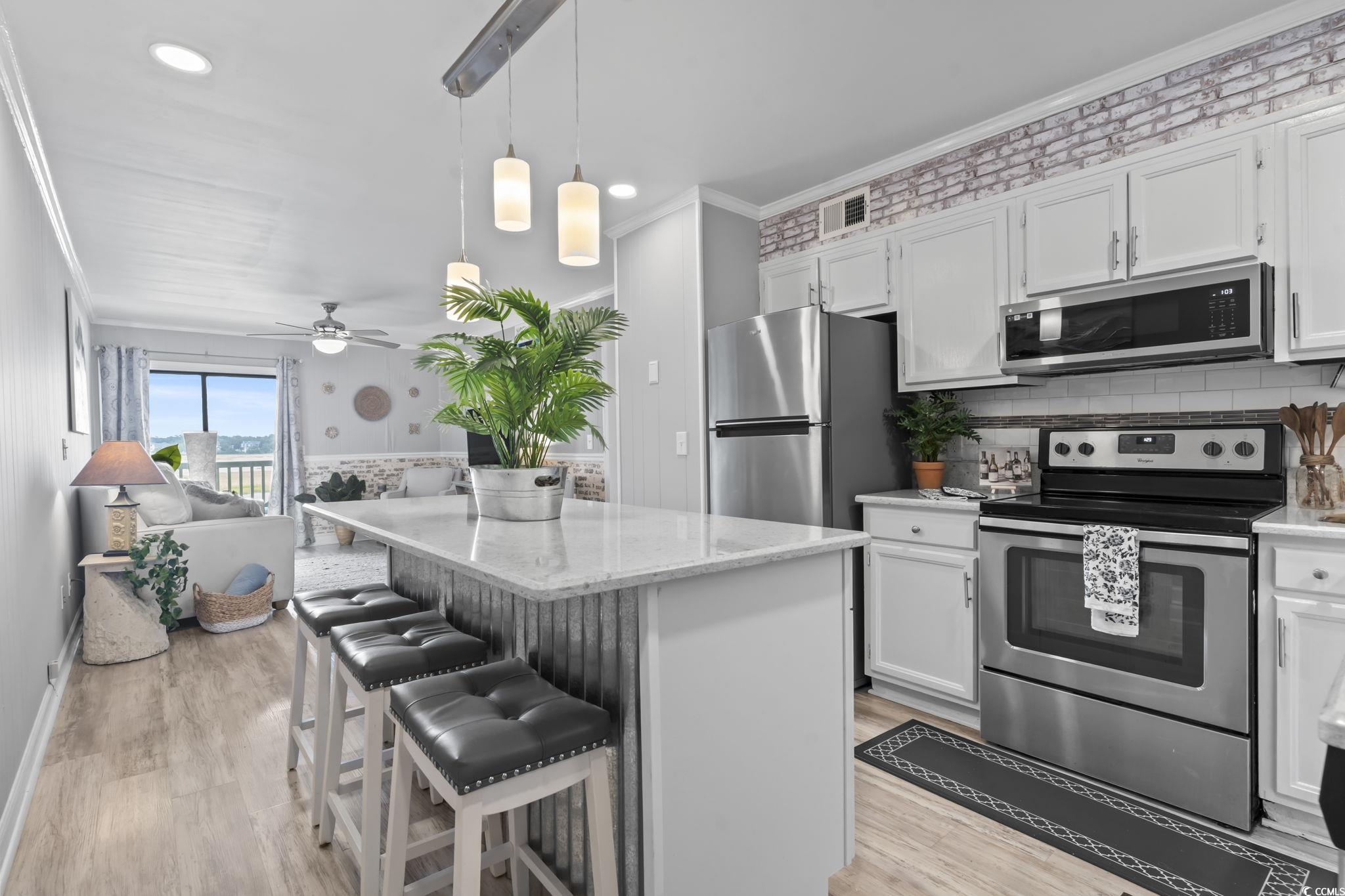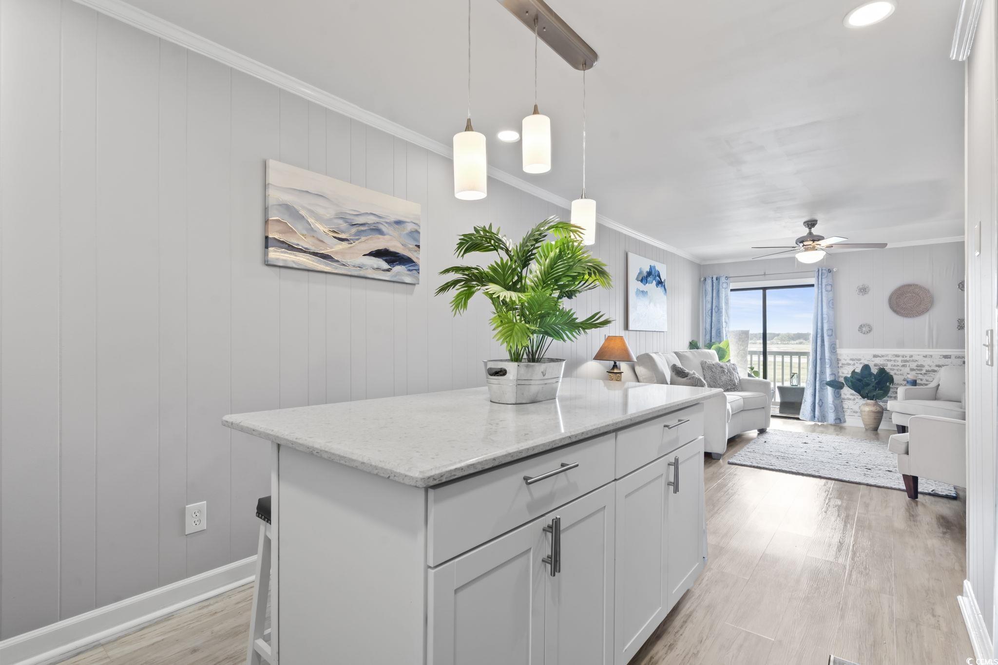 Step into style and comfort with this beautifully updated coastal condo, perfectly blending modern finishes with a serene, beachy ambiance. This bright and airy condo features a spacious open-concept layout with luxury vinyl plank flooring throughout. Flowing seamlessly from the kitchen, the cozy living area is bathed in natural light from the sliding glass door, which opens to a private balcony overlooking peaceful marsh views where you can enjoy relaxing mornings or sunset evenings. Step into your master bedroom which offers stunning views of the marsh and a master bathroom complete with a beautiful vanity and waterfall shower head. Dont miss the opportunity to own this turnkey property just steps away from the ocean that combines coastal charm, modern amenities, and a stunning natural backdrop. Whether you're looking for a full-time residence, vacation home, or rental investmentthis one checks all the boxes!
