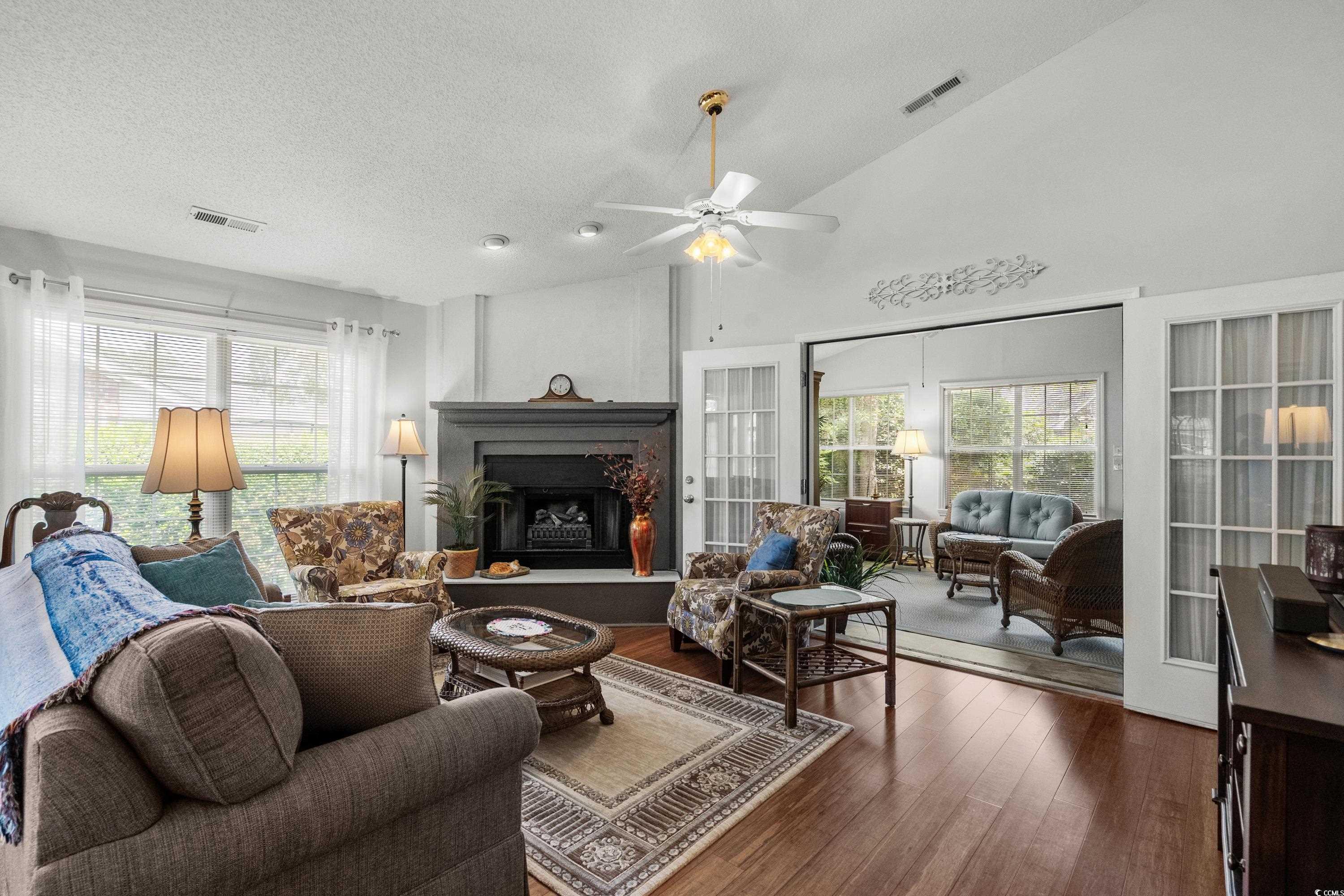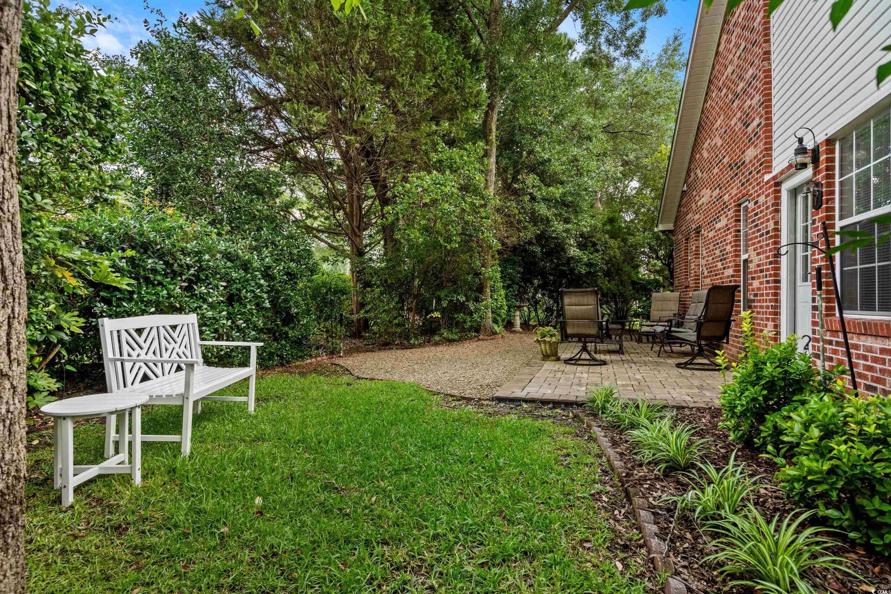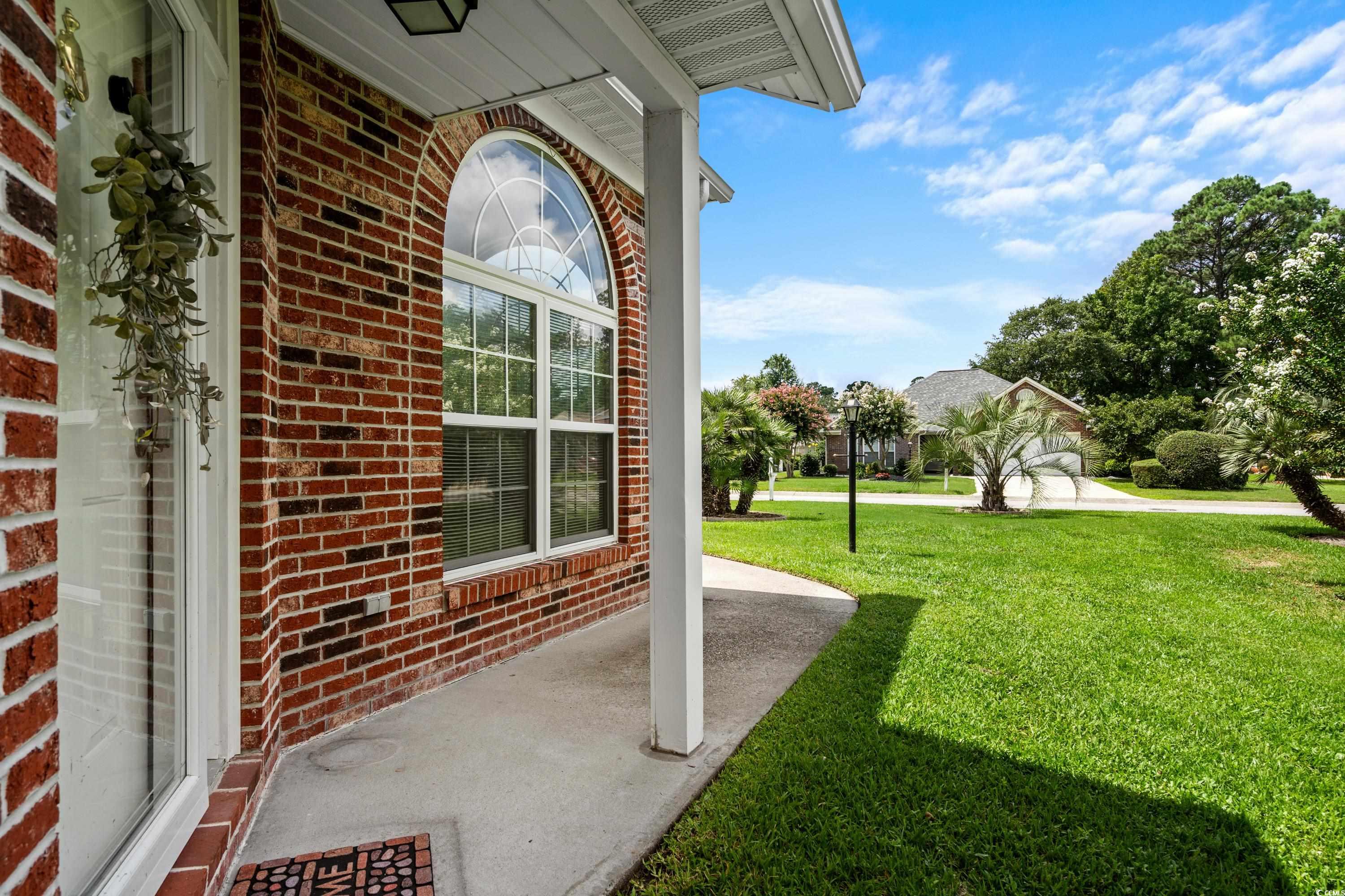 Welcome to this beautiful 3 bedroom, 2 bath all-brick home in the highly desirable Tilghman Forest section of Tilghman Estates in North Myrtle Beach. From the moment you arrive, youll notice the charm and quality this home offers, with the entire layout designed on one level for convenience and comfort. Step inside and youre greeted with soaring vaulted ceilings in every room and rich hardwood flooring that flows seamlessly throughout, with tile in the kitchen and baths. The remodeled kitchen is a true highlight of the home, featuring a brand new stove, nearly new stainless steel refrigerator, dishwasher, and microwave, plus decorative glass inserts in the cabinetry, under-cabinet lighting, and a cozy breakfast nook framed by two oversized palladium half-round windows that flood the space with natural light. The living room offers both warmth and character with a wood-burning fireplace complete with gas logs, making it the perfect spot for cozy evenings. The large master suite provides a quiet retreat with its vaulted ceiling, spacious layout, and private ensuite bath with double vanity and walk-in shower. Two additional bedrooms and a second full bath ensure plenty of space for family or guests. Off the great room, youll find a bright and versatile Carolina room that can easily serve as a second living area, home office, hobby space, or sun-filled retreat. Step outside and discover your very own backyard sanctuary, professionally designed by EliteLandscapers. This tranquil space features brick patio pavers, tropical plantings, landscape lighting, and a quiet, private setting that feels like your own hidden escape. Location doesnt get any better just a short golf cart ride takes you to some of the most pristine beaches in North Myrtle Beach, as well as to Main Street where youll enjoy dining, shopping, festivals, and live entertainment. Youll also have easy access to golf, boating, and everything the Grand Strand is famous for. As a resident of Tilghman Forest, youll enjoy community amenities including a pool and clubhouse. This is more than just a house its a lifestyle in one of the most desirable communities along the coast.
