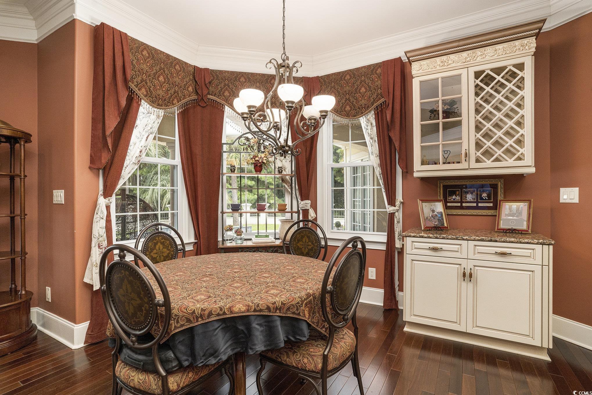 A Masterpiece of Timeless Elegance in Plantation Point. Step into refined sophistication with this impeccably designed Lorenzo-inspired estate, gracefully situated in the prestigious enclave of Plantation PointMyrtle Beachs most sought-after community. Crafted for the discerning connoisseur, this extraordinary residence is a flawless fusion of architectural grandeur, modern luxury, and the genteel charm of Southern living. From the moment of arrival, you're welcomed by stately mahogany double doors with arched glass insets, opening into a dramatic foyer where Italian marble floors and a hand-applied, gilded gold-leaf tray ceiling immediately captivate. Soaring seven tray ceilingstwo of which are artistically illuminatedadd volume and visual allure, while rich Brazilian walnut hardwood flows seamlessly underfoot, uniting each space in warm elegance. -Exquisite Design & Uncompromising Craftsmanship. -Architecturally superior construction, with an advanced breathable foundation that enhances energy efficiency and minimizes heat retention. -Storm-rated, Low-E windows and doors (rated to withstand up to 150 mph winds) ensure safety, insulation, and tranquility. -Solid-core wood interior doors throughout for acoustic privacy and classic refinement. -Gourmet Kitchen for the Culinary Aficionado. -Outfitted with professional-grade Viking stovetop, including double ovens, a gas range, warming drawer, and oversized refrigerator. -Custom KBC glazed maple cabinetry, elegantly paired with lustrous granite countertops. -Designed for effortless flow into the living and dining areasperfect for both formal entertaining and intimate gatherings. -Integrated Technology & Wellness Features. -Built-in surround sound system envelops both interior spaces and the poolside veranda for immersive audio enjoyment. -State-of-the-art indoor air quality management, including a sealed and encapsulated crawlspace, high-efficiency dehumidification. -Endless hot water via a recirculating system. -Resort-Inspired Outdoor Living. Centered around a serene sport pool with cascading waterfall, enhanced by ambient landscape lighting (IntelliBrite underwater pool lighting system) for enchanting evenings. -Entertain in style from a 1,000 sq. ft. tiled veranda, featuring a retractable awning, gourmet outdoor kitchen, and granite-topped bar. -A nine-zone Hunter irrigation system keeps the professionally manicured grounds lush and vibrant year-round. This exceptional estate offers not only timeless architectural elegance, but also an unwavering commitment to comfort, safety, and energy-conscious living. Just minutes from pristine beaches, world-renowned golf, upscale shopping, and fine diningyet privately tucked within the tranquil beauty of Plantation Pointthis is a rare and remarkable offering in the heart of Myrtle Beach. Schedule your private showing today and experience the pinnacle of Southern luxury living.
