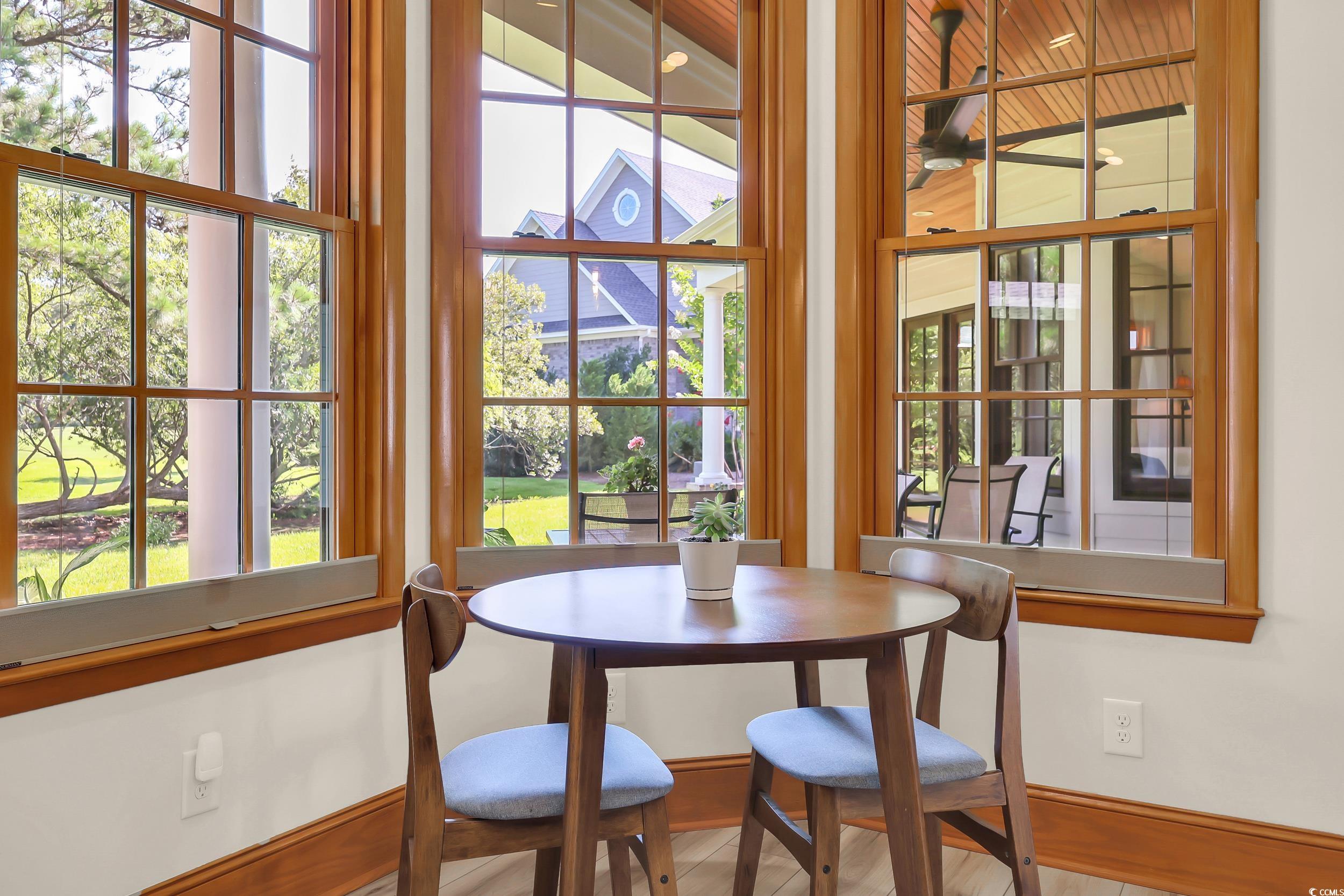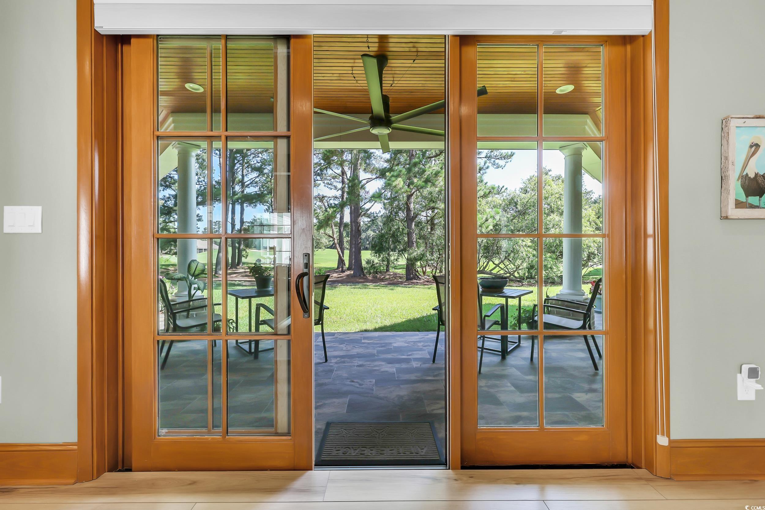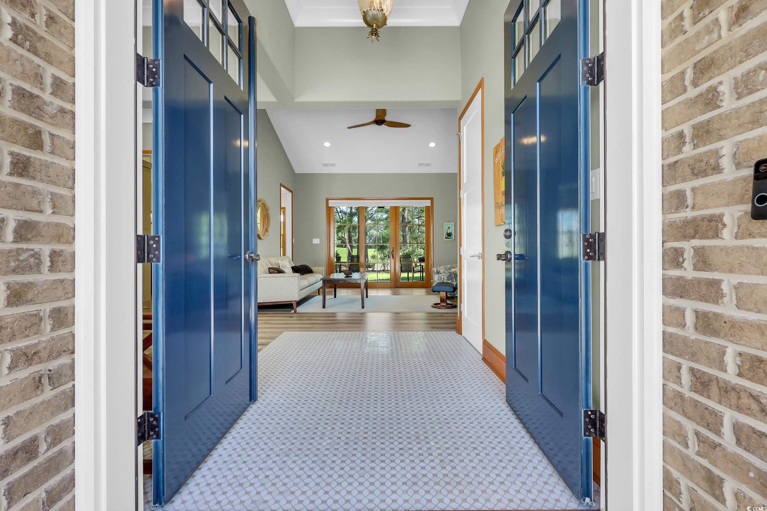 1575 Heritage Drive is a single-level custom home on the 5th fairway, just steps from the marina, built for living not just looking. Mid-century modern influences show in its crisp lines, open flow, and understated style, making it timeless and easy to live in. Inside, 12-foot ceilings, wide-plank floors, and oversized Sierra Pacific windows fill the home with natural light and frame golf-course views. The kitchen, breakfast nook, and keeping room flow seamlessly ideal for casual dining or relaxing by the modern fireplace. Thermador appliances, a leathered Caesarstone island, custom cabinetry, and a walk-in pantry keep everything organized. Some photos have been virtually staged. Dining and living rooms open from the entryway, creating an airy feel. The living room leads to the covered veranda, extending the home outdoors perfect for evening cocktails, weekend grilling, or a post-workout cool-down. The primary suite offers golf-course views, a soaking tub, dual vanities, and a large tiled shower. Two additional bedrooms (one en suite) and a glass-doored office provide flexible space for work, guests, or hobbies. The garage is a true luxury toy box. Three-car plus golf-cart bay with epoxy floors, insulated doors, and jackshaft openers offers room for cars, bikes, boards, a home gym, or workshop and can convert to conditioned living space if needed. Laundry is stylish and functional with Maytag appliances, utility sink, cabinetry, and a hand-laid tile backsplash. Low-maintenance landscaping, Rainbird irrigation, whole-house dehumidifier, generator, and CoreGuard Plus windows make upkeep effortless. Backed by a transferable 10-Year Quality Builders Warranty. Heritage Plantation delivers a gated, amenity-rich lifestyle marina, pool, tennis, pickleball, clubhouse, and championship golf just minutes from Pawleys Island beaches, dining, and boutiques. Perfect for buyers seeking a light-filled, mid-century inspired, easy-to-live-in home that works as hard as they do.
