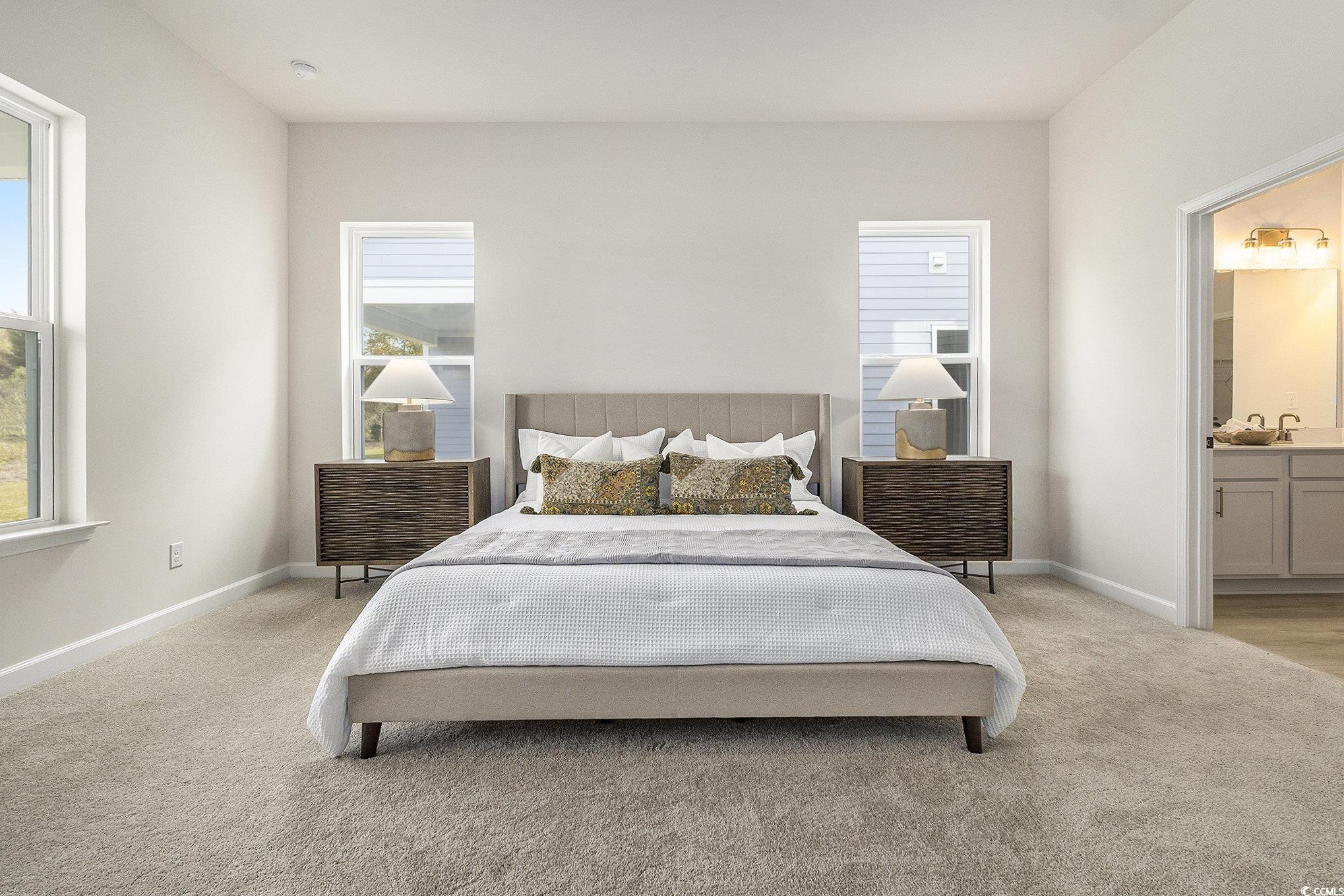 Grab this opportunity to be one of the first to buy in an Intracoastal Waterway Waterfront community! Discover the perfect blend of comfort and style in this spacious 2,683 sq. ft. two-story home. With 4 bedrooms and 2.5 baths, the thoughtfully designed layout begins with a main-floor primary suite complete with dual vanities, a tiled shower, and an expansive walk-in closet. The open-concept kitchen flows into the breakfast area and family room, extending outdoors to a covered patio upgradeideal for both entertaining and unwinding. Upstairs, a versatile loft anchors three secondary bedrooms, each with its own walk-in closet. A large storage closet off the loft adds convenience, keeping everything neatly in place. This home also features our Serene Collection, inspired by the quiet rhythm of nature and the softness of light. White cabinets, gold hardware, a scalloped tile backsplash, quartz countertops, and light oak-style LVP flooring create a calm, airy atmosphere that feels timeless yet modern. Every detail was curated to bring a sense of peace and balance to daily living.