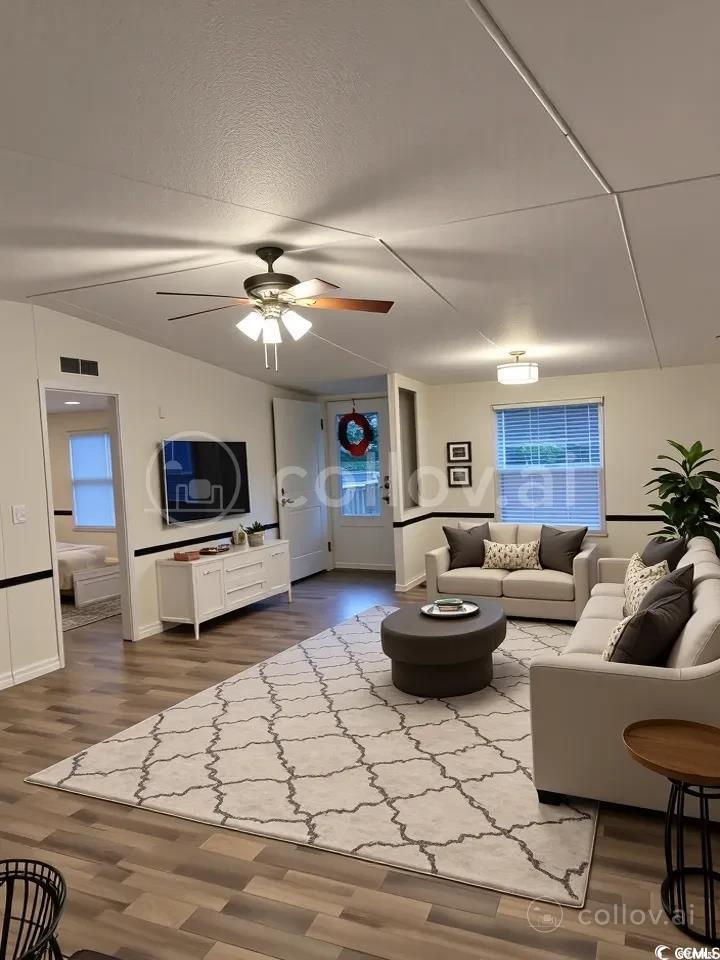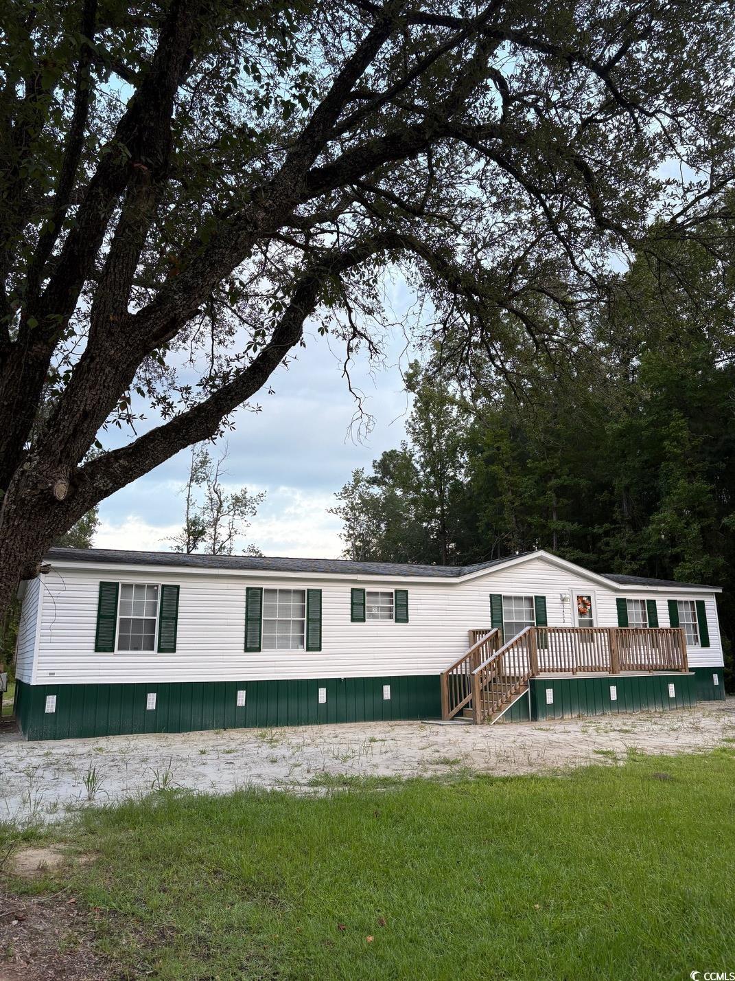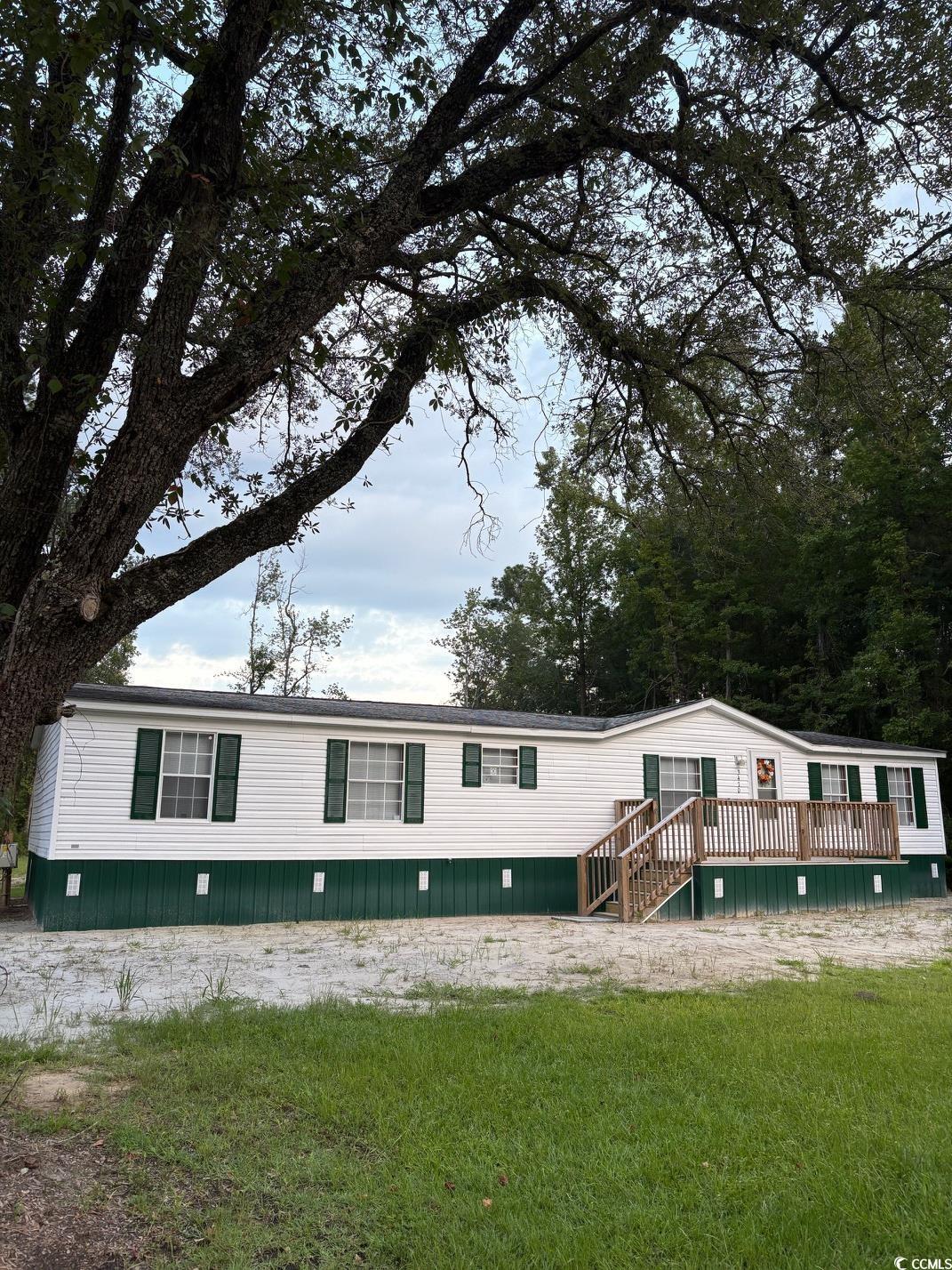 This move-in-ready manufactured home offers comfort, functionality, and space both inside and out. The oversized living room is filled with natural light, creating a warm and inviting atmosphere. The kitchen is a cooks delight with ample cabinet storage, brand-new appliances, and a generous dining area perfect for hosting gatherings or enjoying family meals. The master suite features a large walk-in closet and a private en-suite bathroom with a dual-sink vanity, providing convenience and personal space. You'll also enjoy a separate walk-in shower for added ease. Two additional bedrooms and a second full bathroom offer plenty of room for family or guests. A dedicated laundry area with its own private entrance makes everyday chores simple and efficient. Step outside to a spacious 10x16 front deck perfect for relaxing or entertaining and enjoy the expansive .72-acre lot. Other updates include a brand-new HVAC system (2025), giving you peace of mind for years to come. With its thoughtful layout, modern upgrades, and move-in-ready condition, this home is ready for you to make it your own.