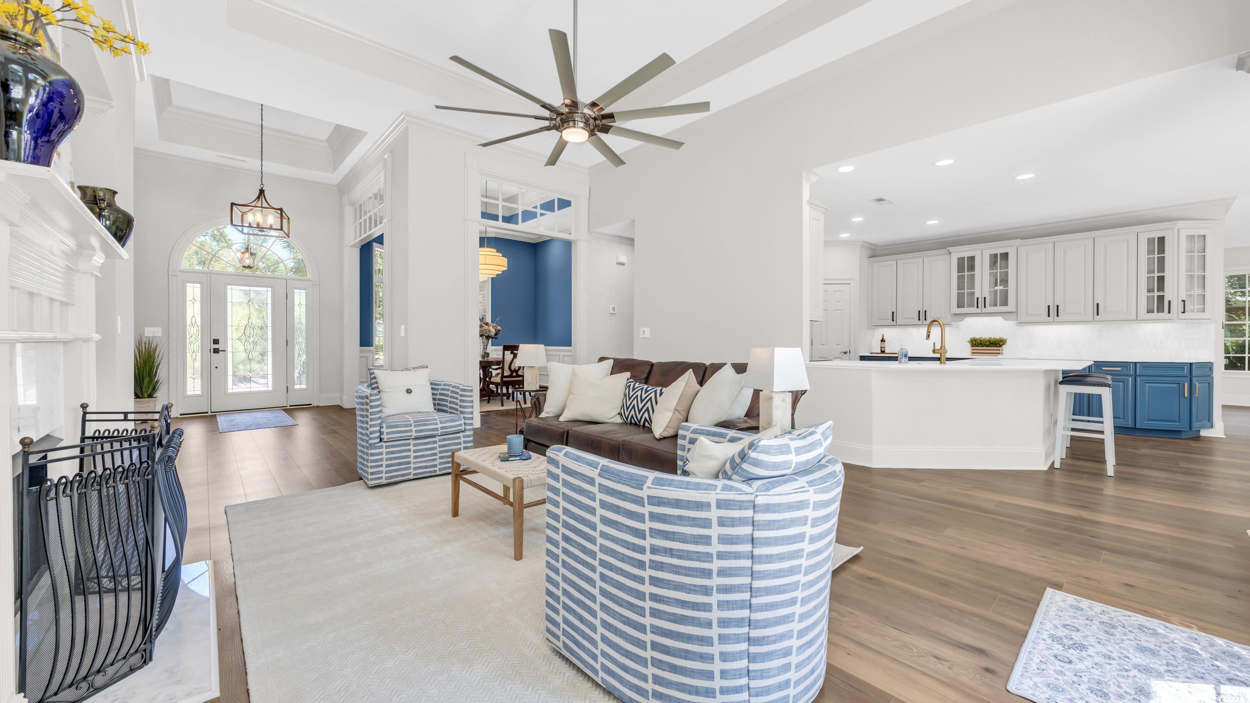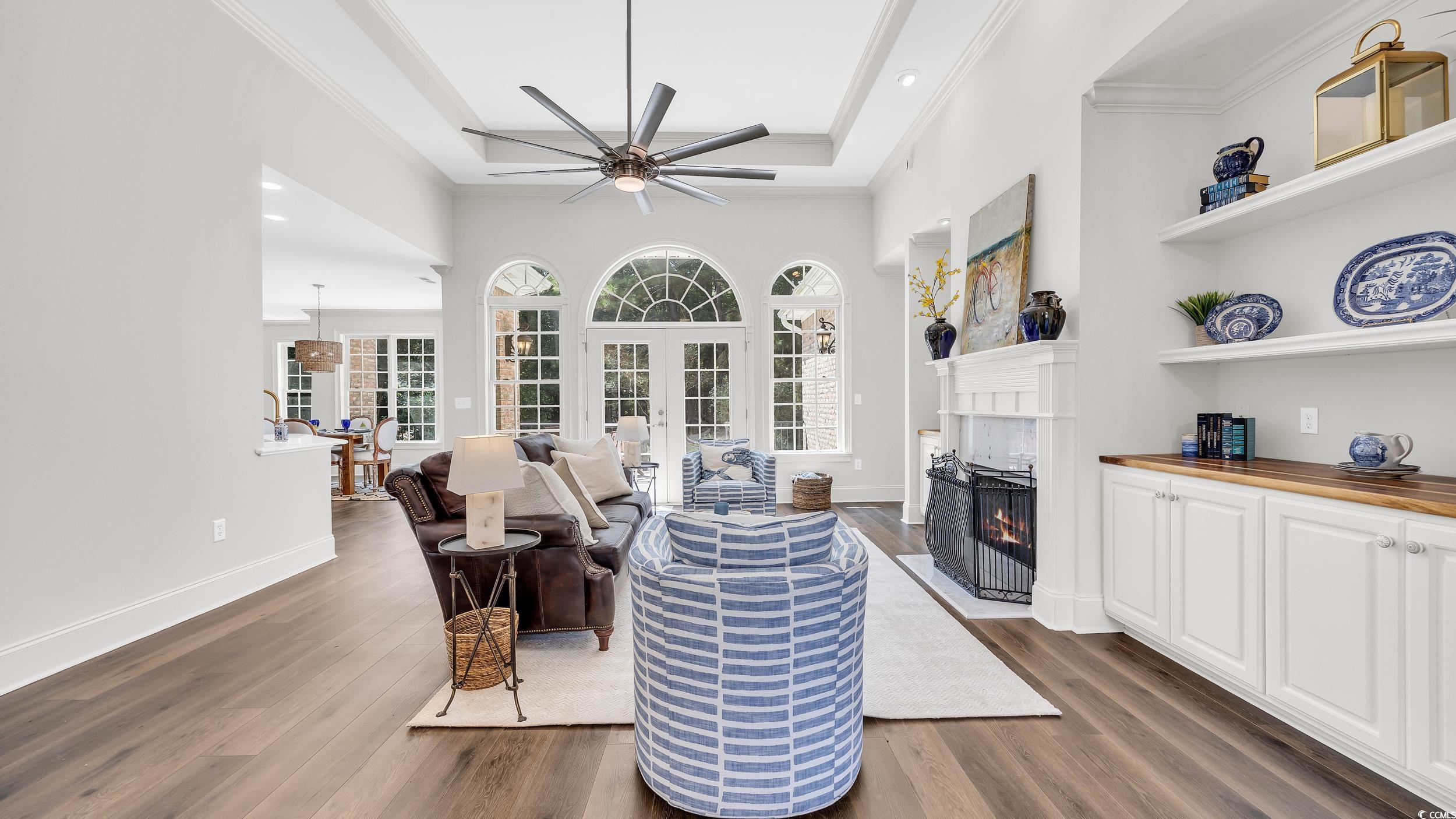 FamilyRoom: TrayCeilings, CeilingFans, Fireplace