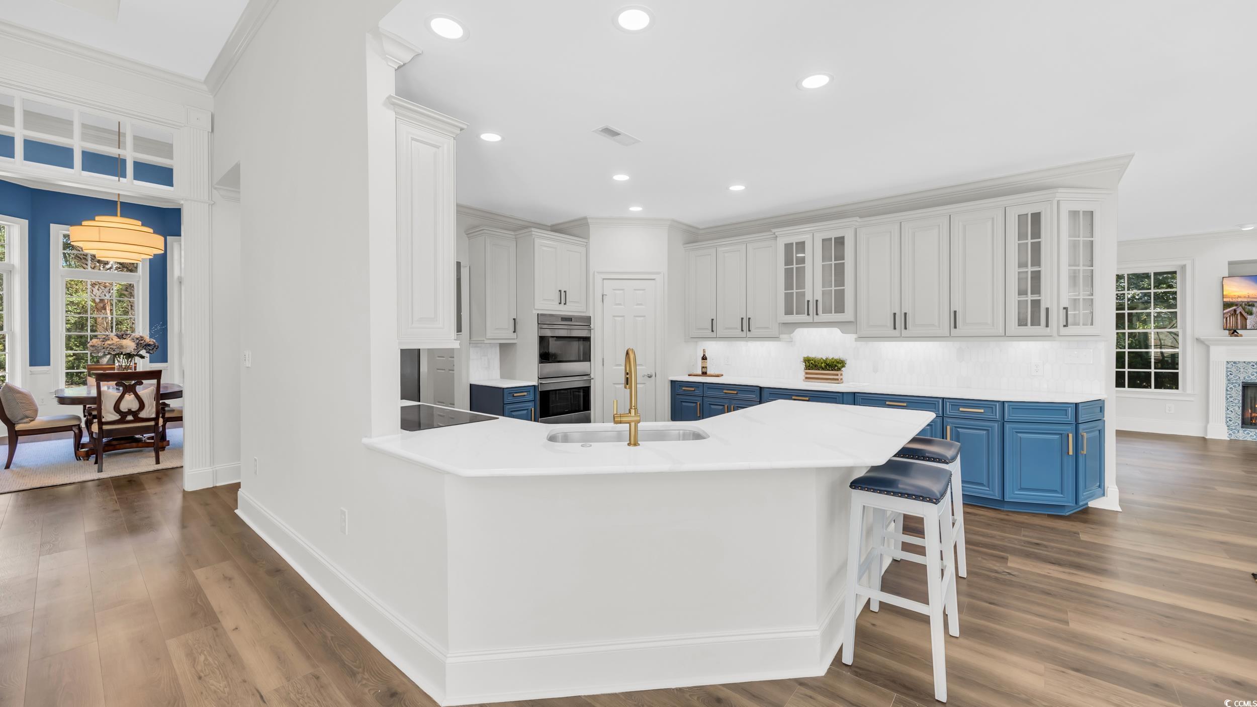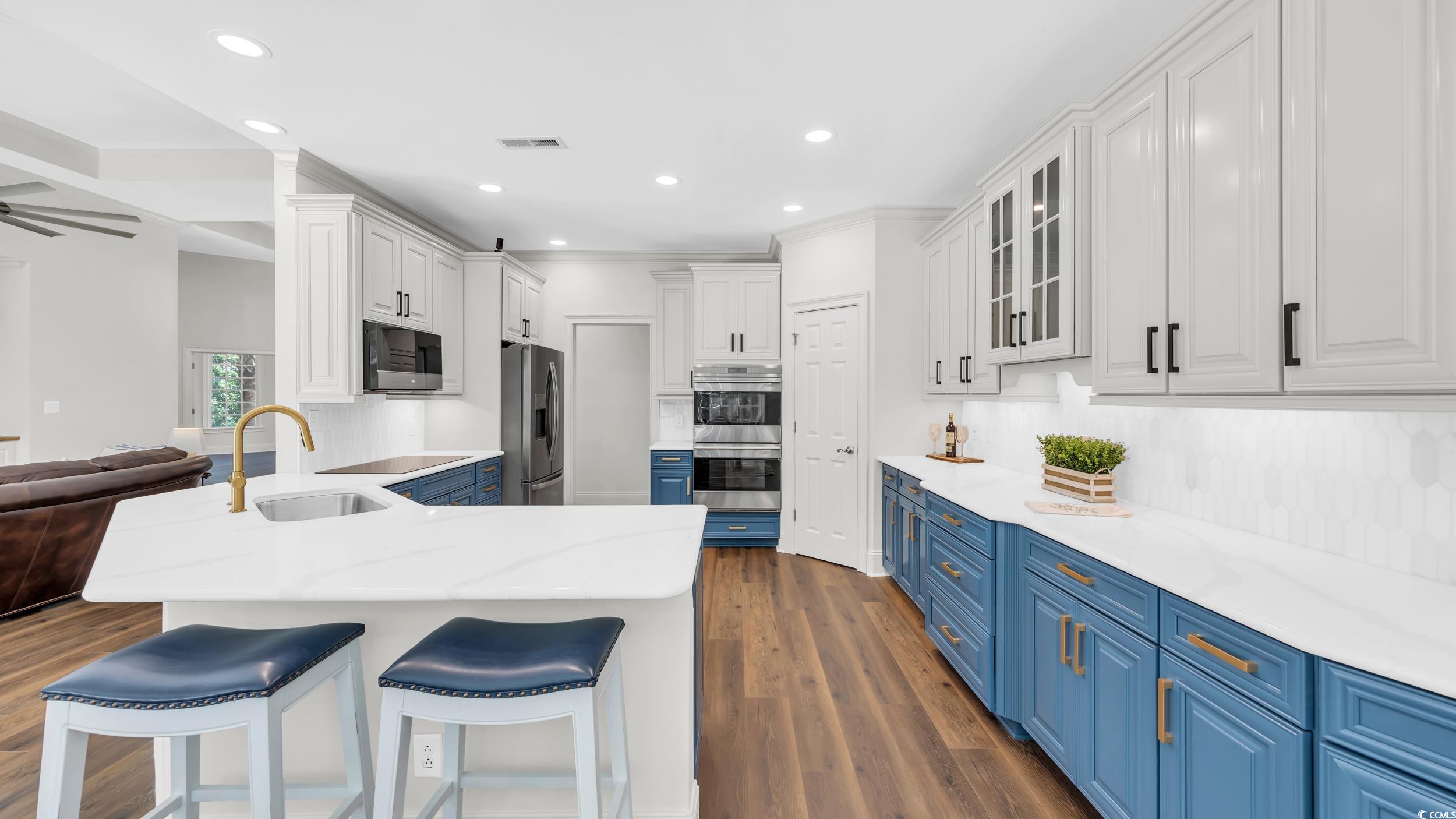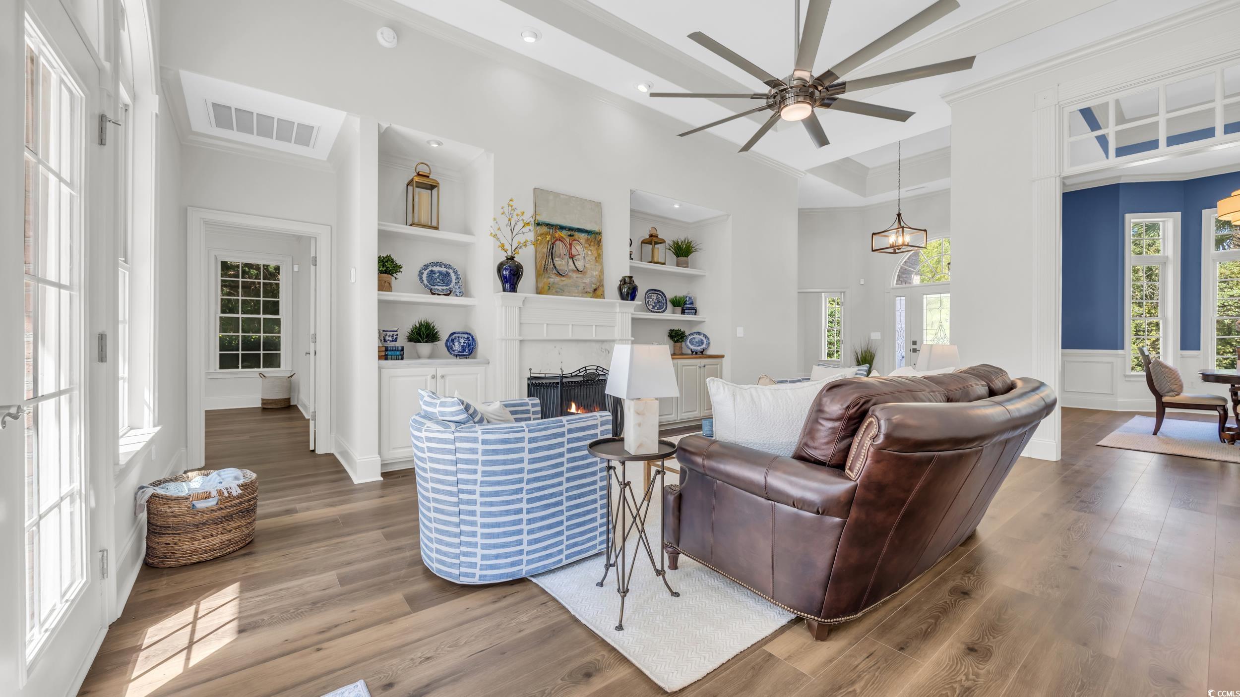 Experience Lowcountry living at its finest in The Reserve Pawleys Islands premier gated, riverfront golf course community. Privately positioned at the end of a quiet cul-de-sac on an expansive 1.08-acre homesite, this all-brick 5-bedroom, 4.5-bath residence lives like a true estate, blending timeless craftsmanship with modern comforts. Classic architectural details high ceilings, transoms, bay windows, custom lighting and built-ins are paired with thoughtful updates including two new HVAC systems, luxury vinyl plank flooring, fresh paint and high-end stainless appliances. The main level offers impressive everyday livability and elegant entertaining space beginning with a gracious foyer flanked by a formal dining room and a private study/office featuring custom built-ins and desk. Both a formal living room and a separate family room, each with its own fireplace, provide multiple gathering areas and anchor the gourmet eat-in kitchen, equipped with Wolf double wall ovens, GE Caf convection microwave, GE Caf two-drawer dishwasher. The spacious primary suite is tucked privately on the main level and features tray ceilings, dual closets, direct access to the rear patio, and a newly renovated spa-style bath with custom tile walk-in shower, garden tub and separate his-and-hers vanities. Two additional bedrooms with a shared full bath are also located on the first floor, while two ensuite bedrooms upstairs make ideal accommodations for guests A two-car attached garage & fenced yard complete the home. In addition to onsite, private amenities including The Reserve Golf Club and Yacht Club with marina, pool & dining offering quick boat access to the Intracoastal Waterway/Waccamaw River residents enjoy private beach access through Litchfield by the Sea to an oceanfront clubhouse, gated parking, pristine sandy beaches, tennis courts, fishing docks, walking/biking trails, expansive sundecks, restrooms, and outdoor showers. Convenient to restaurants, shopping, medical facilities, and an easy commute to Myrtle Beach or Charleston yet tucked away in a world of its own this remarkable home offers the perfect blend of privacy, prestige and relaxed coastal elegance.