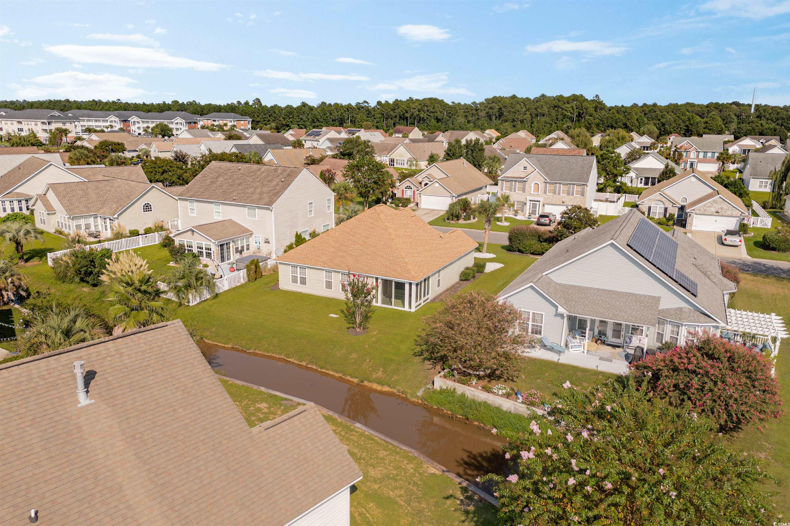 Come see this charming home for yourself! Home offers many upgrades such as fresh paint, new flooring, brand new LG high end Refrigerator, granite counters, brand new Westshore Shower with teak seat, two new toilets. Recently enclosed screened-in porch with glass sliders and epoxied floor. New Roof (2018), HVAC system (2019), hot water tank (2024), and a new dishwasher and garbage disposal (2025). Low HOA fee, and a pond view with lots of natural light! Move in ready. Freshly landscaped and well cared for. Close to Market Common, shopping centers, and less than 5 miles to the beach. All in the sought after Cascades subdivision! Pool membership is optional for a fee. Measurements are approximate and to be verified by buyer.