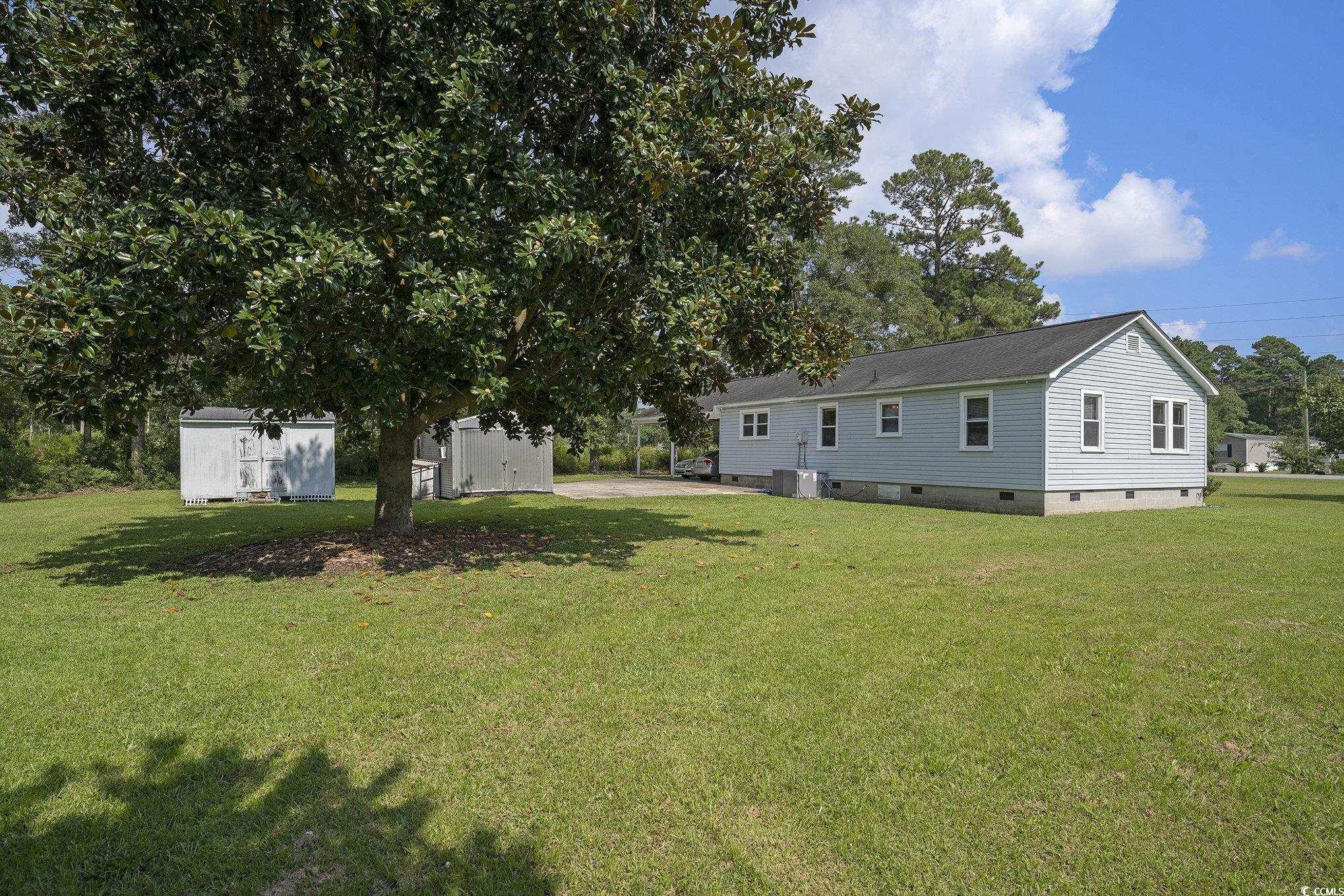 No HOA! Discover the perfect blend of comfort and country living on this generous corner lot with mature landscaping and expansive green space. This charming ranch-style home offers hardwoods throughout, three spacious bedrooms and two full bathrooms, designed for easy, single-level living. The oversized 24x24 carport provides excellent covered parking or can be easily converted into a two-car garage to suit your needs. Enjoy the outdoors on the impressive 38x26 cement patio, perfect for gatherings, barbecues, or simply relaxing. Additional highlights include two detached utility sheds, providing ample storage and workspace options. Theres plenty of room for RV and boat storage, plus space to create your own vegetable garden or outdoor retreat. Located in a peaceful rural setting, yet just a short drive from shopping, schools, and local amenities, this property is an ideal choice for those seeking extra space and privacy. Priced to sellschedule a showing today and imagine the possibilities!