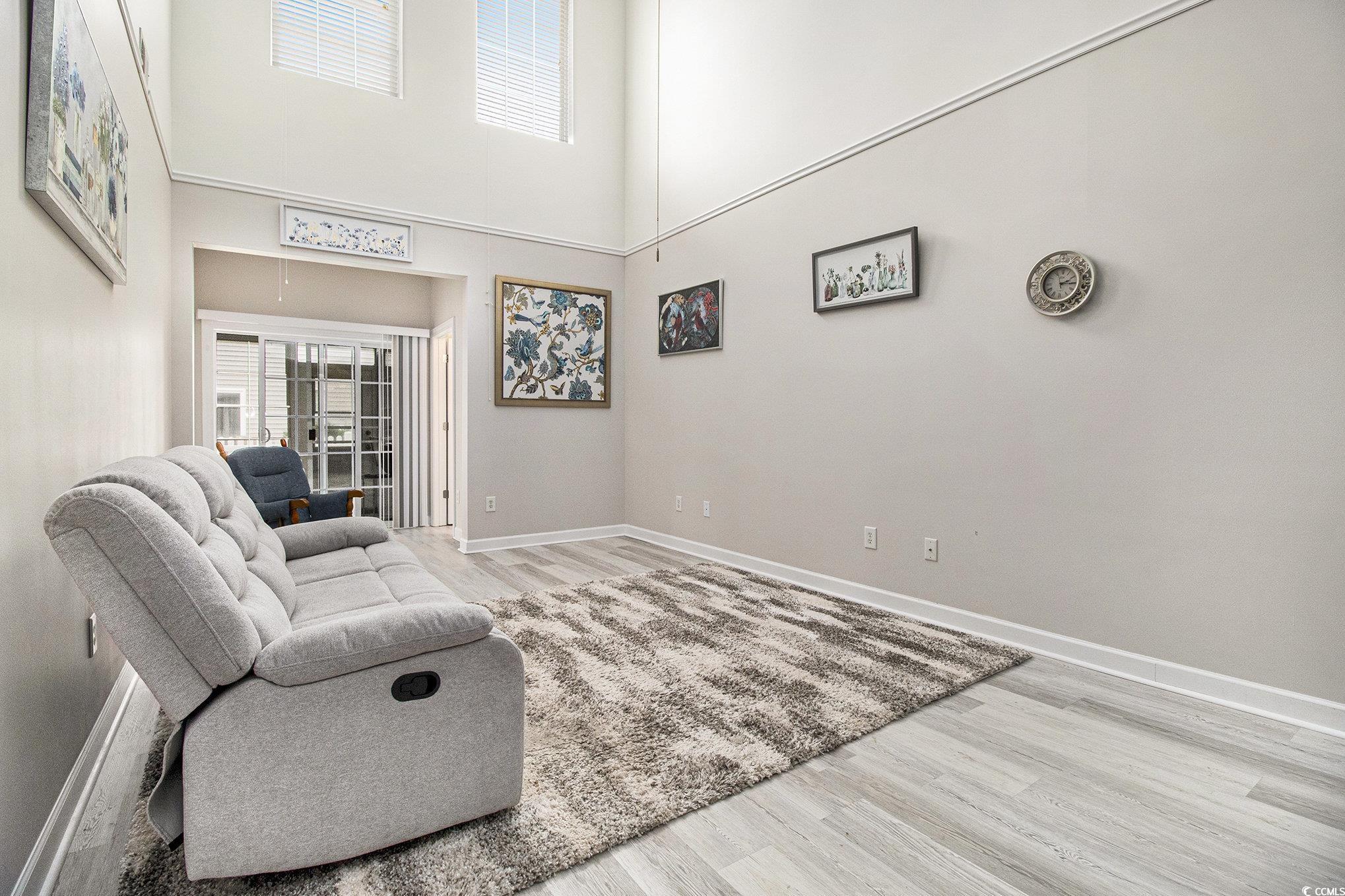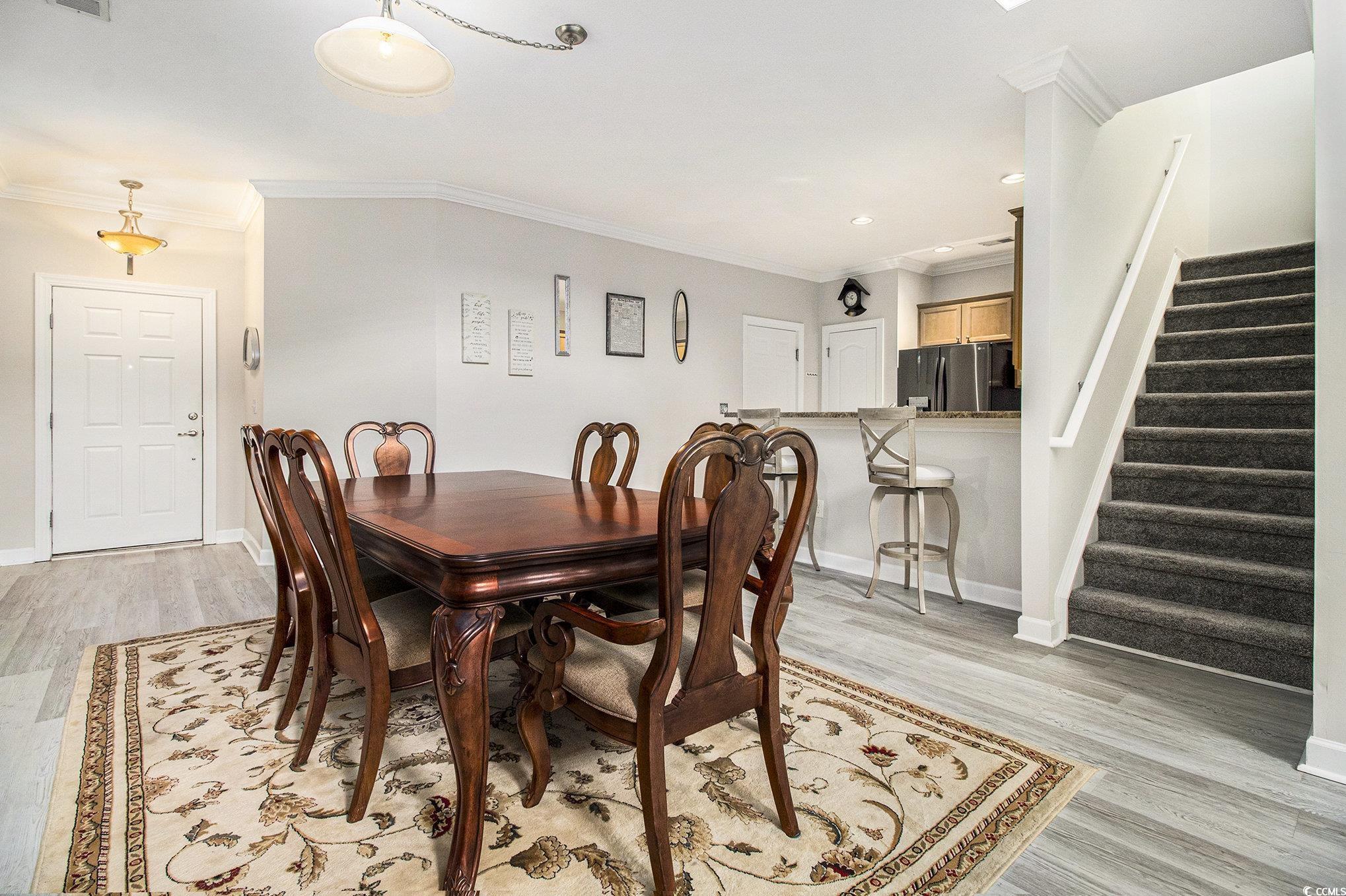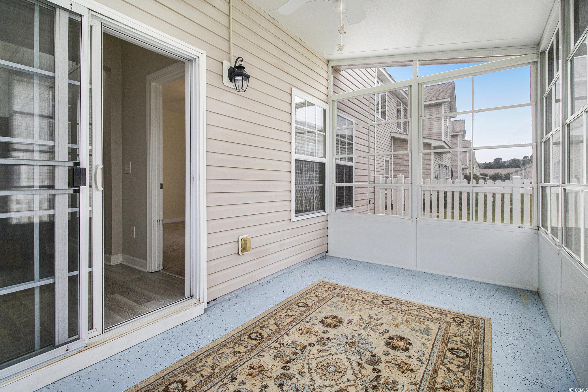 Situated in the sought-after Fairways at Wild Wing, this end-unit townhome offers 3 bedrooms, 2.5 bathrooms, and a 2-car garage, all bordering a spacious green common area. The inviting open floor plan highlights two-story ceilings in the living space, smooth ceilings, crown molding, and plenty of natural light streaming through oversized windows. The main floor hosts the kitchen, living room, dining space, 1/2 bath and the primary suite with a generous walk-in closet while upstairs youll find two additional bedrooms, a full bath, laundry, and a versatile loft. A rare feature of this home is the screened porch with an EZ Breeze system, ideal for relaxing year-round. Recent upgrades include a brand-new HVAC installed in August 2025 with a transferable warranty for the new owners peace of mind. Please ask the listing agent for more details as the warranty period is longer if the new buyer closes within 3 months of HVAC installation! Just minutes from Coastal Carolina University, Horry Georgetown Technical College, Conway Medical Center, plus endless shopping, dining, and entertainment, this townhome combines comfort, low-maintenance living, and a prime location.