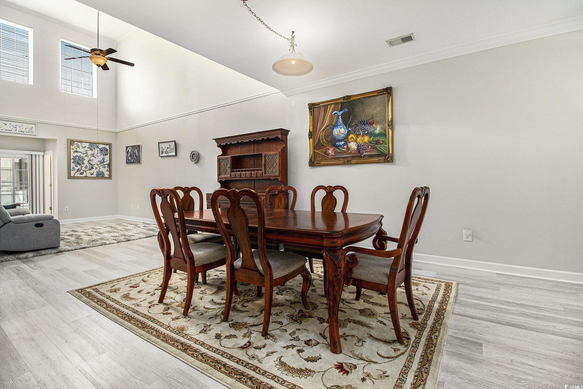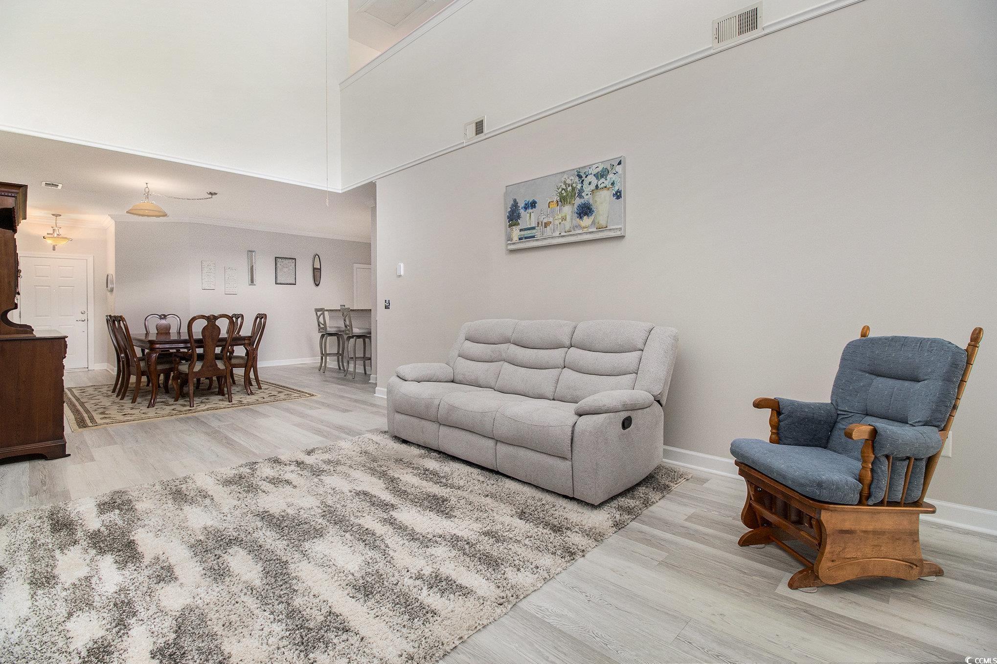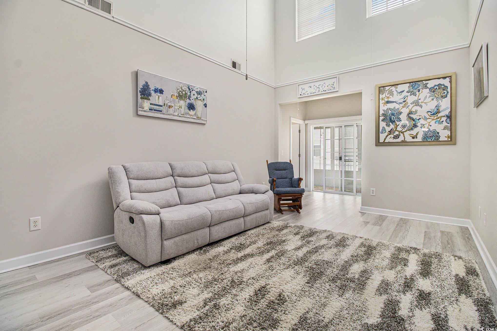 Situated in the sought-after Fairways at Wild Wing, this end-unit townhome offers 3 bedrooms, 2.5 bathrooms, and a 2-car garage, all bordering a spacious green common area. The inviting open floor plan highlights two-story ceilings in the living space, smooth ceilings, crown molding, and plenty of natural light streaming through oversized windows. The main floor hosts the kitchen, living room, dining space, 1/2 bath and the primary suite with a generous walk-in closet while upstairs youll find two additional bedrooms, a full bath, laundry, and a versatile loft. A rare feature of this home is the screened porch with an EZ Breeze system, ideal for relaxing year-round. Recent upgrades include a brand-new HVAC installed in August 2025 with a transferable warranty for the new owners peace of mind. Please ask the listing agent for more details as the warranty period is longer if the new buyer closes within 3 months of HVAC installation! Just minutes from Coastal Carolina University, Horry Georgetown Technical College, Conway Medical Center, plus endless shopping, dining, and entertainment, this townhome combines comfort, low-maintenance living, and a prime location.