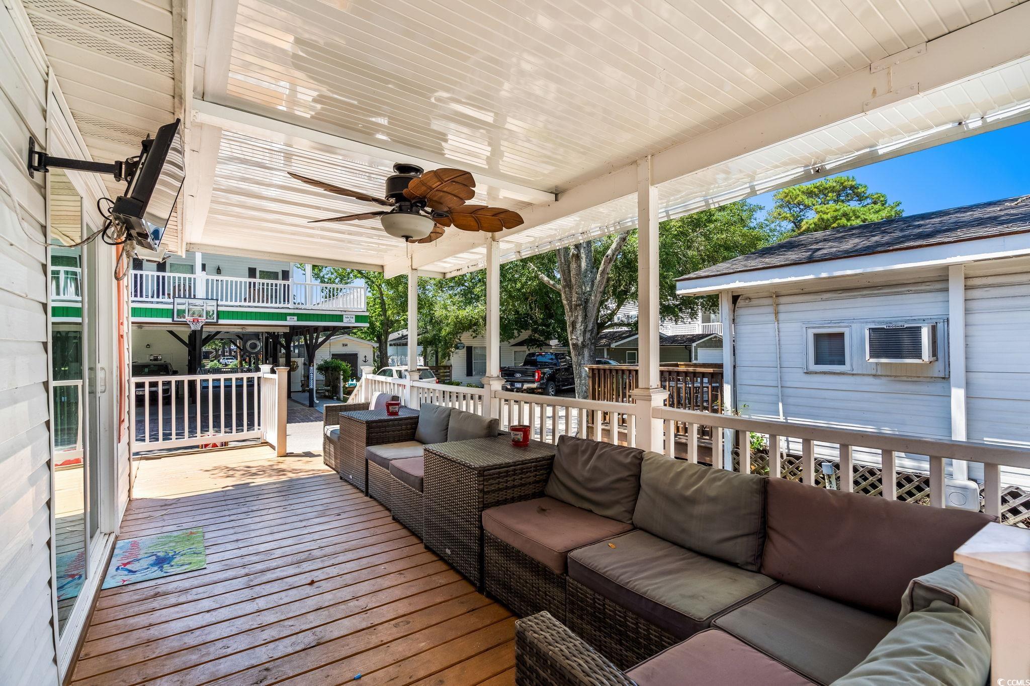 Welcome to Z-50, this 3-bedroom 2 bath addition to camper is located in the desirable ""Z"" section of Ocean Lakes. Z-50 is near the waterpark, nature center, dog park, lake, Sandy Mart, and Meet-n-Eat. New roof in 2024 and new HVAC in 2024. Enjoy catching some rays on the front porch or relaxing in the shade on the side covered porch with ceiling fan. Inside the house you enter into a large living room with leather furniture, shiplap accent wall, open concept dining area and kitchen with tile backsplash. Through the kitchen is bedroom #1 with twin bed, bathroom #1 (full bath) separating twin bedroom and bedroom #2 with queen bed. Bedroom #3 is at the end of the hall past the living room with king size bed. Full bath #2 has tile walk-in shower, shiplap walls, new vanity, and toilet. Home has LVP flooring throughout and is being sold fully furnished. Side covered porch has a sliding glass door to the living room, nice outdoor furniture, ceiling fan, private entry door to bedroom #3, and enclosed outdoor shower. Large shed is located at the end of the driveway. Plenty of parking. Roof - 2023 HVAC - 2024, New deck in 2023, Shed new metal roof in 2022, hot water heater - 2024, new refrigerator and stove - 2024