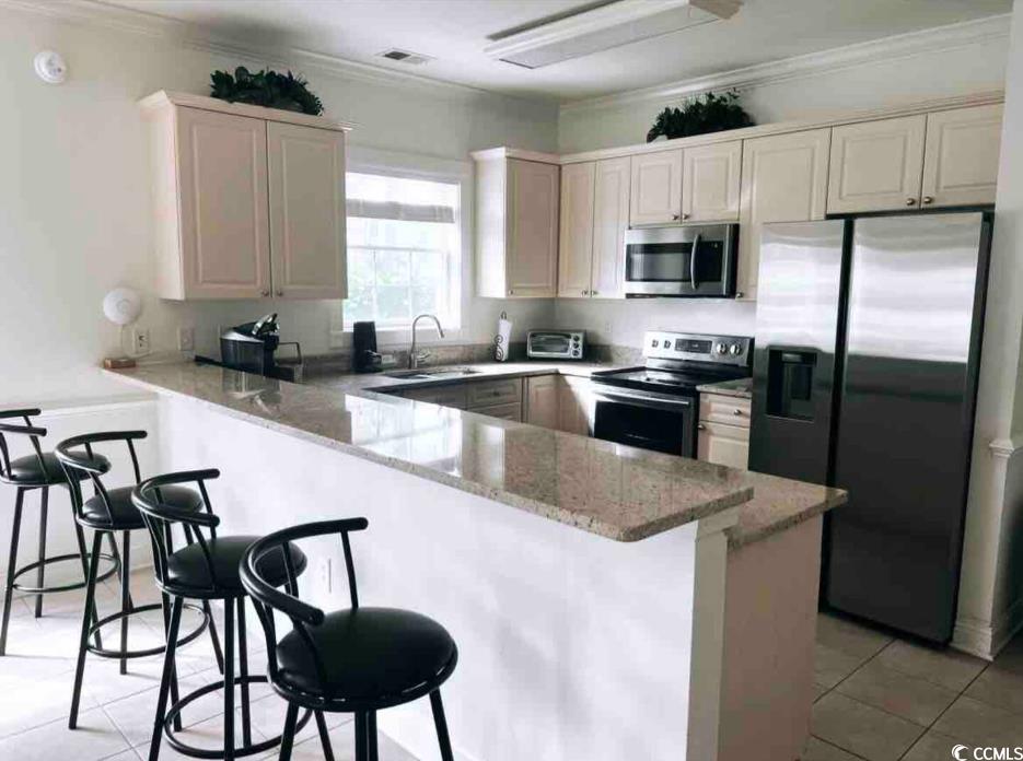 This condo is a perfect, turnkey Airbnb investment or a second home owned by a local realtor. The kitchen and bathrooms feature modern granite countertops and the kitchen has stainless steel appliances. The flooring is a combination of luxury vinyl plank in the bedrooms and ceramic tile in the high-traffic areas. Just outside the living room, you can step out onto a patio with a peaceful pond view, a beautiful sight also visible from the primary suite on the ground floor. The location is ideal, less than five minutes from the beach and under ten minutes from Broadway at the Beach. The condo includes Keyless entry, nest thermostat, and ring cameras. You'll also be right next to the Myrtle Wood Golf Course community.