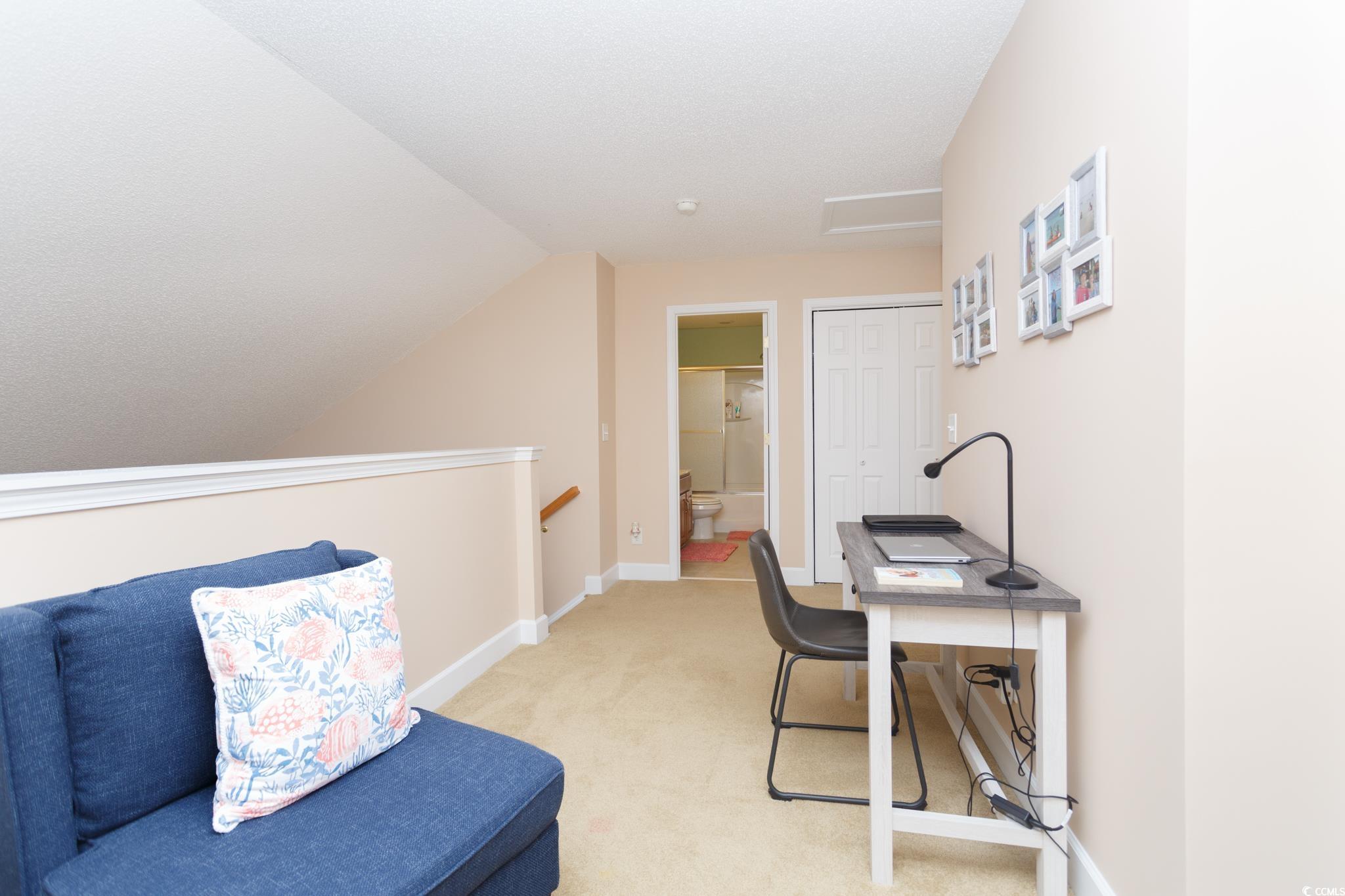 Partially furnished 3 bedroom, 3.5 bath townhouse style condo in the well sought after community of Cold Stream Cove. New HVAC in 2025 and roof in 2023. A spacious open floor plan on the main living area, vaulted ceilings throughout. Kitchen has all appliances, a pantry, a breakfast bar and a desk area perfect for paying bills or working from home. Large first floor master suite equipped with a ceiling fan, walk-in closet. Private master bath with a double sink vanity, a walk-in shower with a glass door. Two additional bedrooms upstairs with plenty of space, ceiling fan, nice closet space and easy access to its own bathroom. The loft area at the top of the stairs can be used as a home office, playroom, television room, reading room, etc. A half bath just off the main living area. Screened porch, back patio perfect for grilling and entertaining. Amenities include an outdoor pool and picnic area. Great location near shopping, restaurants, golf, the Murrells Inlet Marsh Walk, beaches, and much more. This is a perfect opportunity to purchase a primary residence or a vacation getaway. Also great rental potential. See today!!