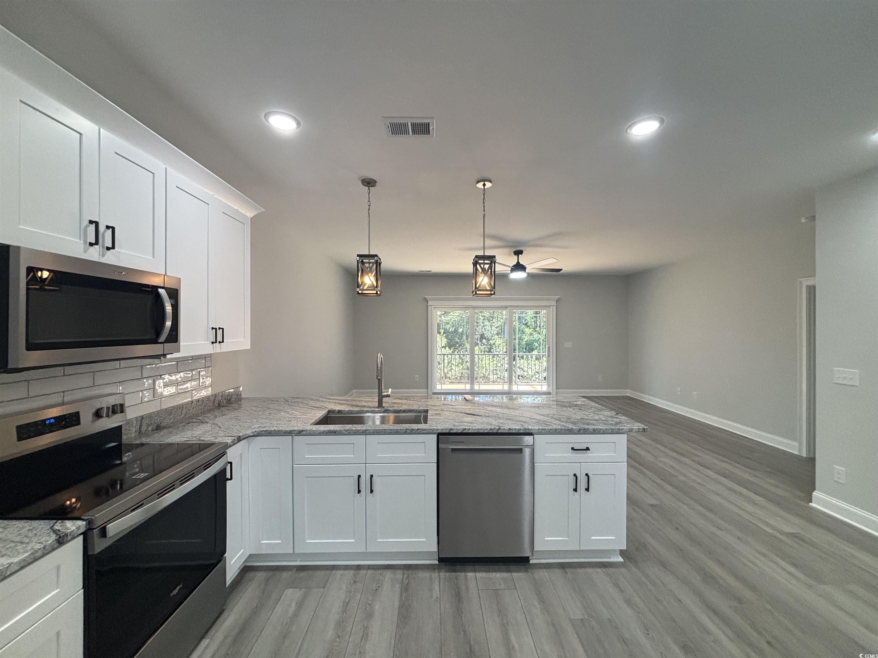 Welcome to Black Water Cove - A Riverfront Community in Conway, South Carolina! Discover the perfect combination of natural beauty and modern comfort in this serene neighborhood. Take a stroll to the community boat dock, relax under the riverside pergola, and enjoy the peaceful setting that makes Black Water Cove so special. Also approx 1 mile to the Shaftesbury Glen Golf & Fish Club. This 3-bedroom, 2-bath raised river home features stainless steel appliances and granite countertops in a stylish kitchen, spacious living areas with luxury vinyl plank flooring, soaring 9-foot ceilings, zoned lawn irrigation, and high-end finishes throughout. Located just a short drive from Myrtle Beach and North Myrtle Beach, youll have quick access to shopping, dining, and entertainment. Restaurant Row in Myrtle Beach is only about 20 minutes away, and Historic Downtown Conway with its scenic Riverwalk and local dining is just 15 minutes from your doorstep. To learn more about this community or explore additional floor plans, contact an agent today!