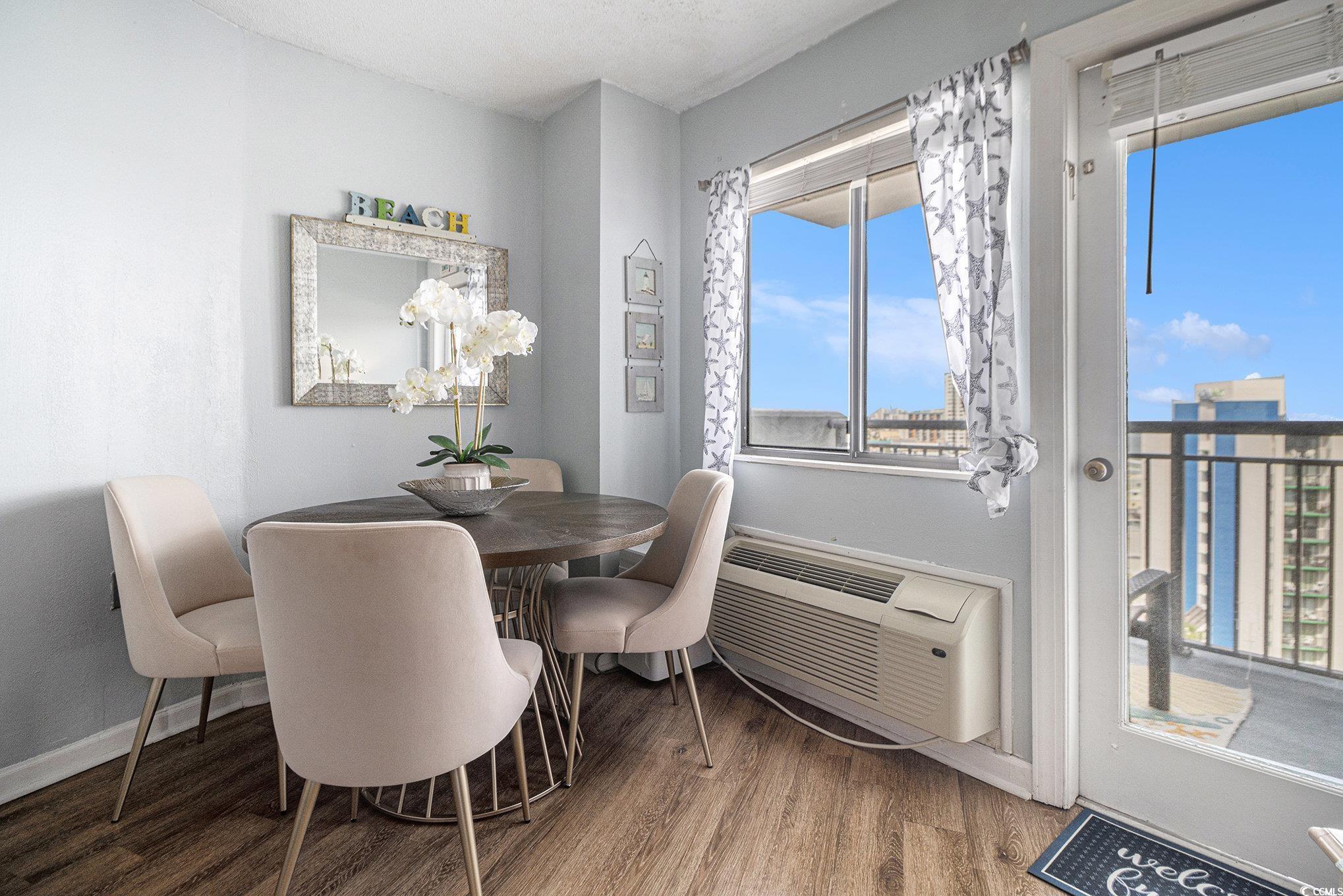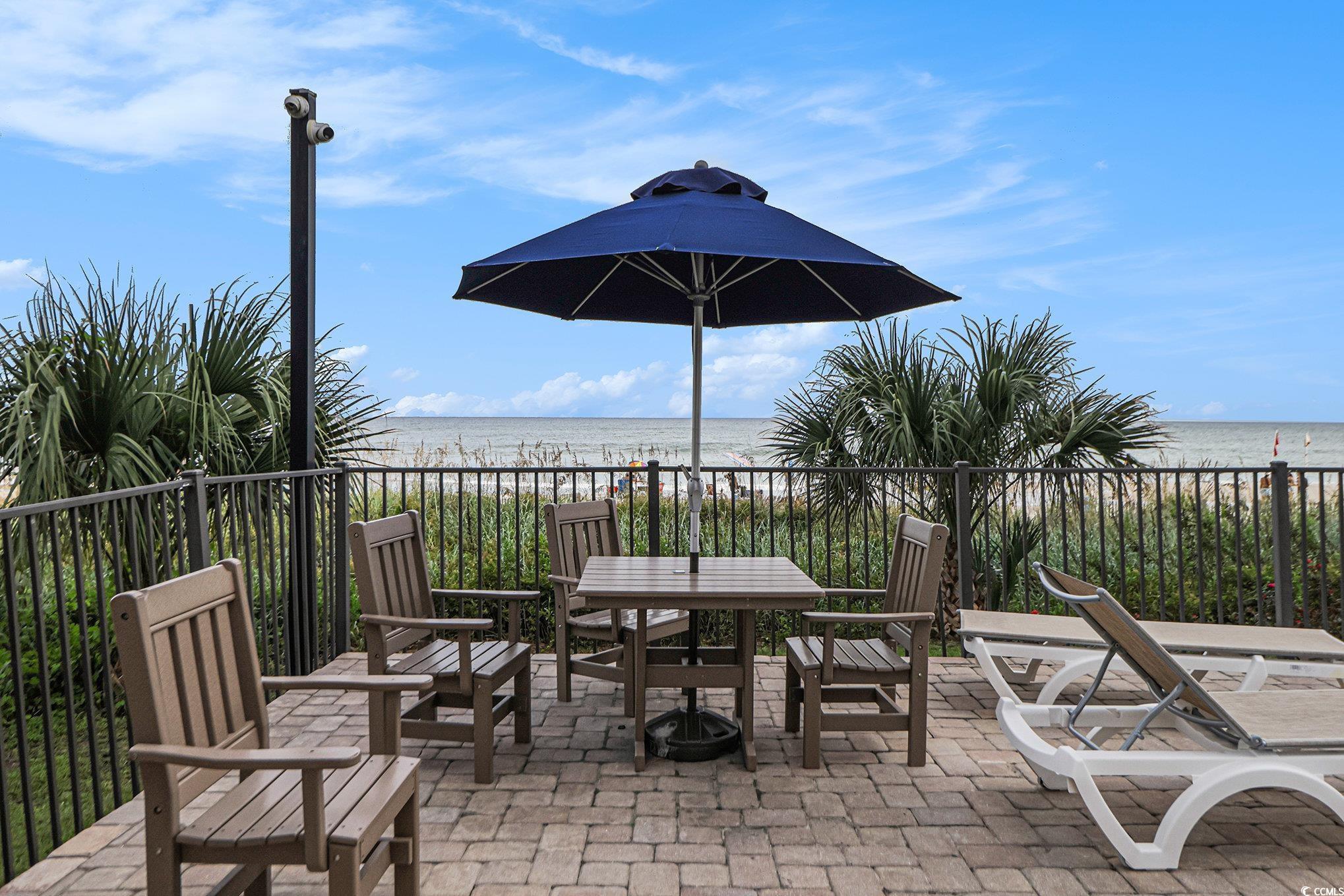 Welcome to your dream vacation getaway! The ocean views are spectacular from this 1 bed 1 bath condo located at the popular Bluewater Resort! Tastefully furnished and decorated with delightful coastal accents throughout, this end unit has been updated with a new dining set in 2025, new refrigerator in 2024 and new bed mattress and AC unit in the bedroom in 2023. Wonderful floor plan includes a nice sized living room with direct access to the balcony, dining area with seating for four that overlooks the ocean, and a well-equipped kitchen with refrigerator, range/oven and ample cabinet and storage space. The bedroom sleeps four and the full bath has a vanity and tub/shower. Your private extended balcony is the ideal spot to enjoy your morning coffee or just relax with cocktails at the end of the day and savor the ocean breezes and those fabulous views. HOA dues cover building insurance, electric in the unit, water/sewer, cable, internet, trash removal, pest control and all amenities. Bluewater Resort offers so many great amenities including 24/7 on site security, indoor and outdoor pools, hot tubs, a lazy river, sauna, a full gym, an onsite restaurant and seasonal Tiki Bar plus there are multiple laundry rooms onsite as well. Situated in the heart of Myrtle Beach and close to Broadway at The Beach with so many entertainment and amusement options, the Boardwalk and SkyWheel, Market Common with upscale shopping and fine dining and just minutes from the airport. Whether you are searching for the perfect beach retreat or an investment property, this is a wonderful opportunity! Don't miss it! Schedule your showing today!