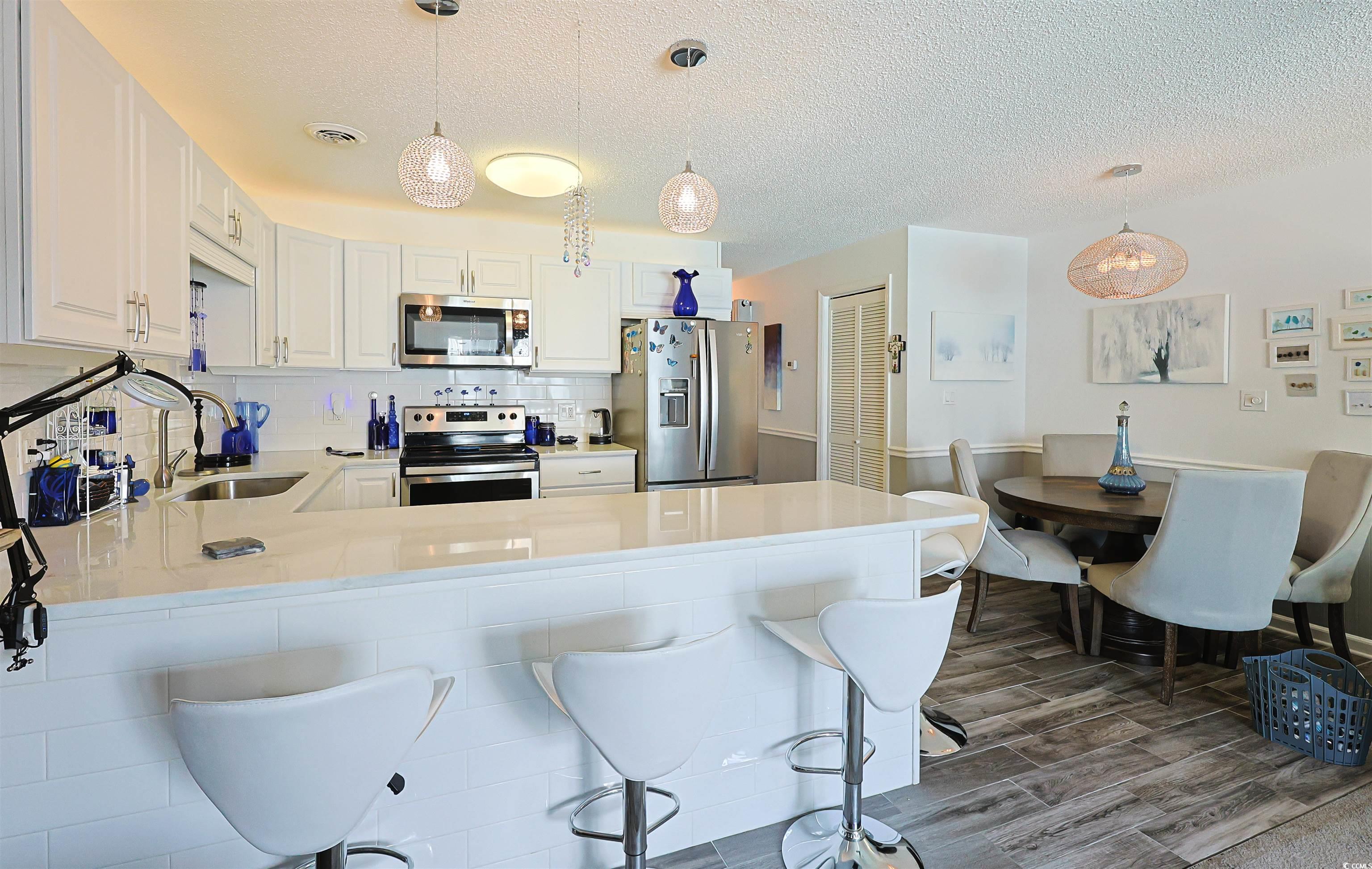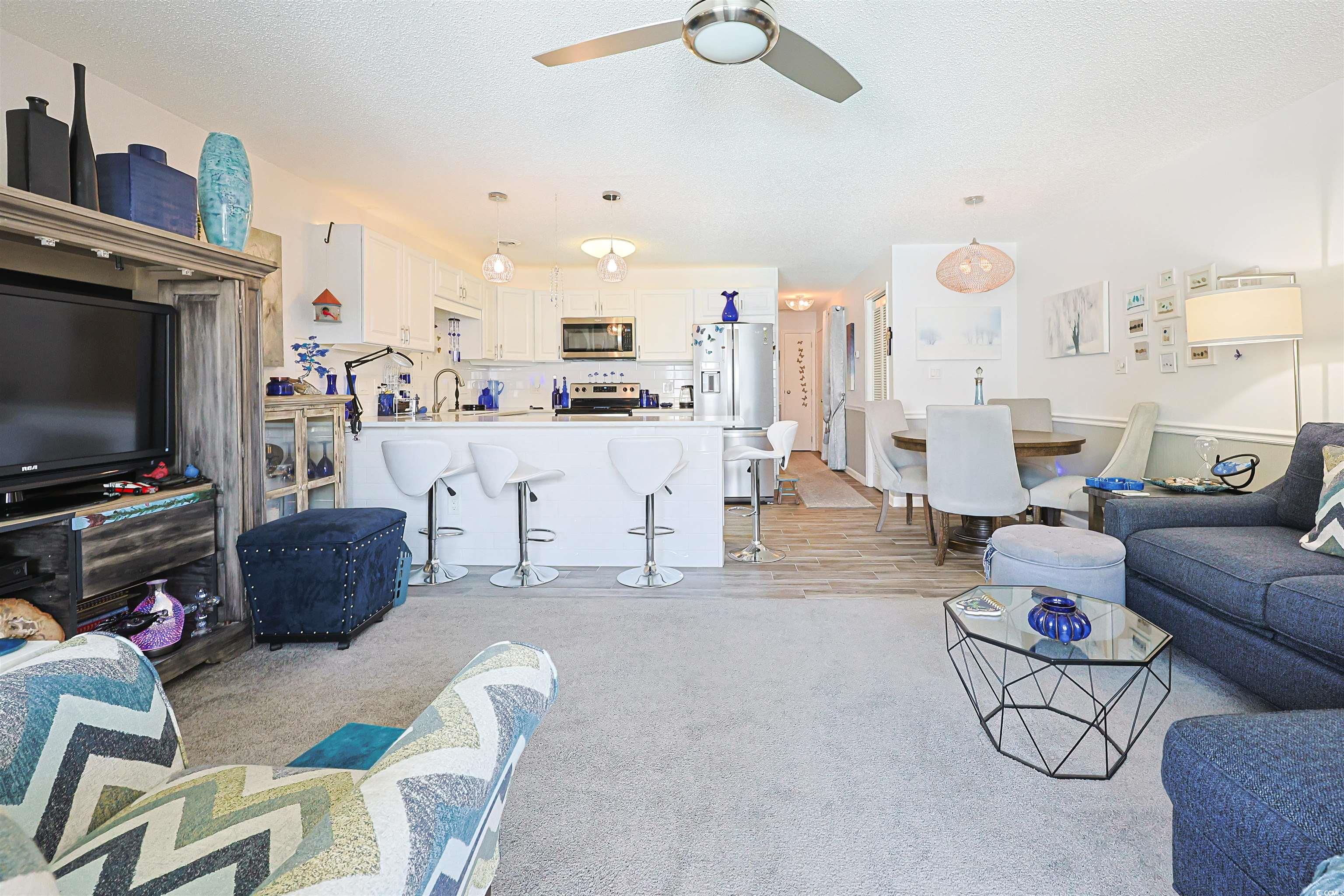Welcome to 3700 Golf Colony Lane Unit 21Q - a bright and spacious 1 bedroom, 1 and 1/2 bathroom condo featuring a HUGE bedroom with soaring vaulted ceiling and en-Suite bathroom as well as a spacious closet. This Tastefully updated and meticulously maintained unit is a showcase. Starting with the wood look tile flooring as you enter flowing into an amazing completely renovated Kitchen that has been widened to accommodate a chef's style kitchen prep area Boasting Quartzite countertops and a tiled backsplash. The kitchen also has been upgraded with beautiful new cabinets with anti slam and soft close functions, as well as indirect lighting above and under cabinet lighting below to create an amazing ambiance. Newly upgraded stainless steel appliances, new light fixtures, and a tile backed breakfast bar seating area finish out the heart of this welcoming home, making it a joy to entertain. The living and dining areas features plenty of natural light and flow seamlessly to your private balcony, where you can relax while enjoying views of the sparkling outdoor pool. Don't wait any longer to enjoy resort-style amenities, including two pools - one outdoor and one indoor for year-round use - along with hot tubs, grilling areas, and beautifully landscaped grounds. Located just minutes from the Little River water front , Cherry Grove Pier, OD pavilion and Myrtle Beach, youll have quick access to shopping, dining, golf, entertainment, and of course, the sandy shoreline of the Atlantic Ocean. Whether youre looking for a full-time residence, vacation retreat, or investment opportunity, this condo is an excellent choice!