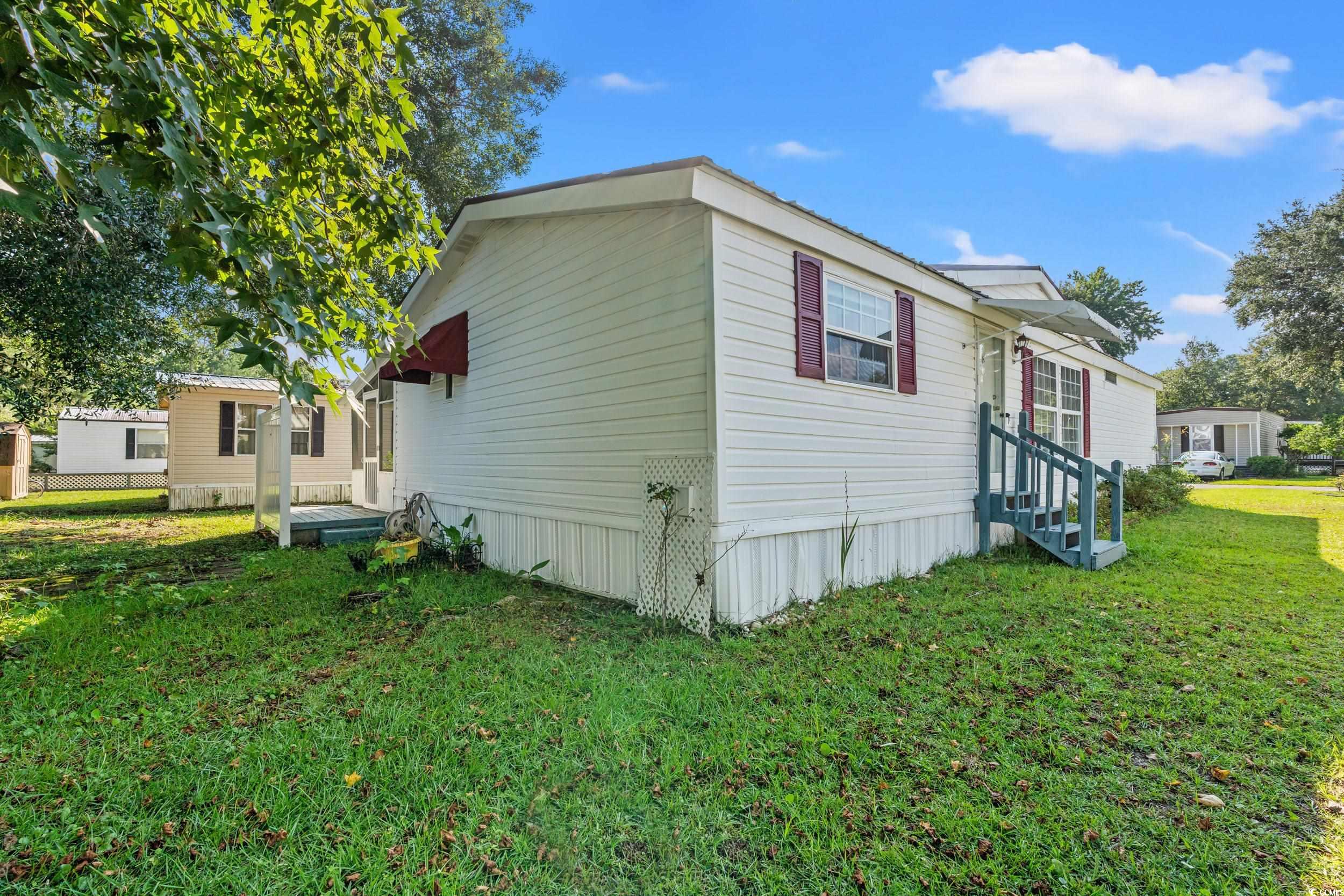 Oceanside Landing is a quaint 55+ community nestled in close to the beach and Murrells Inlet. The community offers a new pool, clubhouse, and many fun activities for the residents who are looking for an active lifestyle. This well kept 3 bed 2 full bath home has had recent upgrades to the primary shower. Newer windows, and a metal roof make this home a cut above. The dining area and separate laundry area with extra storage provide a great use of space and convenience. The split bedroom plan allows privacy when guests are visiting too. One bedroom is currently in use as office space which can be easily changed back into the third bedroom. Once outside you can enjoy yourself on the shady screened in porch or on the back shaded patio in the yard grilling. There is also a 10 x 20 foot workshop that has lighting and electricity that provides extra storage and a great place to tinker around. This home is conveniently located near the heart of Murrells Inlet, Brookgreen Gardens, Restaurants, Huntington Beach State Park, Waccamaw Hospital, Grocery shopping and so much more. Be sure to apply for approval for the Land Lease required for living in this community of Oceanside Landing.