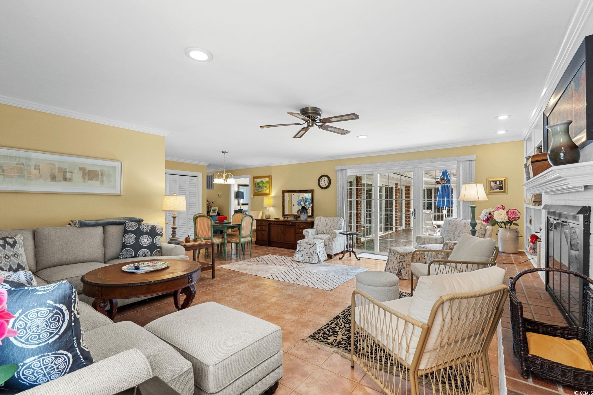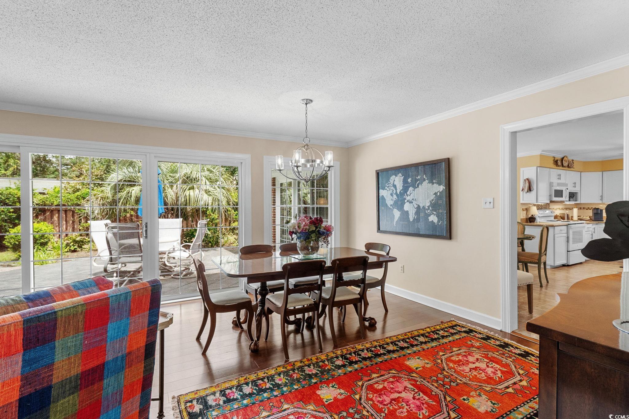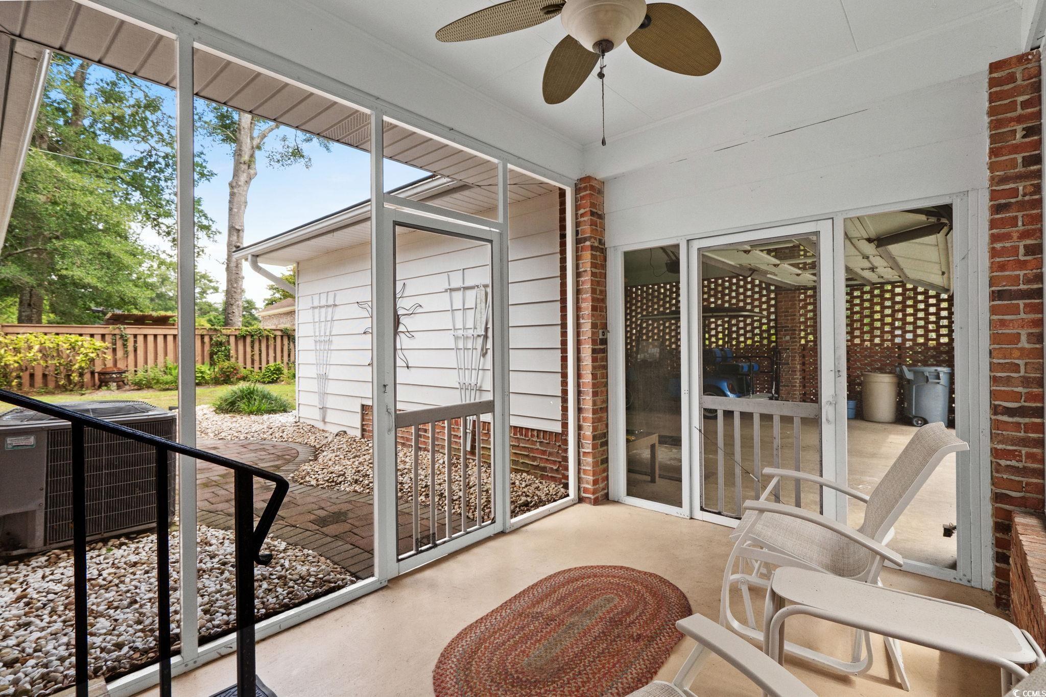 This all-brick single-level home in the coveted Arcadian Shores community offers 4 bedrooms and 3 bathrooms in one of Myrtle Beachs most sought-after coastal neighborhoods. Being sold fully furnished, its truly turn-key and ready for your enjoyment. Inside, youll find a bright open-concept living and dining area with natural light pouring through large windows and glass doors that lead to a private patio. The spacious primary suite features direct patio access, a dressing area, and a private bath. Two additional bedrooms and a full bath are located in the same wing, while a fourth bedroom with its own bath on the opposite side makes the perfect guest suite, home office, or flex space. A cozy den with gas fireplace and built-ins adds warmth, and the kitchen includes a breakfast nook and plenty of cabinetry. Storage is abundant throughout, with multiple closets and smartly planned space. A screened breezeway connects the living areas, creating an inviting retreat for enjoying the ocean breeze while staying protected from insects. Arcadian Shores is known for its quiet charm, mature live oaks, tropical palms, and private lake. The neighborhood offers a peaceful setting with easy access to the ocean, yet is only minutes from shopping, dining, and entertainment.