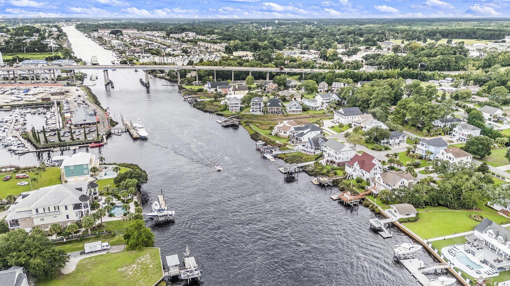 Offering beautiful views of the Intracoastal Waterway, this is a spacious 5-bedroom, 4-bath raised beach home in the desirable Olde Harbour community -- which has no required HOA. A new roof and new HVAC system were installed approximately 2 years ago. Features include a bright living room with cathedral ceilings and skylights, a coastal-style kitchen with granite counters and mosaic backsplash, and hardwood floors in the main living areas. Two large master suites each have private ensuite baths, plus two guest bedrooms on the main level. A separate ground-level suite with private entrance and bath offers flexibility for guests or rental. Outdoor perks include expansive porches (screened and open), an outdoor shower, RV/boat parking with electric hookup, and large attached storage. Olde Harbour is minutes from marinas, public boat ramps, golf, dining, and entertainment. This house would be ideal as a primary home, vacation getaway, or investment property.