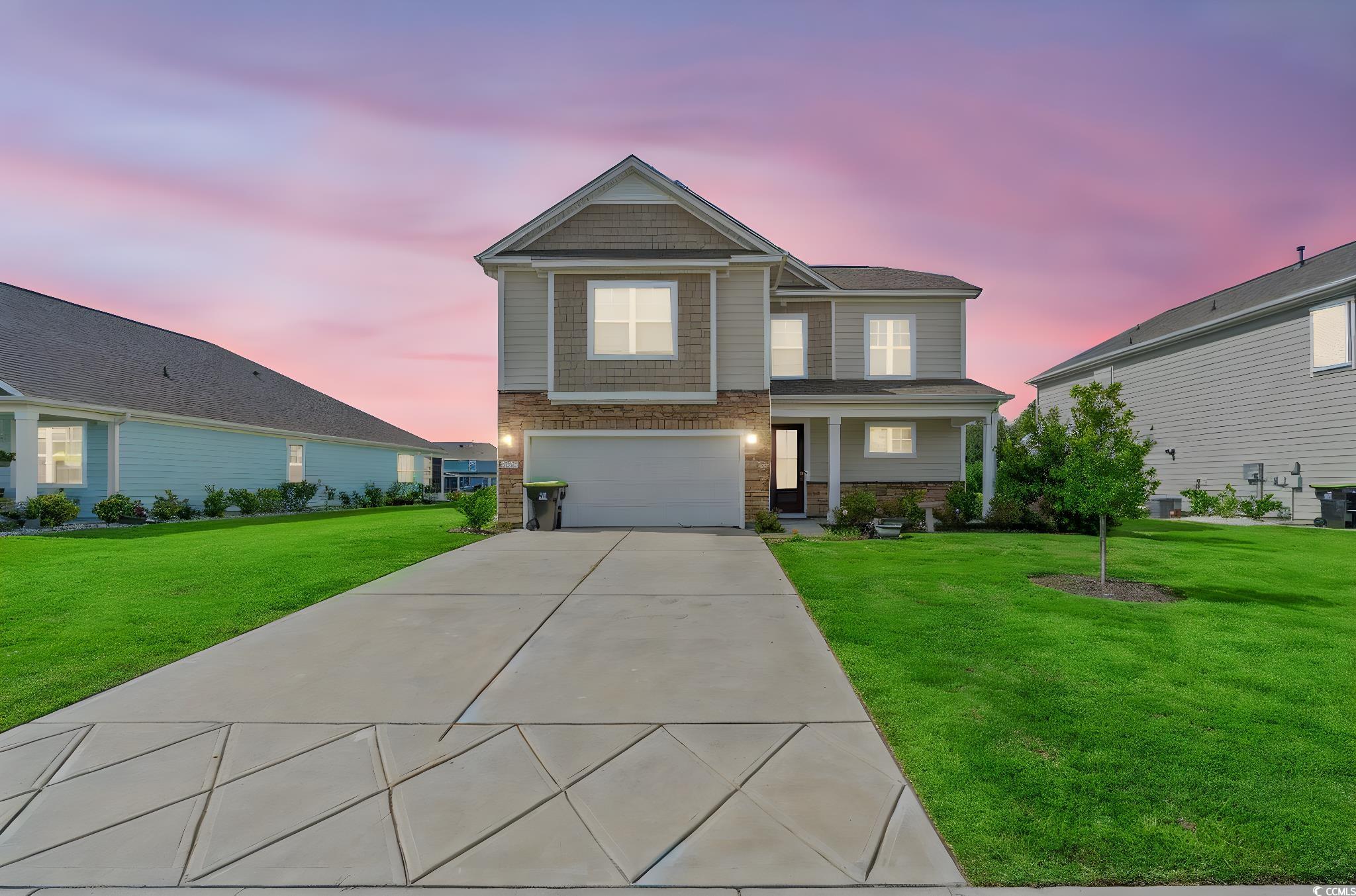 Welcome home to this beautiful open 4 bedroom, 2 1/2 bath home which is located in the very popular Lakes community in Myrtle Beach, South Carolina. Stacked stone elevation, inviting front porch, and 8 ft. entry door with glass. Beautiful wide plank laminate flooring flows through the foyer, kitchen, living room, and dining room with tile in the bathrooms and laundry room. The kitchen has granite countertops, tile backsplash, stainless Whirlpool appliance, walk-in pantry including a gas range with a large breakfast bar and dining nook. The oversized owners' suite is on the first floor with a walk in closet. The ensuite has double sinks and a walk-in tile shower. The other 3 nice size bedrooms and loft are on the second floor and share a full bathroom that has a tub/shower combo. The loft is perfect for another living area or office. Just minutes from the beach, golf courses, the Myrtle Beach Boardwalk, Sky Wheel, dining, entertaining, hospitals, shopping and the Myrtle Beach International Airport. The Lakes is a community that allows you to golf cart to the beach if you wish. Sliding glass doors off the dining area lead to the rear screen porch that overlooks the pond creating a seamless transition from indoor to outdoor living. Schedule your showing today! Square footages are approximate.