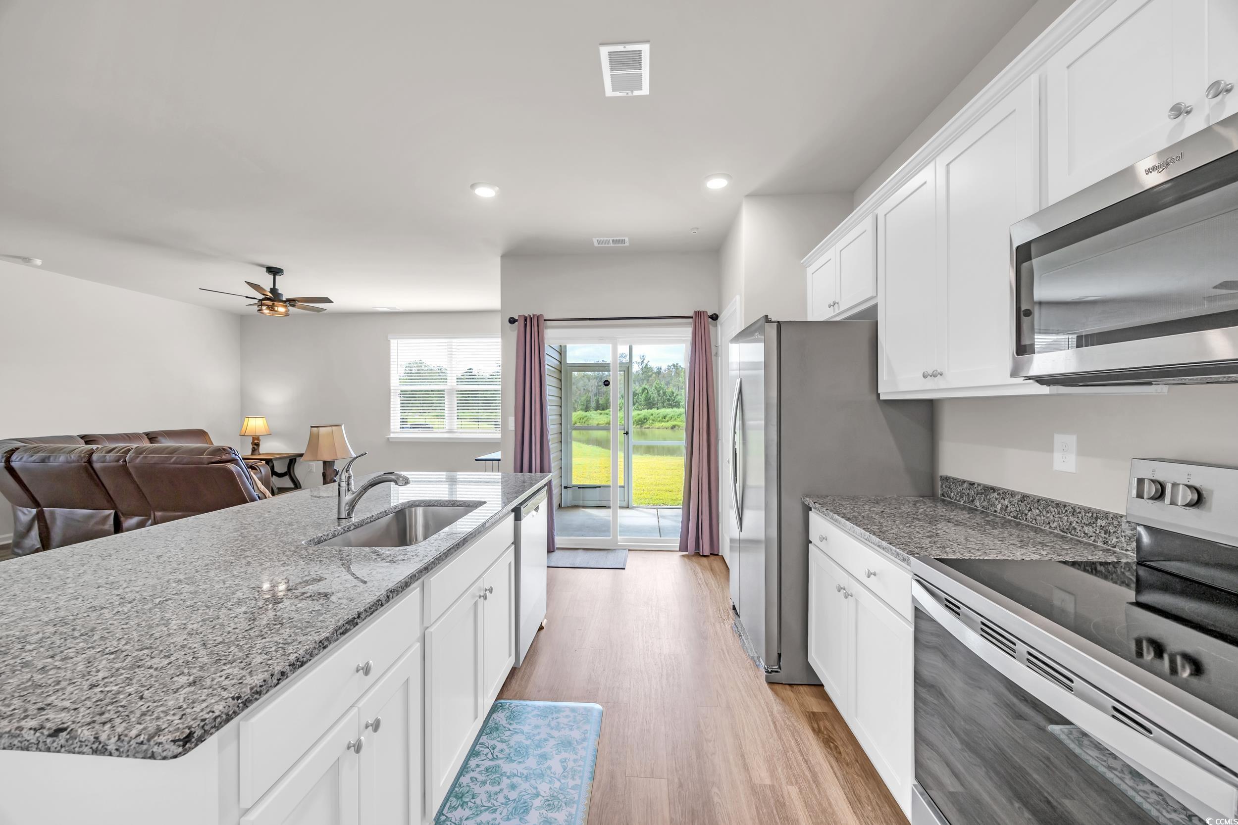 Welcome to your dream home in the highly sought-after Sutton Farms community in Loris! This elegant 3-bedroom, 2-bathroom ranch-style residence is brand new and move-in ready fully furnished for your convenience and comfort. Step inside to discover luxury vinyl plank (LVP) flooring flowing throughout the main living areas and the spacious primary suite, with plush carpet in the additional bedrooms. The modern kitchen boasts granite countertops, stainless steel appliances, and ample cabinetry perfect for cooking and entertaining. Enjoy peaceful mornings on your screened-in porch with serene views of the pond and wooded backdrop, offering both privacy and natures beauty. Sitting on a .2-acre lot, this home also includes gutters, a 2-car garage, and a washer/dryer set already installed. Community perks? The brand-new community pool is currently under development and will be ready soon for summer fun! Best of all take advantage of a 4.99% assumable FHA loan! (Call agent for details.) Don't miss your chance to own this beautiful home in one of Loris most desirable neighborhoods. Schedule your showing today!