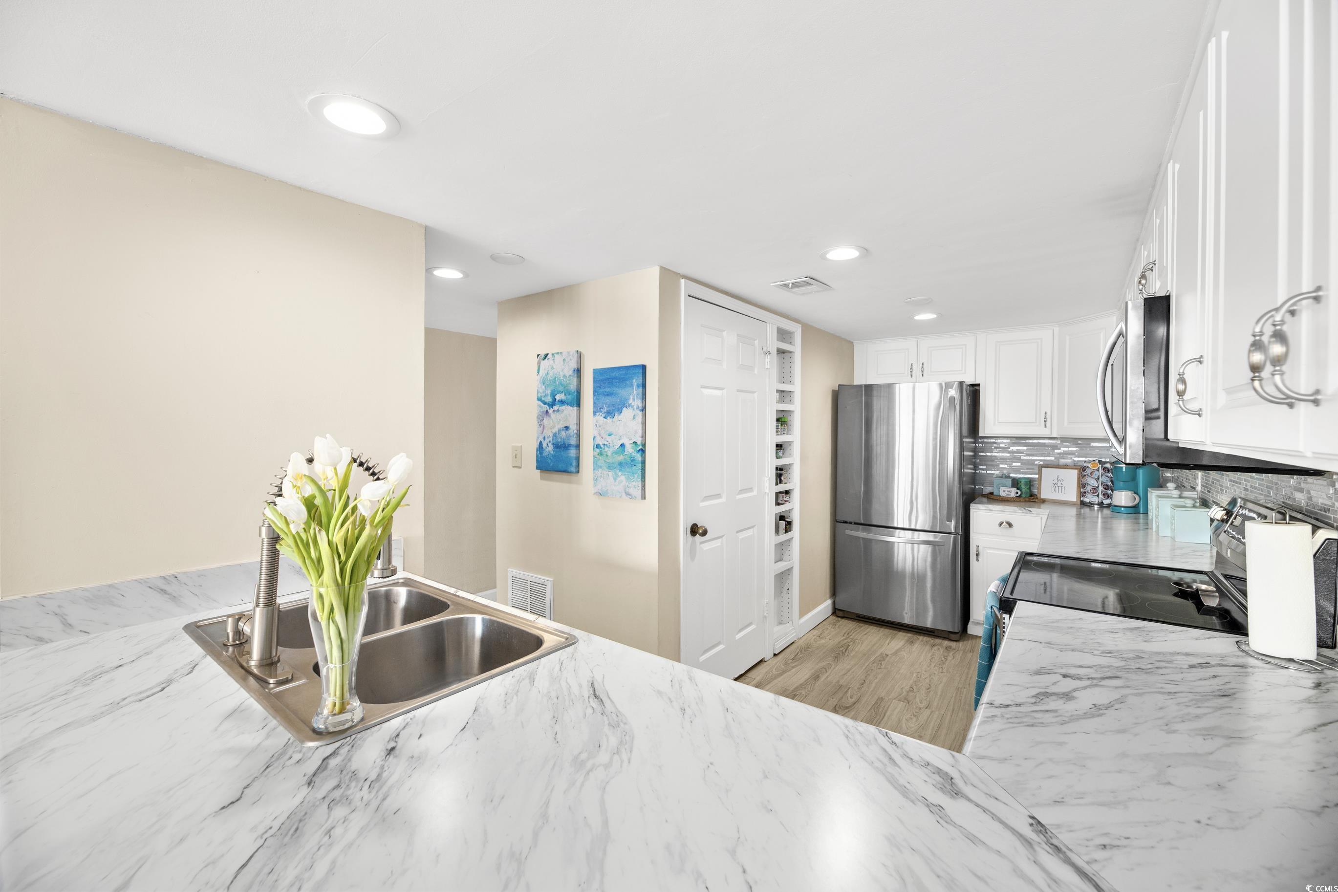 Whether you're looking for a rental investment property, a 2nd home or a primary residence, THIS IS IT! Horizon East is a highly desirable building where the units rarely come available. GREAT RENTAL INCOME. Fully updated 2-bedroom, 2-bathroom OCEANFRONT condo located in Garden City Beach, walking distance to the pier, the 'locally famous' Sam's Corner & all of the bars & shops. Roof, pool deck & HVAC replaced in 2023. Stairwells currently being replaced through assessment, which current owner has paid in full. HOA includes water/sewer, trash, exterior insurance, security, cable, internet, pest control & access to the amenities.