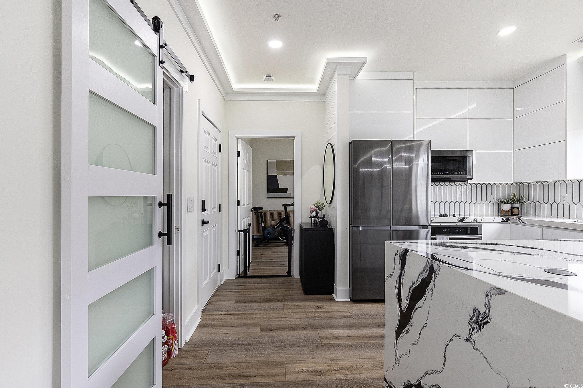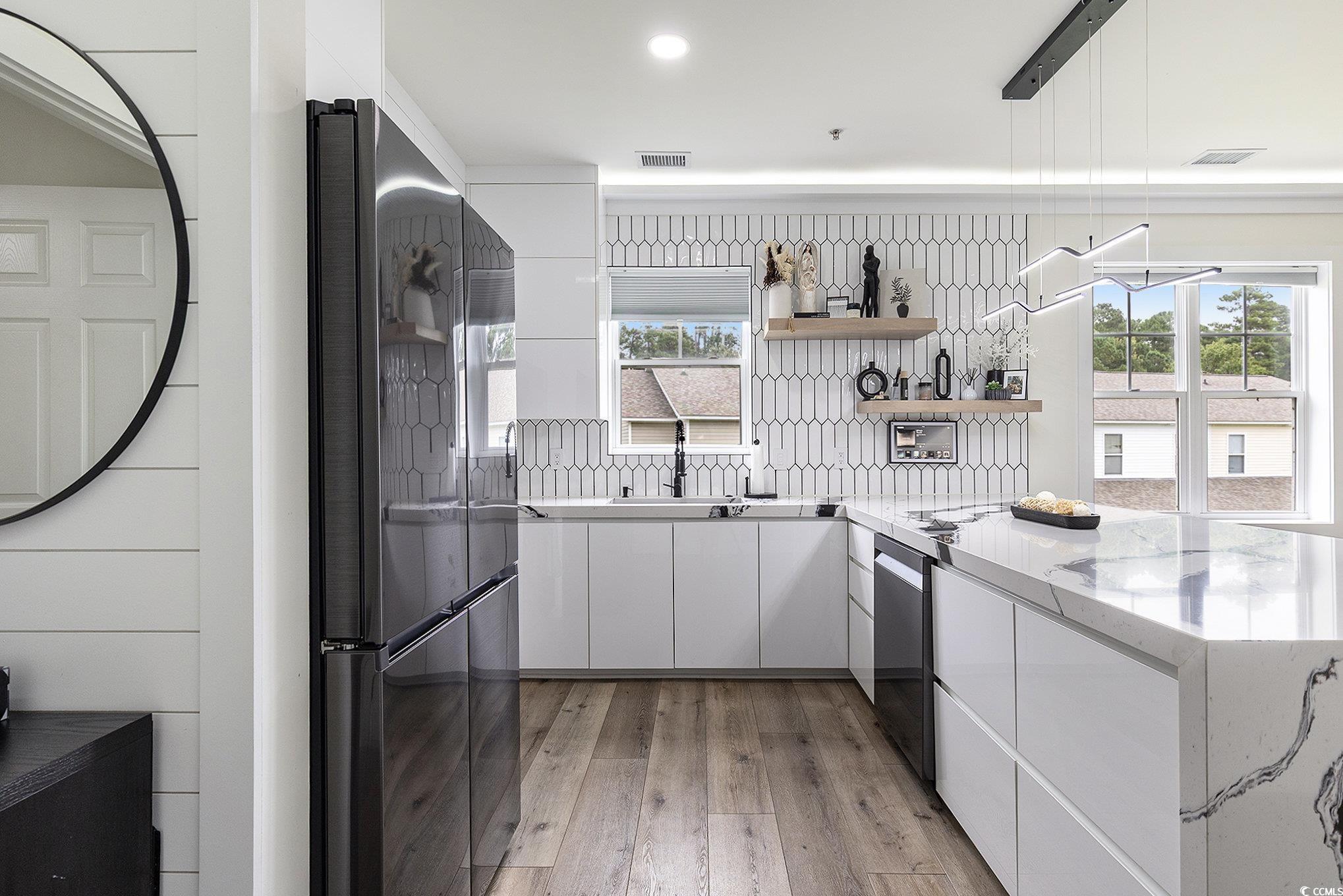 Stunning 3 bedroom, 2 bath completely updated END UNIT in Kiskadee Parke. This spacious unit features an open concept that is perfect for entertaining, large breakfast bar overlooking the dining and living areas, Quartz countertops, NEW black stainless steel appliances, NEW washer/dryer (2023), tray ceilings in the primary bedroom, walk-in closet w/built-ins, LVP flooring throughout, new HVAC (2023) and a private screened in porch offering tranquil views of the lake & fountain. Kiskadee Parke offers a community pool, hot tub, tennis court, basketball, beach volleyball courts, clubhouse with fitness and picnic area and outdoor grills. Conveniently located near Coastal Carolina University, HGTC, championships golf courses, and all the shopping and dining that Conway has to offer. Make this amazing unit your primary, second home or investment property.