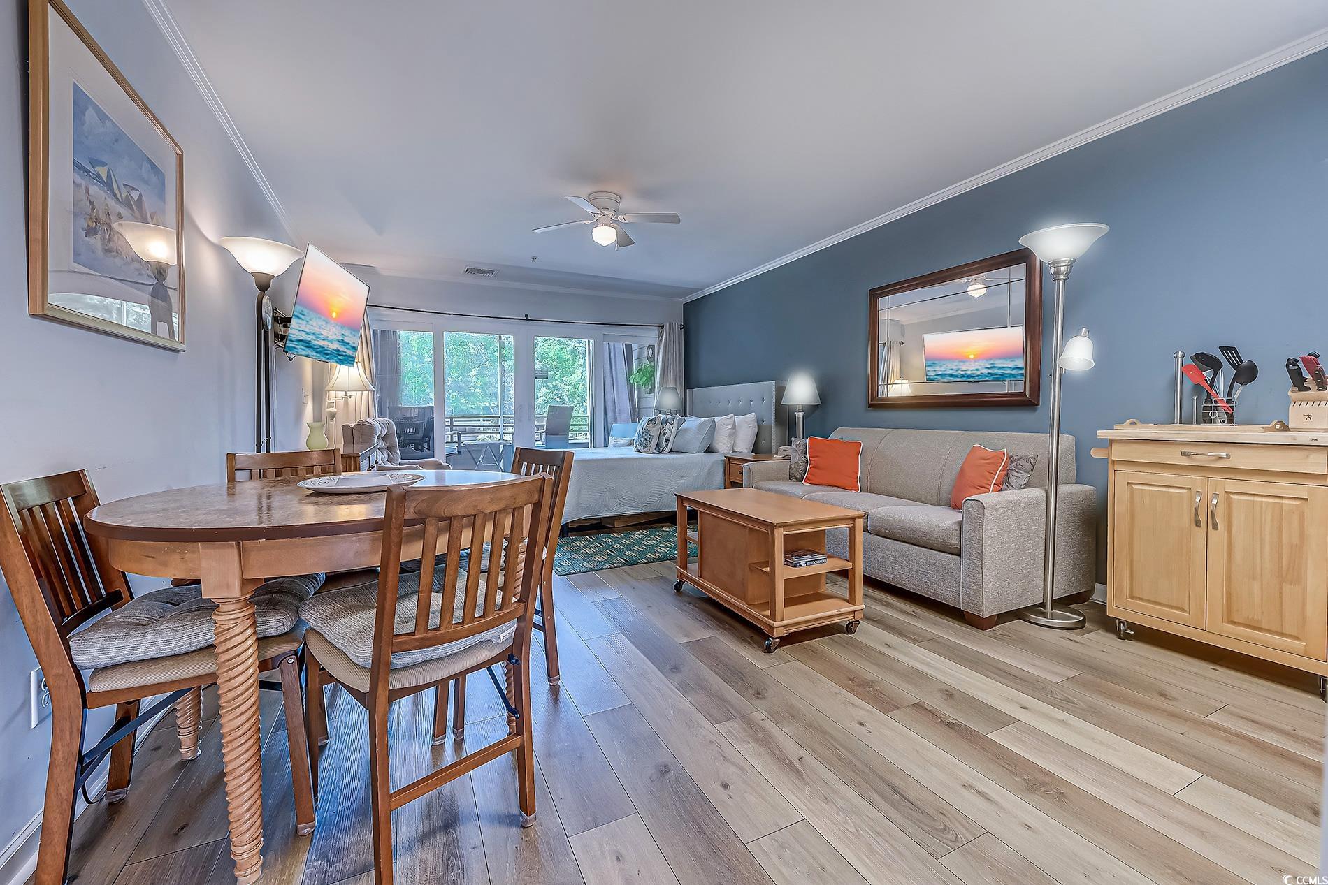 If youve been searching for the perfect Ocean Creek Condo for Sale, this beautifully updated studio at the highly sought-after Ocean Creek Resort is ready for you. Whether youre looking for a personal beach retreat or an investment property, this condo offers the ideal blend of comfort, convenience, and coastal charm. This bright, open-concept studio is located close to the elevator and just a short walk to the beach. Features include stylish flooring, fresh paint, updated furnishings, and expanded doorways for a more spacious feel. The living and sleeping areas flow seamlessly into the kitchen and dining space. Sliding glass doors open to a private screened balcony with relaxing views of the pool and surrounding trees. The upgraded kitchen boasts crisp white cabinetry, tiled backsplash, and modern appliances. The bathroom has been updated with a new vanity, fixtures, and a walk-in shower, complemented by an endless water tank for convenience. Ocean Creek Resort offers a one-of-a-kind gated oceanfront community with resort amenities, including multiple outdoor pools, an indoor pool, tennis courts, fitness center, walking paths, on-site dining, a private beach club, and 24/7 gated security. Located directly across from Barefoot Landing, youll enjoy easy access to top restaurants, shopping, entertainment, golf, and Highway 22 for quick travel around the Grand Strand. This condo is fully furnished and move-in ready, making it an excellent choice for investors with strong rental potential, or as your own Myrtle Beach getaway.