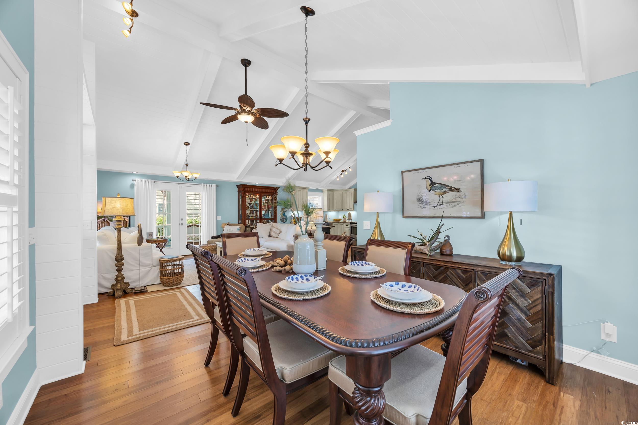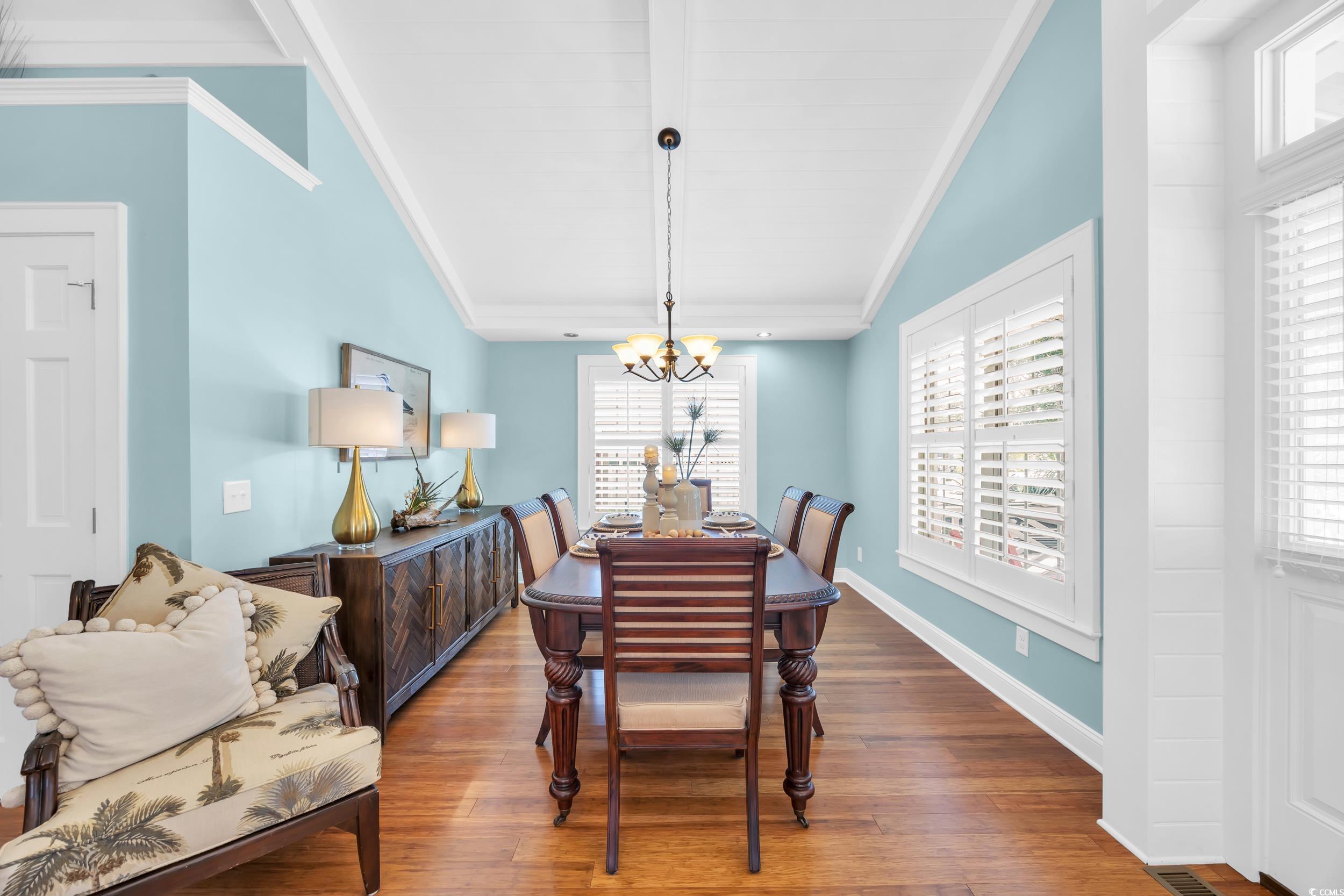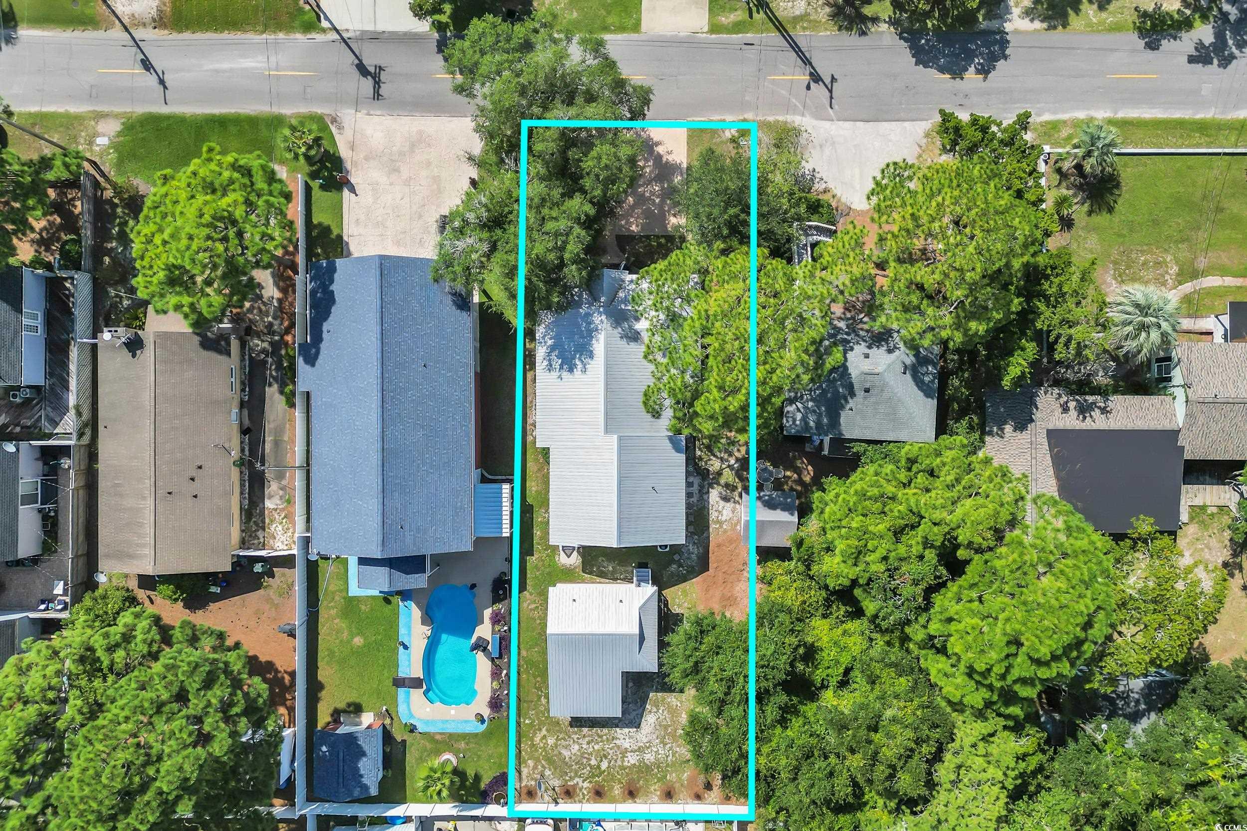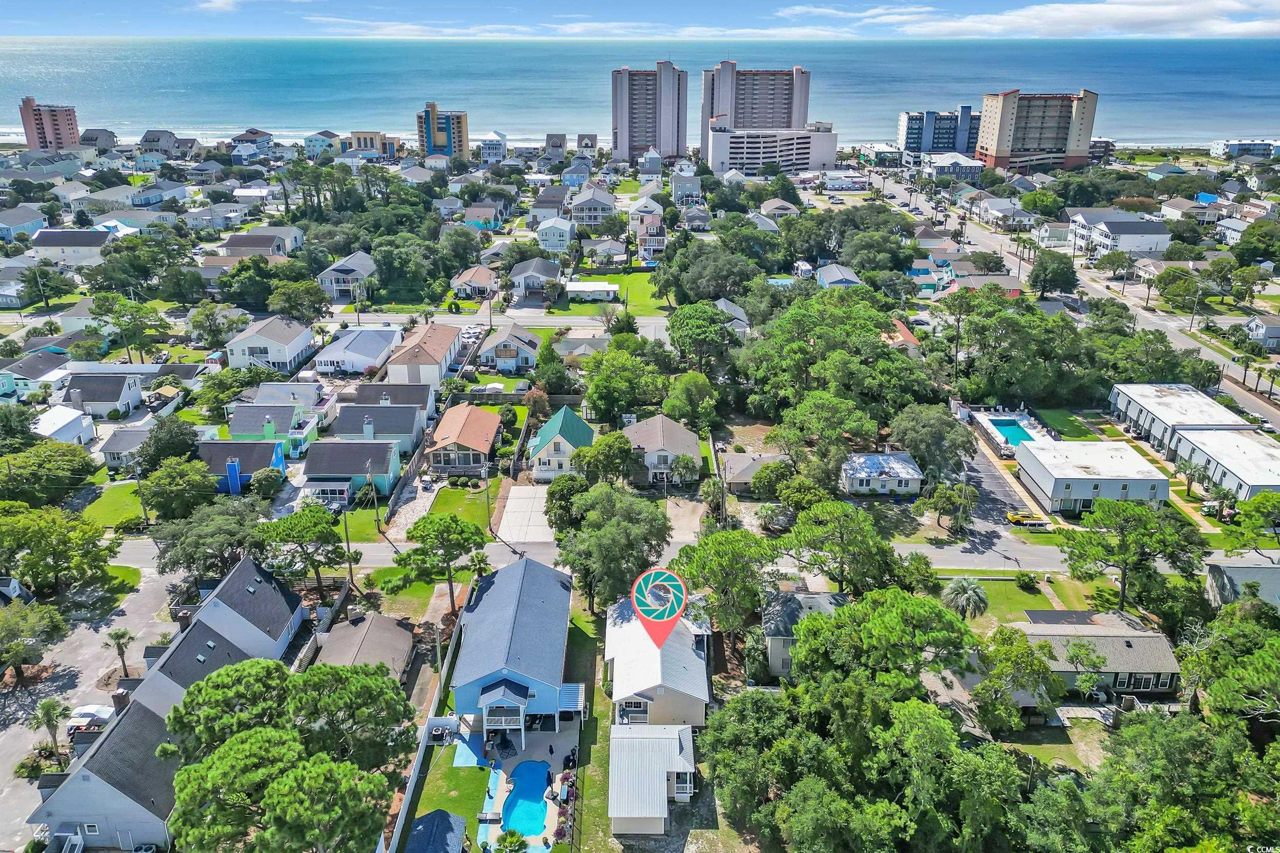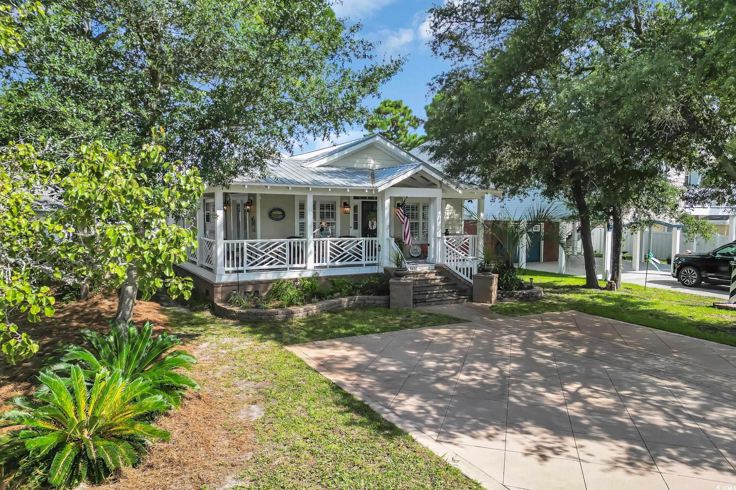 Just 3 blocks from Crescent Beach public access. Fully remodeled down to the studs in 2014 by licensed contractor, brand-new detached pool house complete with a bedroom, kitchenette and full bath in 2025. New HVAC 2025. Space in the backyard to add a pool. Sleeps 14 comfortably, turnkey rental or perfect residence, fully furnished option available. Main house features three full bedrooms and two baths. Pool house features a studio apartment with Kitchenette and full bath. Golf cart garage too! Floor plan in pictures. Custom chefs kitchen with designer finishes and stainless steel sink. Natural bamboo flooring throughout, raised cathedral ceilings with exposed beams and plantation shutters. Designer-owned and curated style throughout renovations. Golf cart to Cherry Grove Beach, dining, and entertainment. This home is also located just minutes from Main Street featuring a historic downtown with live music, renowned eateries, ice cream shops, bakeries, quaint dress shops and more. This home features so many custom upgrades like a custom vanity in the bathroom, custom stamped concrete driveway, 12 foot cathedral ceilings with original knotty pine accents and a Tommy Bahama dining set. The bonus detached pool house is 16 x 18 open plan studio. And theres even a golf cart and beach toys garage.