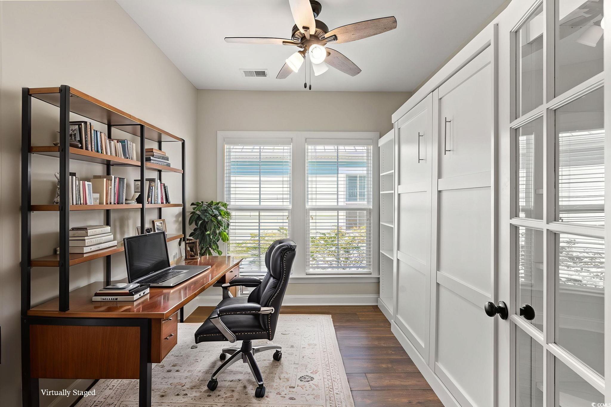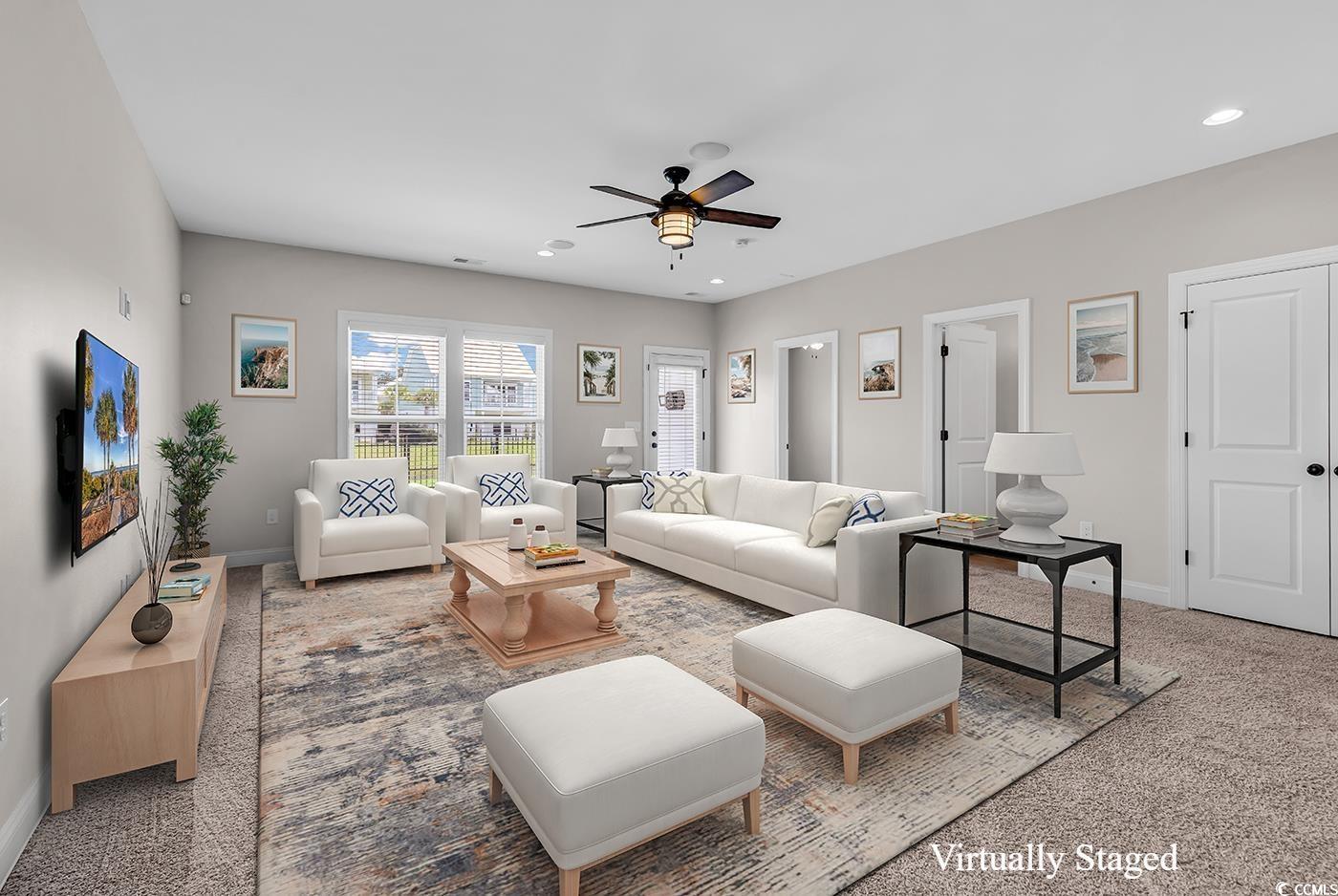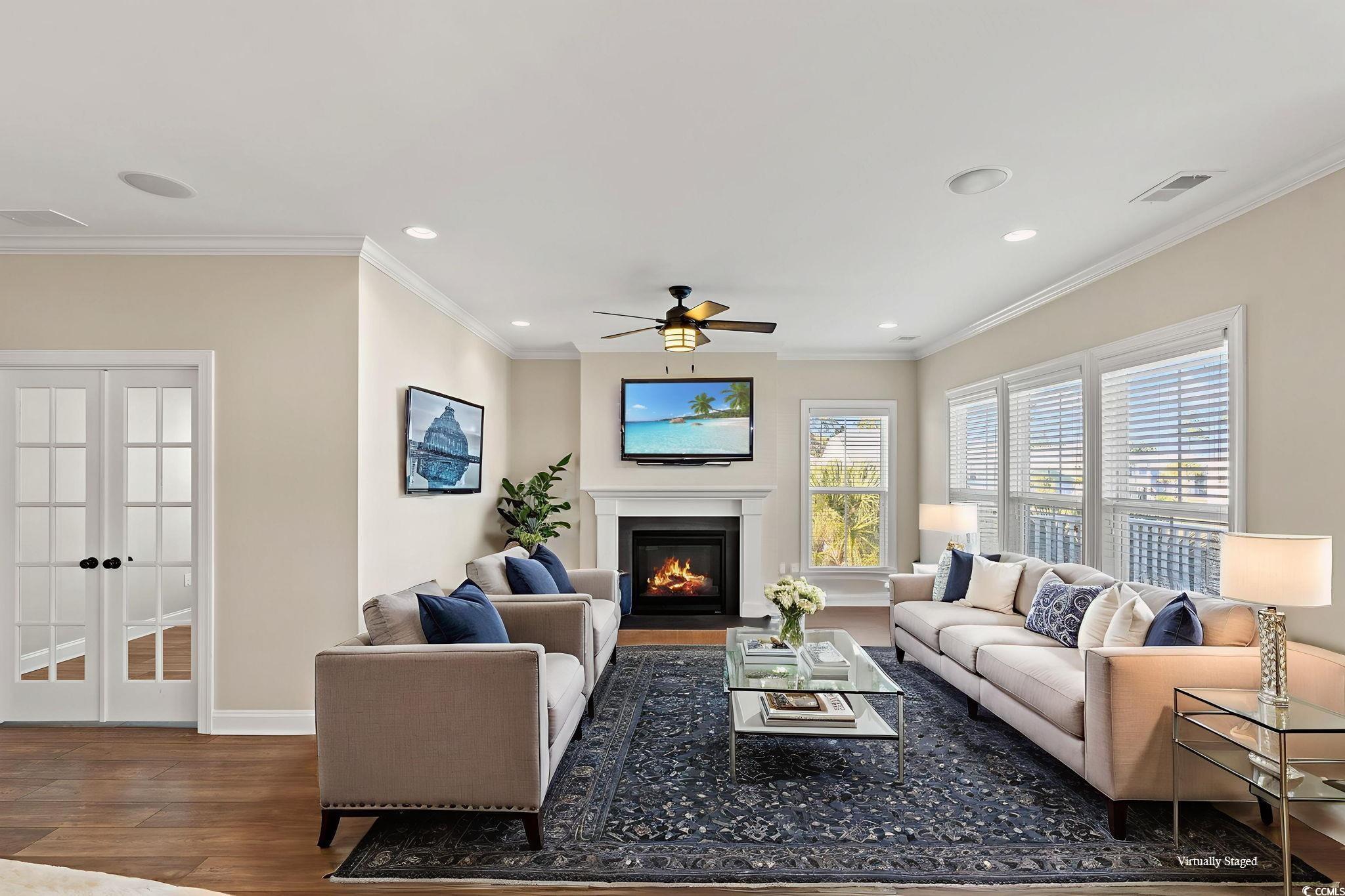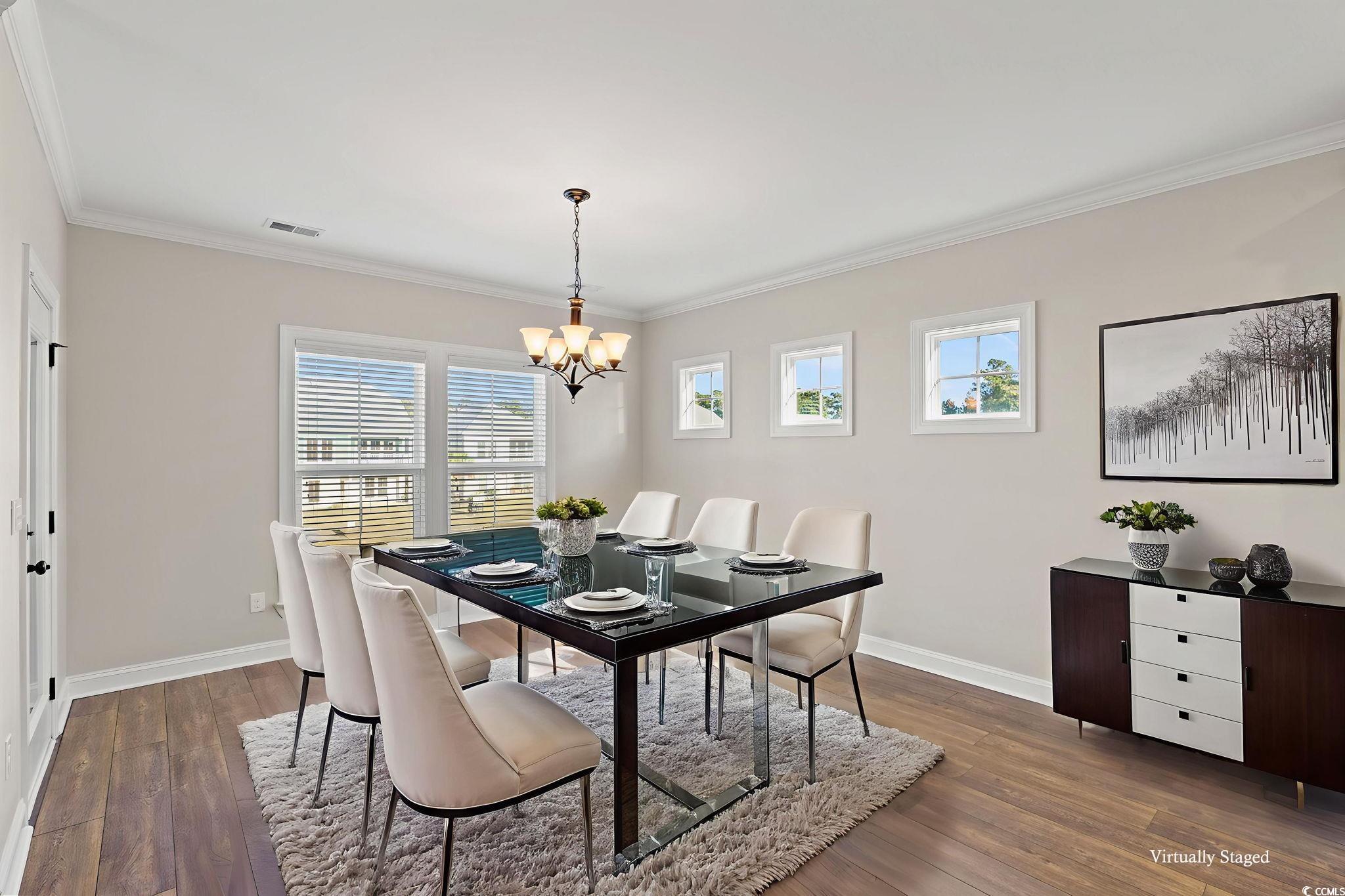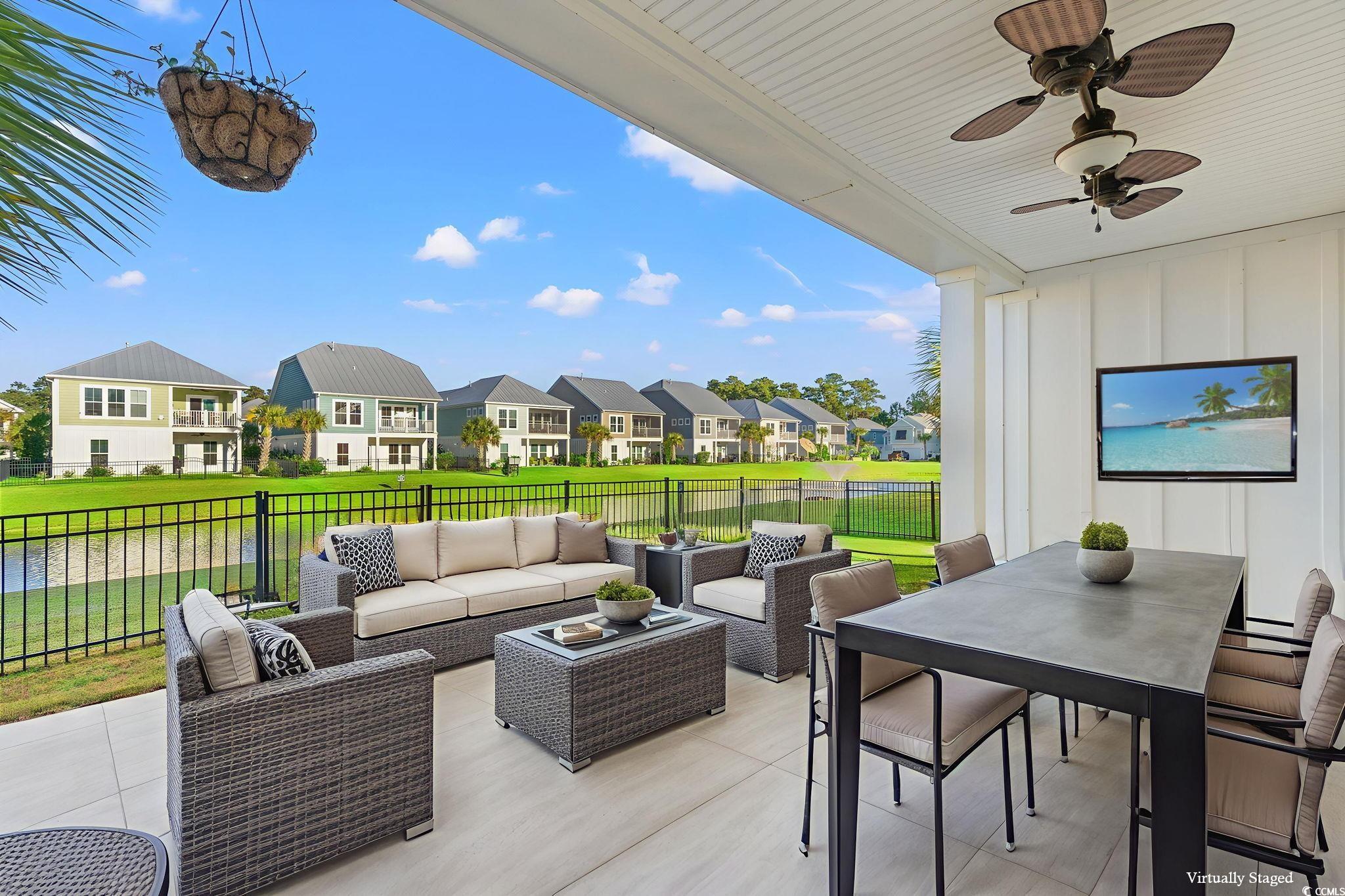 Discover the perfect blend of luxury, comfort and low country charm in this stunning 4-bedroom, 2.5-bath custom home nestled along the pond in Prince Creek. Main level has spacious layout with gas fireplace in livingroom, office with french doors that accommodates a queen murphy bed, primary ensuite, laundry, large EIK w/large dining room and balcony for those morning coffees. Lower level is perfect for guests or family with 2 large bedrooms, full bath, access to garage and large entertainment space with access to covered lanai. With over 3,066 square feet of thoughtfully designed living space, this home offers a flexible multi-level layout, upscale finishes and resort-style amenities that elevate every aspect of daily living. Beyond your front door, enjoy access to walking, jogging, hiking and cycling trails, 2 community pools, pickleball, tennis, basketball, and volleyball courts and the TPC Golf Course, one of the top-ranked in the state. Prince Creek is just minutes from the MarshWalk, top-rated schools, dining, shopping, and the beautiful beaches of the Grand Strand. To help you visualize the property's potential, some photos have been virtually staged. Listing Agent is related to Seller