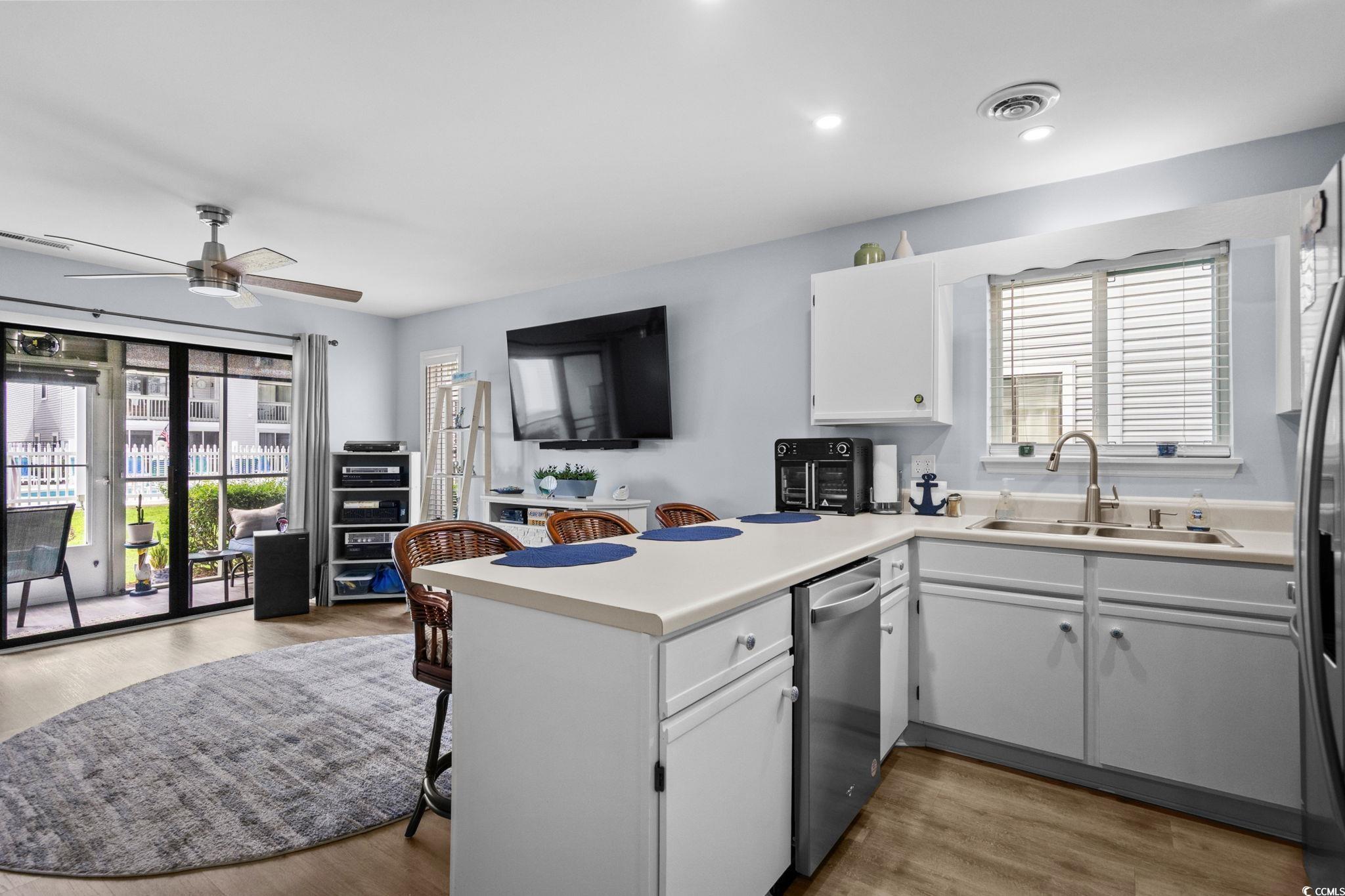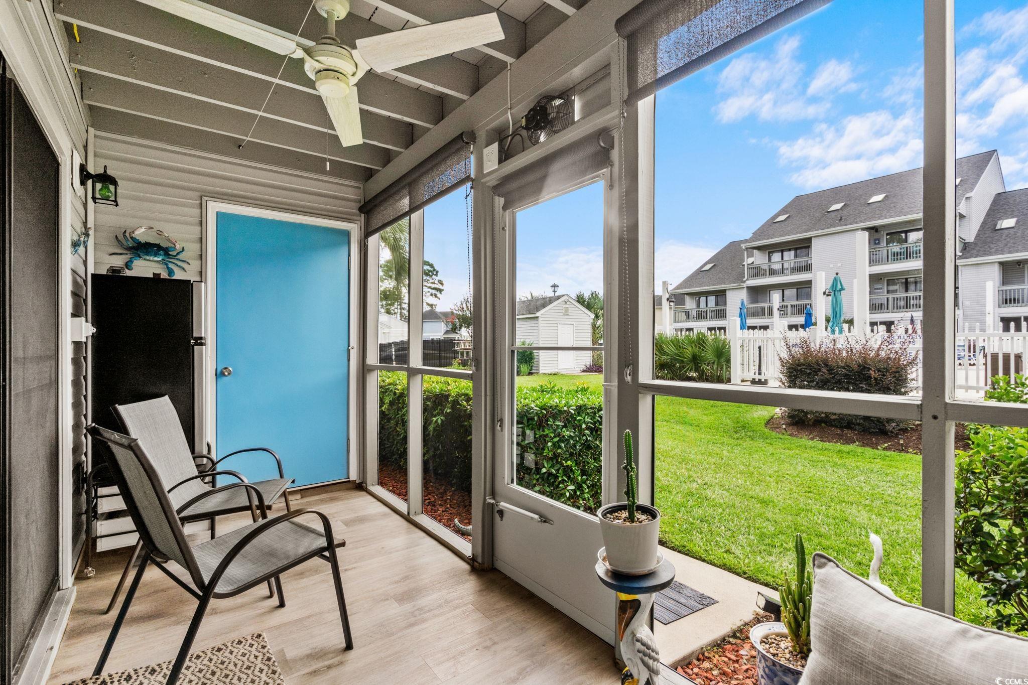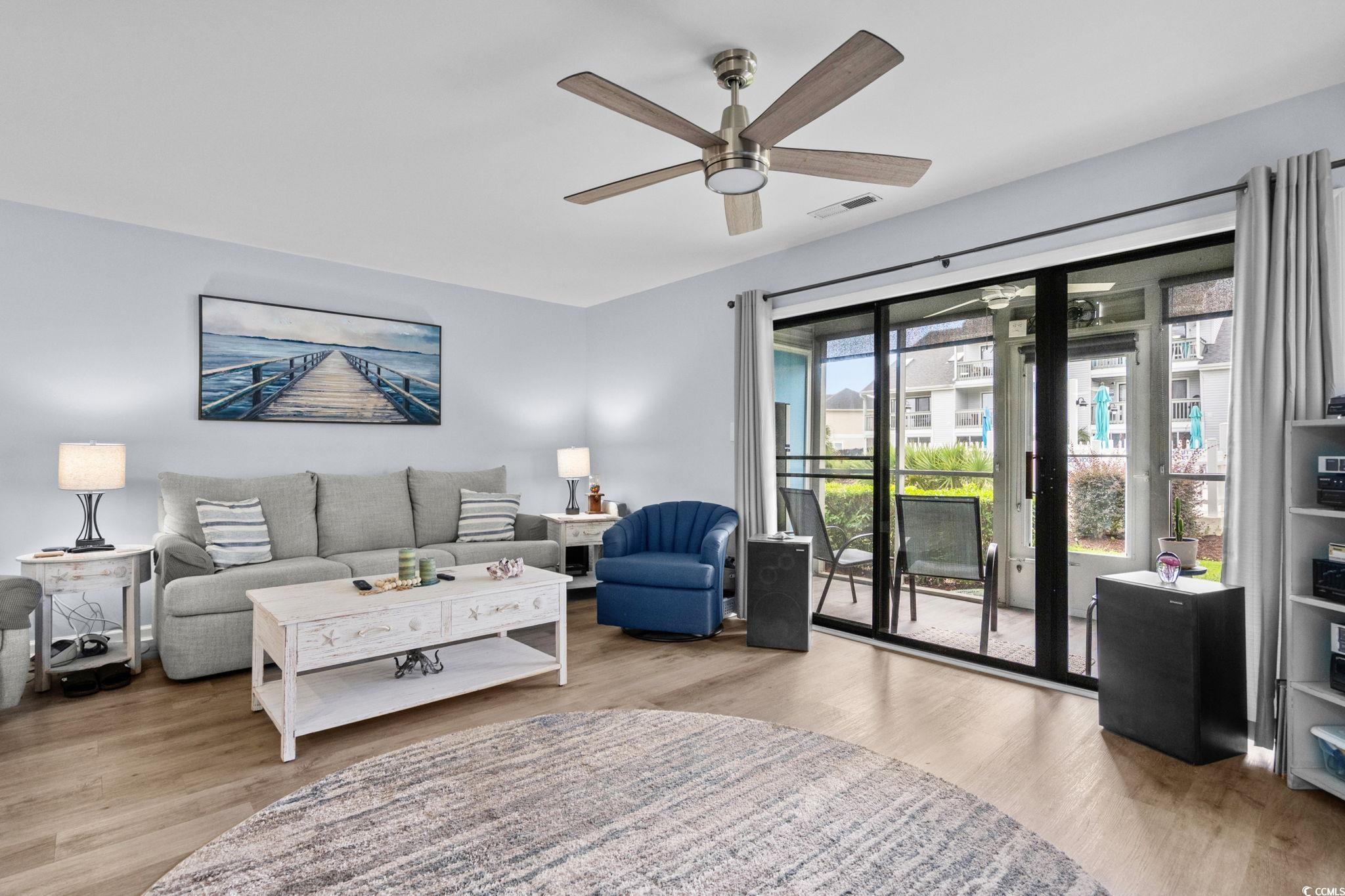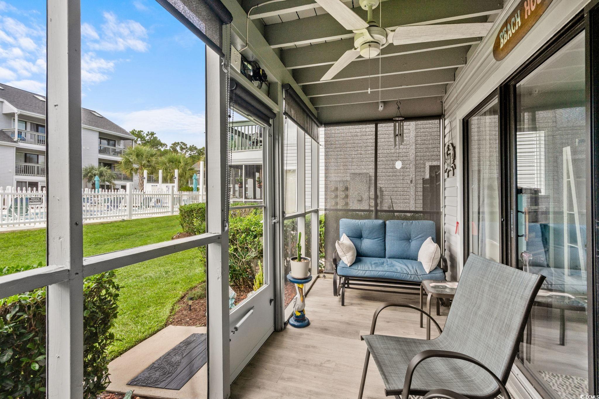 Welcome to this lovely 2 bedroom 2 bath ground floor, end unit condo in Golf Colony Resort of DeerField Plantation in Surfside Beach, SC. Conveniently located approximately half way between North Myrtle Beach and Pawleys Island. Close to shopping, restaurants, night life and the Atlantic Ocean. This condo features LVP flooring, stainless steel appliances, ceiling fans in the living room, both bedrooms and the screened porch that looks out onto and just steps away from the pool. All windows in the unit have been replaced with Vinyl low E glass and PVC Azek trim for low maintenance. The dining area has a custom designed, constructed and installed built-in pantry. The master bath has been totally remodeled and includes a walk-in, glassed shower. The master bedroom has a spacious walk-in closet for storage of all your garment items. Linens and towels can be stored in the hall linen closet just across from the master bedroom. The monthly HOA fee includes outside building maintenance, landscaping, pool maintenance, monthly pest control, water, sewer, garbage collection, cable television and wifi internet connection. HOA insurance for fire, wind, hale, general liability and theft is also included in the monthly payment. This wonderful condominum is perfect for weekend and summer getaways at the beach or for your perminant residence. Have your professional real estate agent show you this fantistic condominium today.
