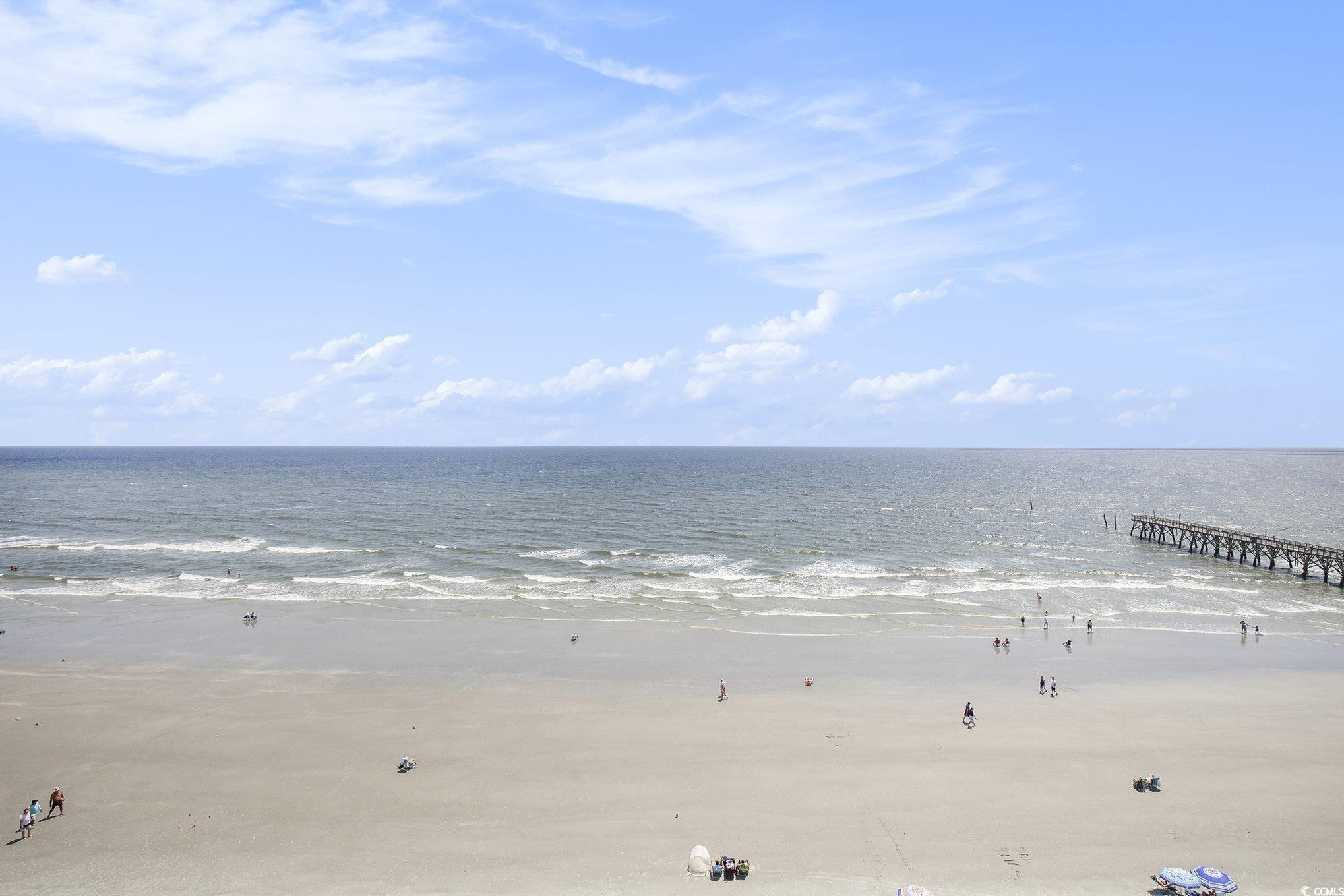 This is a beautifully updated direct oceanfront 3-bedroom, 2-bath condo featuring stunning ocean views and abundant natural light. The fully furnished unit includes a modern kitchen with white shaker cabinets, quartz countertops, tile backsplash, stainless steel appliances, and a coffee/wet bar. Luxury vinyl plank flooring was installed in 2022. The inviting living room boasts an electric fireplace and large windows opening to a private balcony overlooking the ocean. The updated guest bathroom includes a full-size stackable washer and dryer. This condo would be ideal as a full-time residence, vacation home, or investment property. Sea Pointe offers covered parking, a multi-level deck, an indoor pool, and a hot tub, all just minutes from Cherry Grove Pier and premier shopping, dining, and golf.