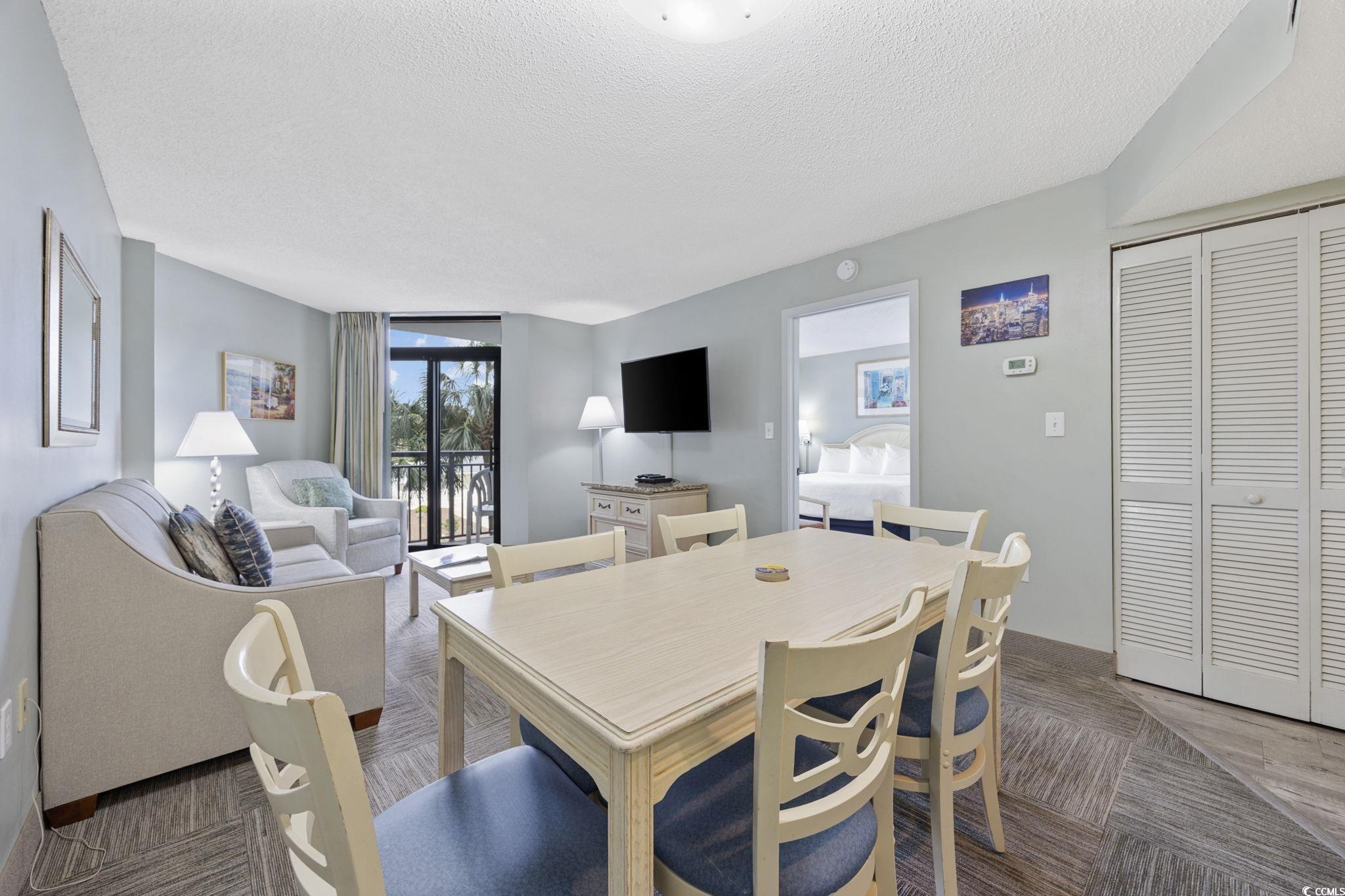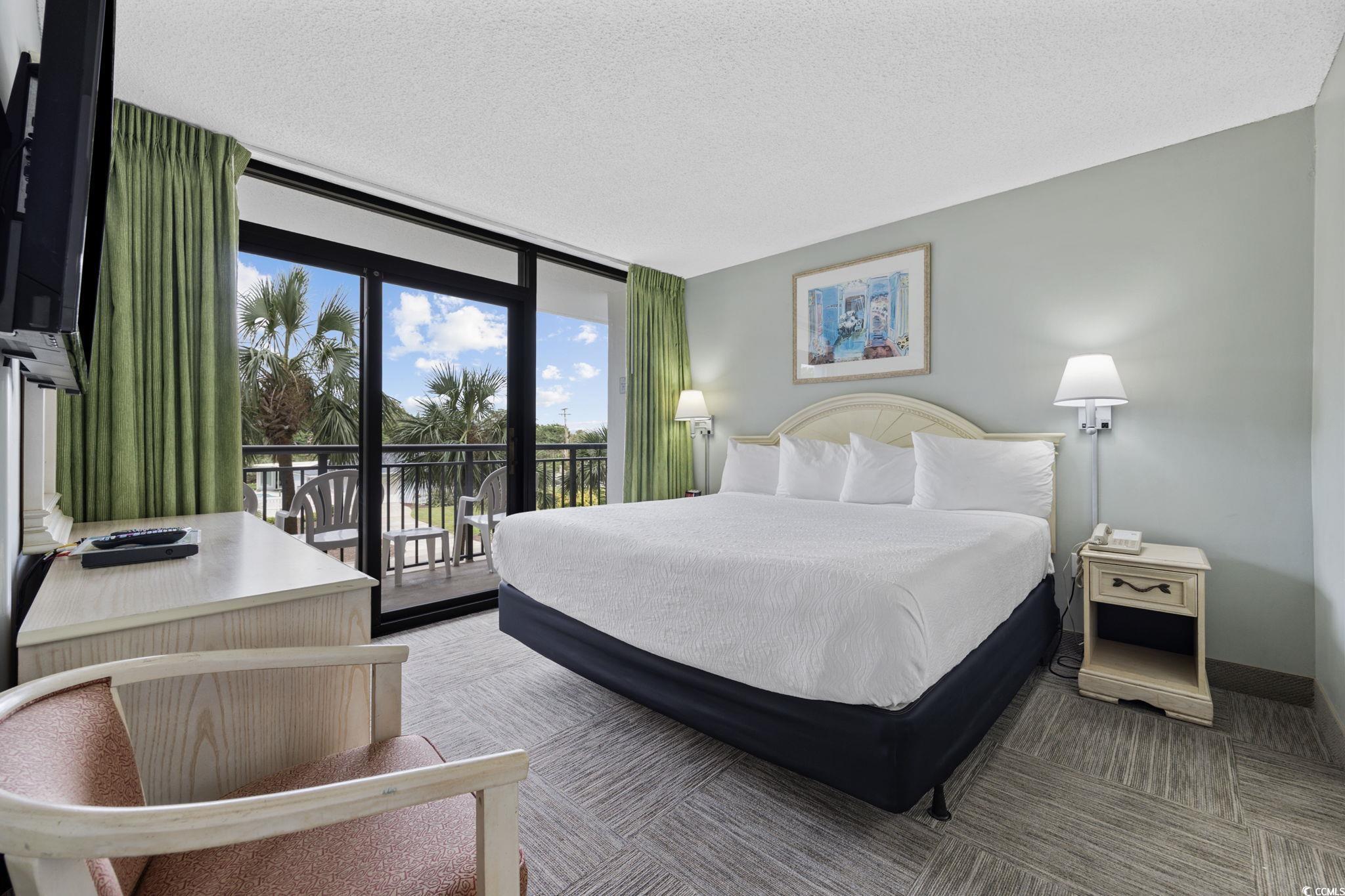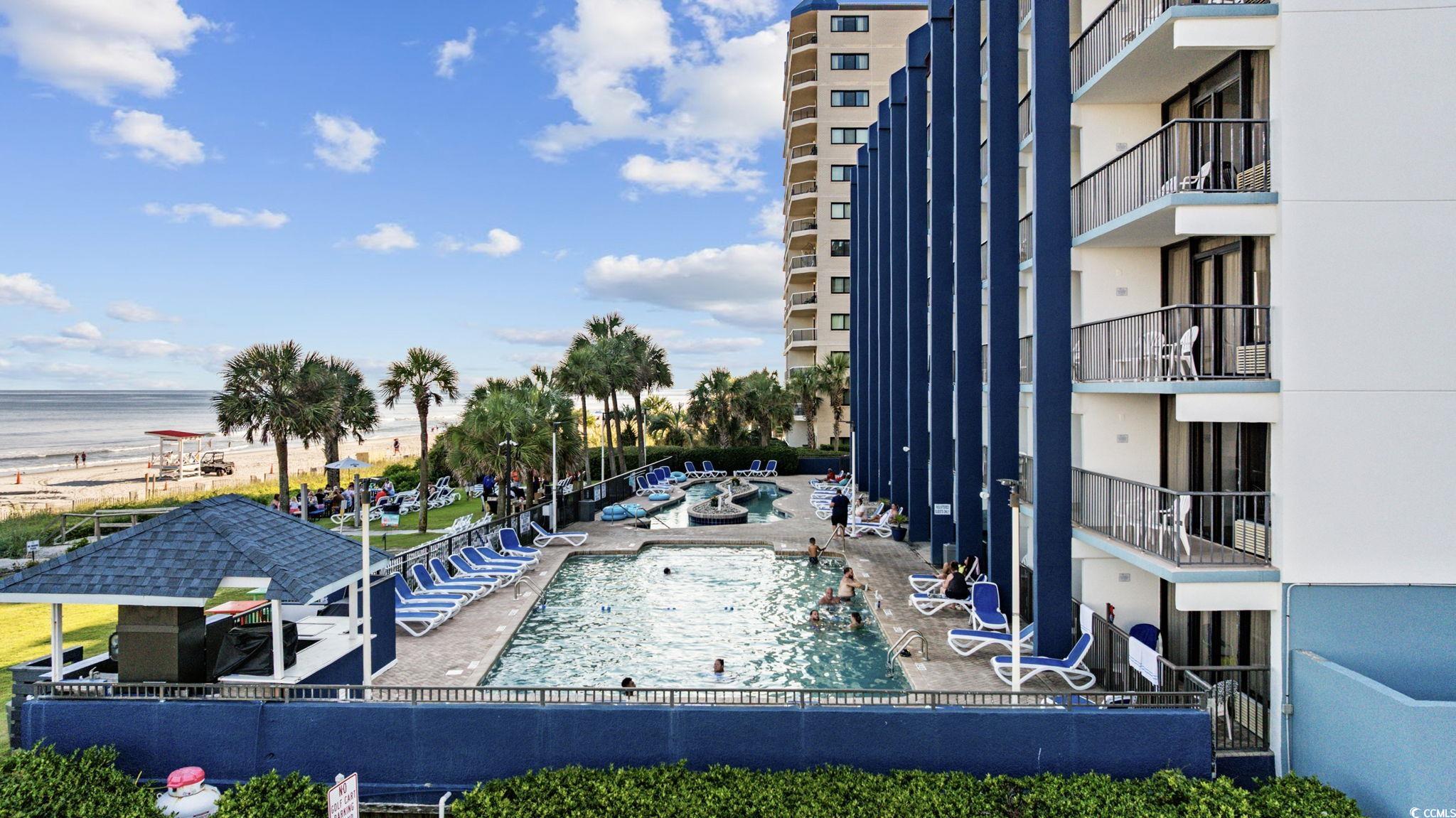 **** DEAL ALERT !! **** Beautiful OCEAN VIEW 2 BR / 2 BA fully furnished, HIGHLY-UPGRADED, and turn-key condo in one of Myrtle Beach's most popular oceanfront buildings, Grande Shores. These rarely get listed for sale as there aren't many of them in the building. #322 Grande Shores features a gorgeous Coastal Vibe throughout your new Beach condo. The open floor plan is contemporary and decorated nicely. One of the neat features of this condo is that you can park right outside your door as this resort has an onsite parking garage and only the condos on the lower few floors have this RARE feature. As soon as you open the door, you'll notice the LVP flooring throughout the entry hallway, kitchen, and both bathrooms. New carpet is in the living room and both bedrooms. Plenty of NEW features in this one including: Carpet in Jan 2024 * LVP flooring in 2023 * New dishwasher in 2022 * New sleeper sofa and living room chair in 2022 * Kitchen backsplash in 2024 * Plantation Shutters in guest BR in 2024 * New mattresses in 2024. Along with these beautiful updates, you also have large flat-screen TV's in the living room and both bedrooms, a washer/dryer, an OWNER'S CLOSET, fire sprinklers and smoke detectors, and a HUGE balcony that connects to both the living room and the primary BR. The primary BR features a king-sized bed, dresser, 2 night stands, a closet, balcony access, and an en-suite bathroom. This bathroom is highlighted by its decorative light fixture, marble sink top, linen closet, and a tub/shower combo. Your guest bedroom has 2 double beds, a dresser, a night stand, a closet, and the large TV. Your beach condo also has a full-size kitchen with: Granite countertop, raised bar counter (enough room for 4 high-backed chairs), lots of cabinets, stainless steel sink, white appliances (refrigerator, dishwasher, microwave, stove/oven), and an acrylic tile backsplash. As gorgeous as your condo is, you may decide to stroll around the resort and enjoy all of the onsite amenities, which include: Onsite breakfast and dinner restaurant (Shoreline Cafe) * Summer children's activities * Fitness center * Indoor pool, kiddie pool, and hot tub * 2 outdoor pools * 2 outdoor lazy rivers * 4 outdoor hot tubs. One of the most-recognized features of Grande Shores is its roof top pool, hot tubs, and lazy river - all providing unparalleled ocean and coastline views for over 30 miles in every direction! If you've been looking for a condo at an affordable price within an amenity-filled resort and gorgeous views, you're wait is over. #322 Grande Shores is priced very well (less than many 1 BR condos in oceanfront buildings) and will make an excellent second home or rental income producing property! Life is short, take the plunge and indulge in an ocean view condo that you know you've always wanted!